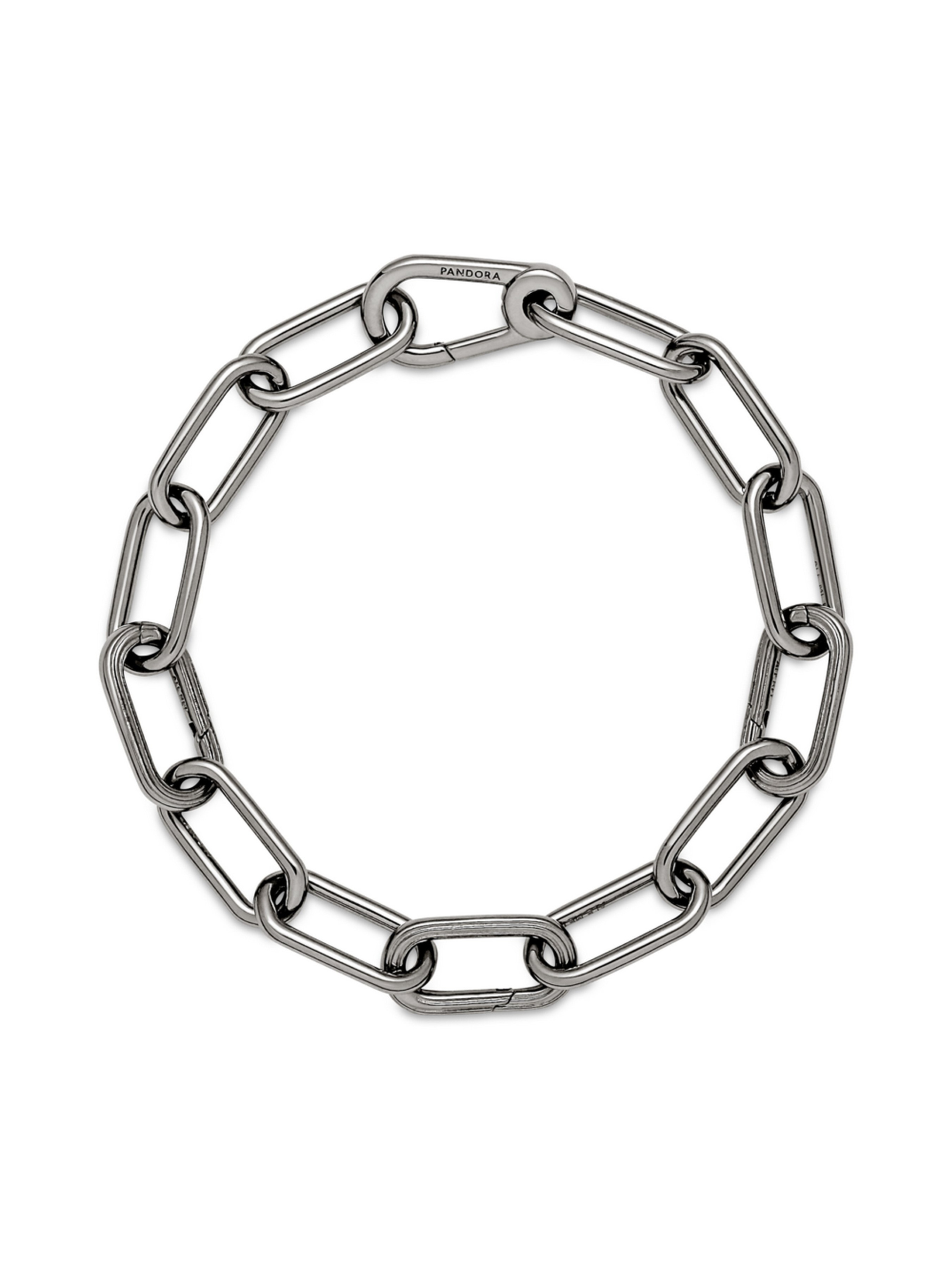 Напишіть власну мантру на вашому зап'ясті. Ланковий браслет Pandora ME, що вкритий рутенієм, відкриває світ безмежних можливостей для стилізації. Цей браслет містить три рельєфних з'єднувача, що відкриваються, ланки для стилізації та застібку-карабін. Спочатку персоналізуйте дизайн ланкового ланцюжка: один набір з'єднаних між собою ланок для стилізації можна замінити на чотири невеликих з'єднаних між собою ланки, подвійну ланку для стилізації або одну ланку для стилізації, при цьому ви можете, за необхідності, відкоригувати довжину ланцюжка. Щойно дизайн ланцюжка буде персоналізовано, доповніть прикрасу щонайбільше двома змістовними медальйонами або вісьмома міні-підвісками на кожному з'єднувачі, що відкривається, або закріпіть по одному медальйону на кожній ланці для стилізації, щоб продемонструвати світові унікальність і багатогранність вашої особистості.
