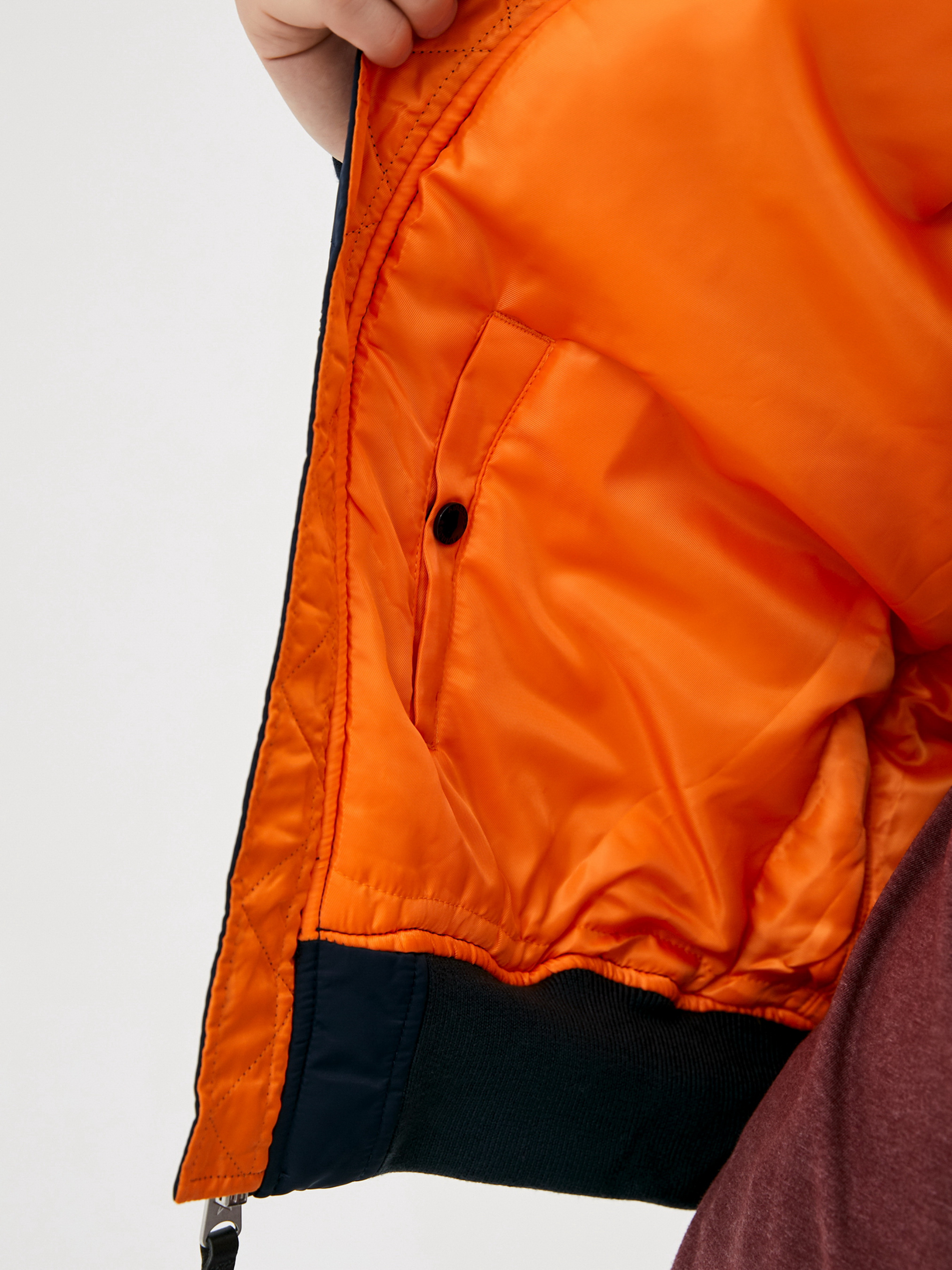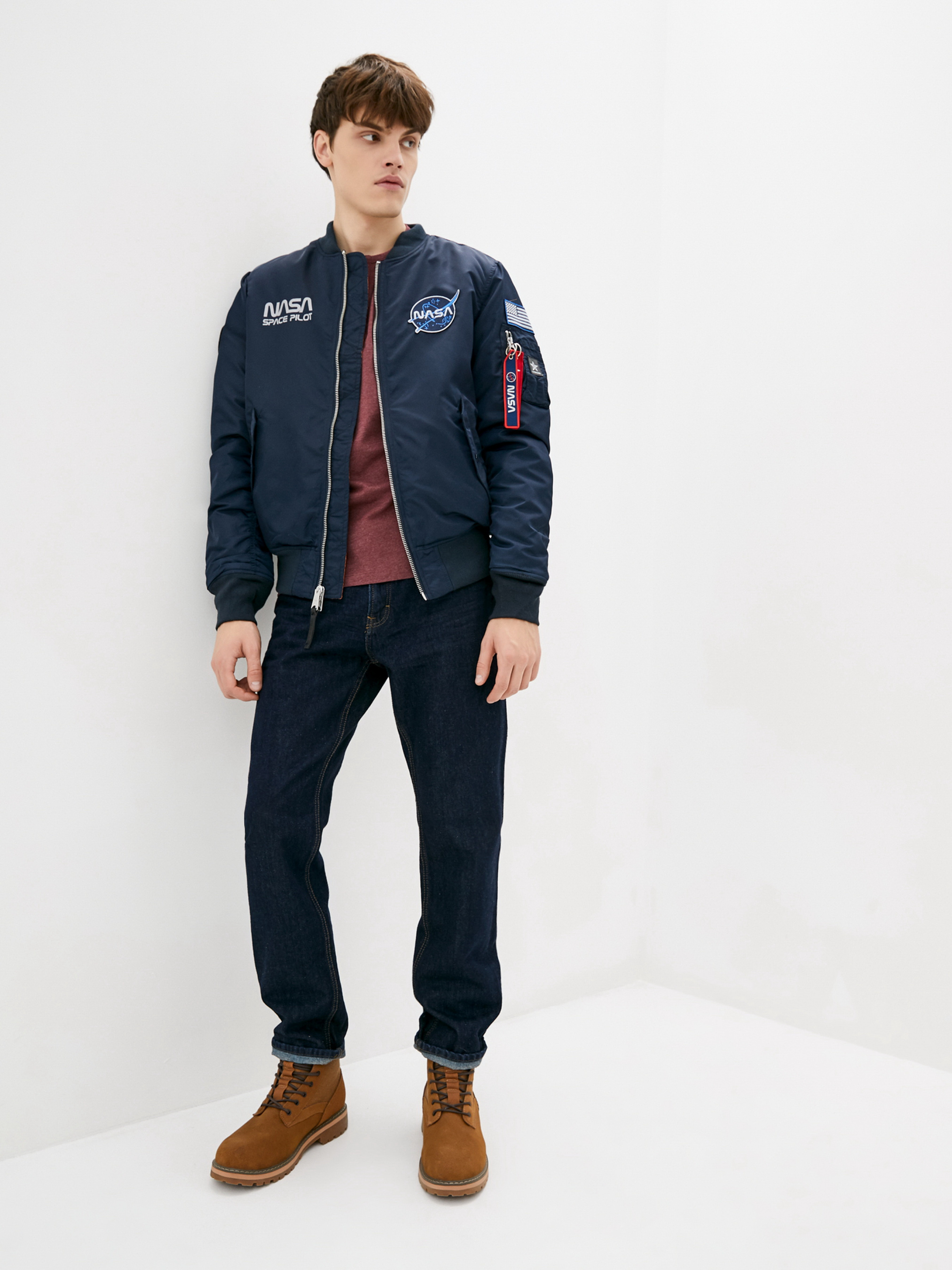 Чоловіча куртка-пілот MA-1 NASA від AIRBOSS виконана за всіма класичними канонами справжньою куртки бомбардувальника ВПС США. Куртка двостороння, її можна носити помаранчевою підкладкою навиворіт, кишені повторюються з обох сторін, блискавка також перевертається на обидві сторони куртки. Матеріал куртки - справжній, надміцний, стійкий до забруднень, льотний нейлон. Наповнювач куртки - поліестерне волокно. Манжети і комір - трикотажна резинка. На рукаві є класична кишеня льотчика. Куртка доповнена нашивками та світловідбиваючим принтом космічної тематики.