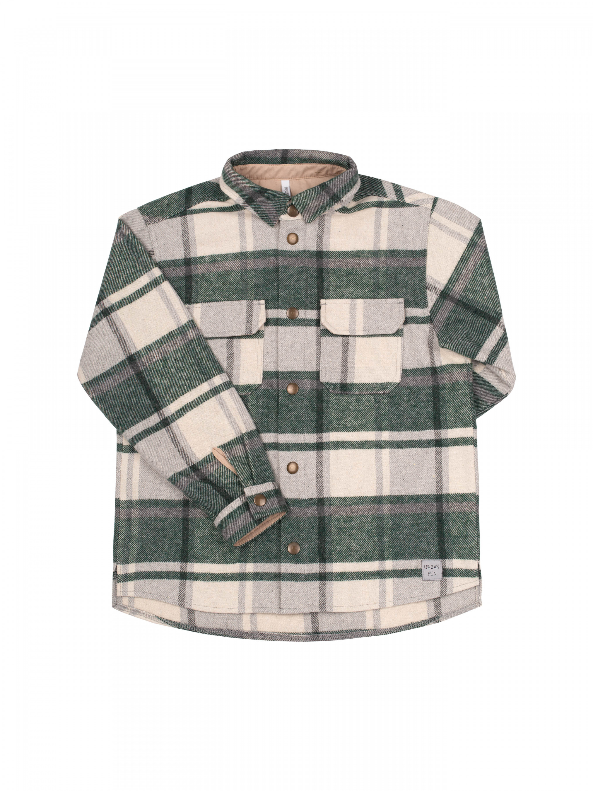 Верхня сорочка універсальна, з обох боків нашиті нагрудні кишені, застібається на ґудзики, класичний комір. Тканина – вовна, тепла, м’яка, не кусається, що важливо при виборі одягу для дитини. Стиль кежуал, в трьох трендових відтінках в клітинку, мінімалістичний дизайн, що додає вишуканості та лаконічності.