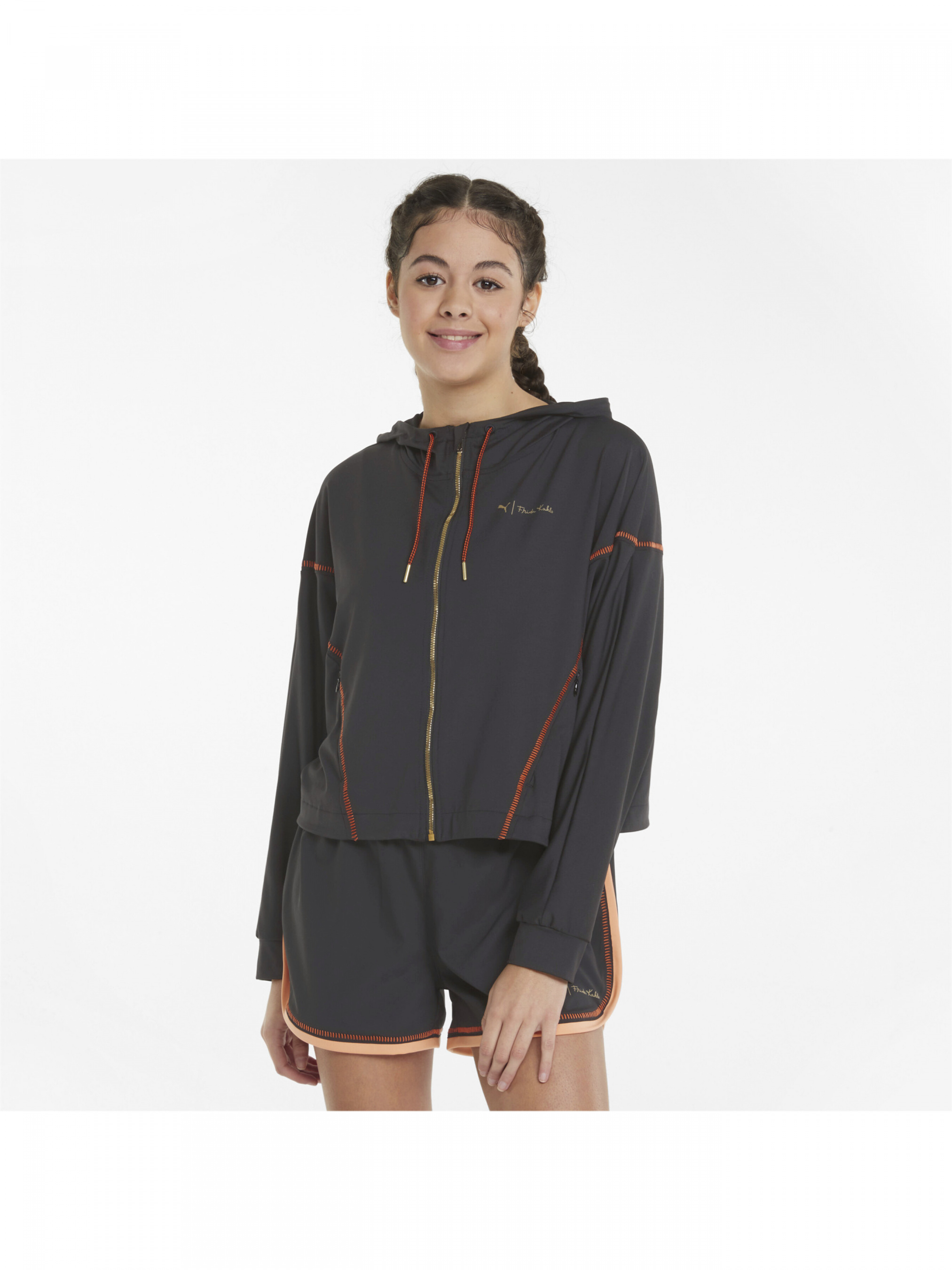 Наша серія Female Artists славить сильних жінок творчих професій. І якщо говорити про ікони, то немає рівних Фріді Кало, незмінному борцю за розширення прав жінок і свободу самовираження. Толстовка PUMA x FRIDA KAHLO Full-Zip Women's Training Hoodie – уособлення фірмового стилю Кало, в якому переплітаються класика та авангард. Відрізняється привабливими флористичними деталями, яскравими контрастними кольорами, а також сучасним кроєм. Деталі Колекція: Весна- літо 2022 Стиль: Спортивний Вид спорту: Тренінг Технології:< /strong> Високотехнологічний матеріал dryCELL відводить вологу, забезпечуючи відчуття сухості та комфорту Характеристики Склад: strong>Поліестер, еластан Торстка жіноча Обробка miDori® bioWick (біологічно) Блискавка по всій довжині Капюшон з регулюванням Оздоблення оригінальним стіканням Делікатне еластичне плетіння ззаду Квітковий сублімаційний принт на капюшоні Брендинг PUMA x FRIDA KAHLO зліва на грудях< /li> Країна-виробник: В'єтнам