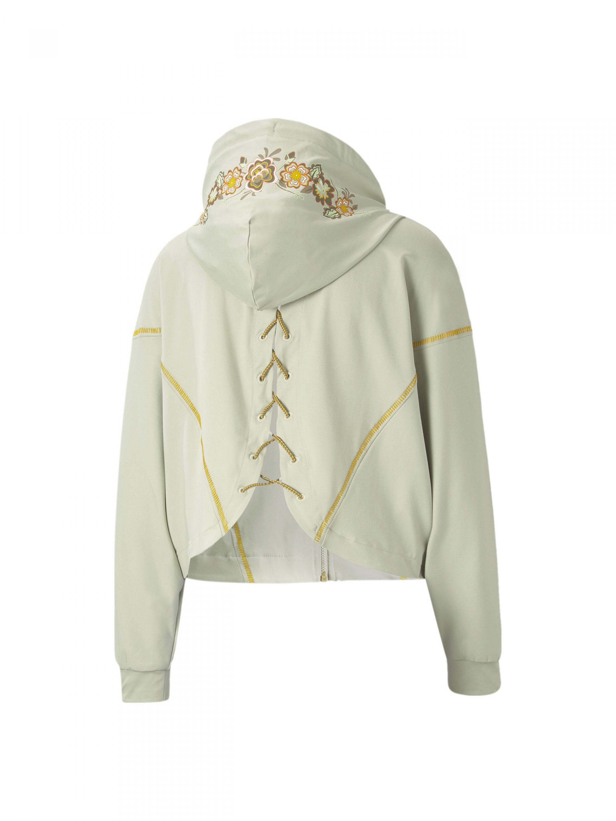Наша серія Female Artists славить сильних жінок творчих професій. І якщо говорити про ікони, то немає рівних Фріді Кало, незмінному борцю за розширення прав жінок і свободу самовираження. Толстовка PUMA x FRIDA KAHLO Full-Zip Women's Training Hoodie – уособлення фірмового стилю Кало, в якому переплітаються класика та авангард. Відрізняється привабливими флористичними деталями, яскравими контрастними кольорами, а також сучасним кроєм. Деталі Колекція: Весна- літо 2022 Стиль: Спортивний Вид спорту: Тренінг Технології:< /strong> Високотехнологічний матеріал dryCELL відводить вологу, забезпечуючи відчуття сухості та комфорту Характеристики Склад: strong>Поліестер, еластан Торстка жіноча Обробка miDori® bioWick (біологічно) Блискавка по всій довжині Капюшон з регулюванням Оздоблення оригінальним стіканням Делікатне еластичне плетіння ззаду Квітковий сублімаційний принт на капюшоні Брендинг PUMA x FRIDA KAHLO зліва на грудях< /li> Країна-виробник: В'єтнам