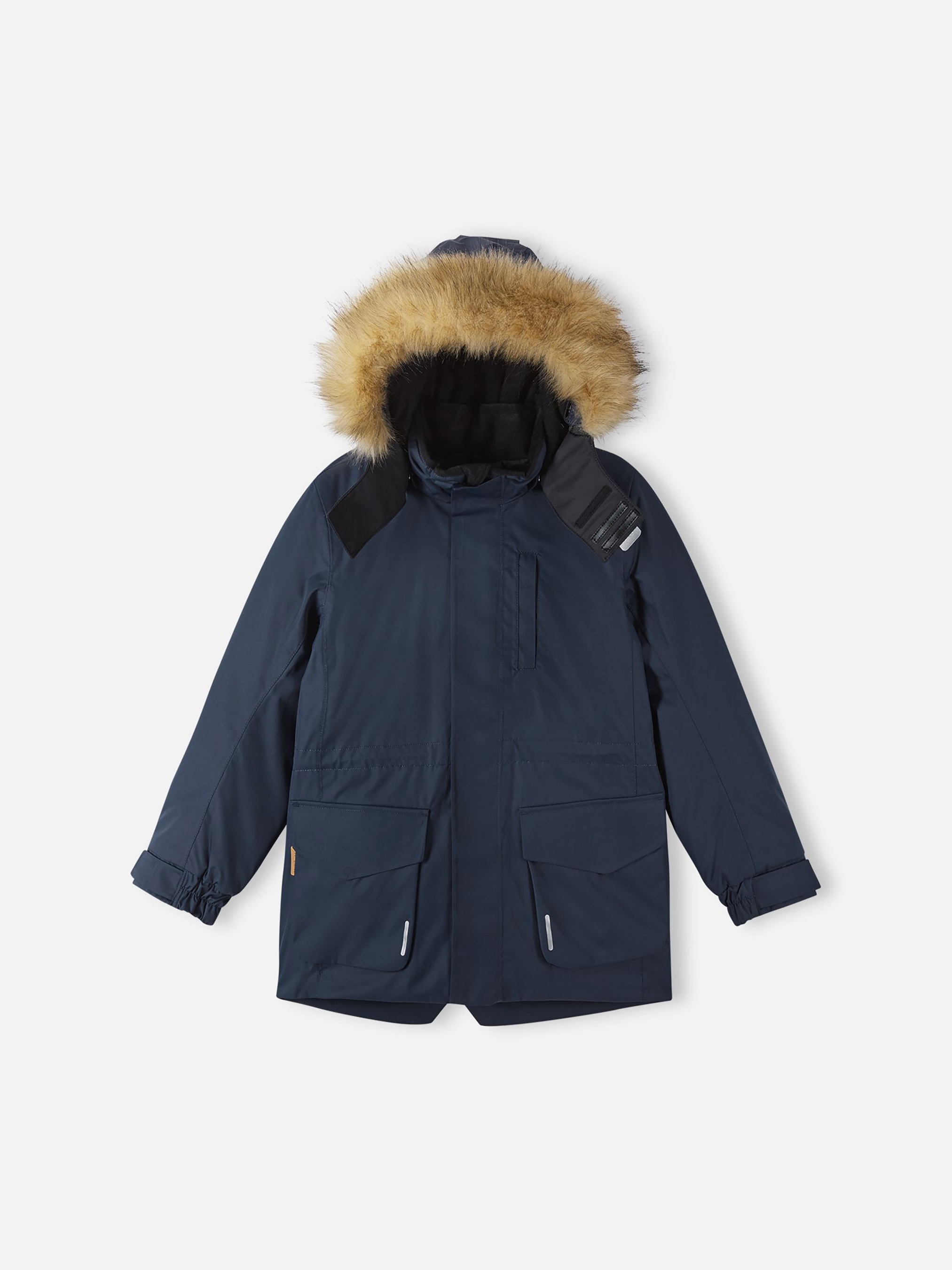 Класична дитяча непромокаюча парка підійде для будь-якої прогулянки. Ця подовжена зимова куртка із спеціального водо- та вітронепроникного матеріалу добре пропускає повітря і має водо- та брудовідштовхуючі властивості. Всі шви проклеєні і водонепроникні, тому діти можуть насолоджуватися веселими зимовими забавами в будь-яку погоду. Ця модель має прямий крій з регульованою талією і подолом, тому при бажанні силует можна зробити більш приталеним. Куртка має дві великі кишені з клапанами і дві нагрудні кишені, одна з яких на блискавці. Зверніть увагу на зручну петельку, заховану в кишені з клапаном – до неї можна прикріпити світловідбивачі або ключі. Безпечний знімний капюшон з пухнастим штучним хутром, що знімається, надає особливості цій витонченій моделі. Ця куртка дуже проста у догляді, крім того, її можна сушити у пральній машині.