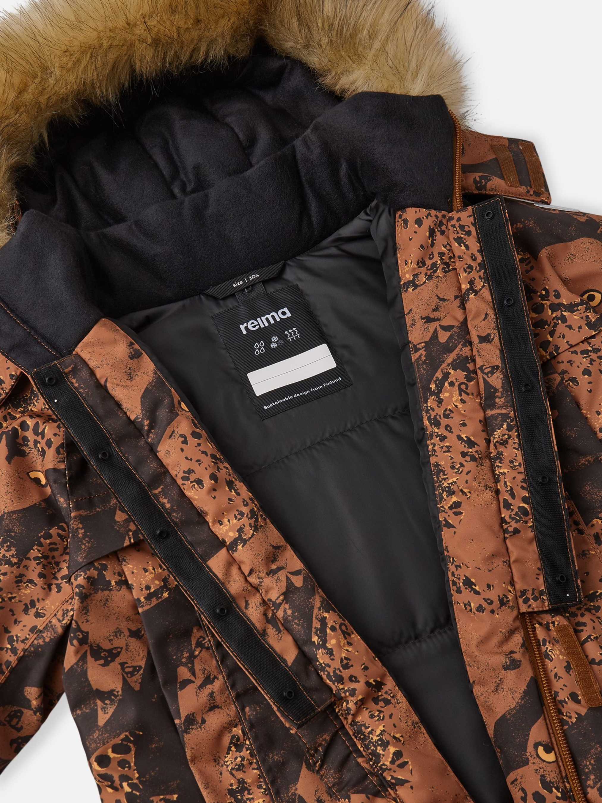 Зимова куртка Reima з безпечним знімним капюшоном, прикрашеним розкішним пухнастим штучним хутром. Абсолютно незамінна модель на осінь та зиму для приємних прогулянок містом або веселих ігор у парку. Це пальто з екологічних матеріалів, схвалених за стандартом bluesign®, має чудові брудовідштовхуючі та водонепроникні властивості завдяки інноваційному просоченню BIONIC-FINISH®ECO. М'який утеплювач із перероблених волокон відмінно захищає від холоду, а проклеєні шви забезпечують 100% водонепроникність. Це зимове пальто з матеріалу Reimatec можна поєднати з деякими моделями Reima проміжного шару завдяки інноваційній застібці на кнопках Play Layers. Внутрішня нагрудна кишеня зі зручною блискавкою (у розмірах зі 116) не дасть рукавичкам або гаманцю загубитися.