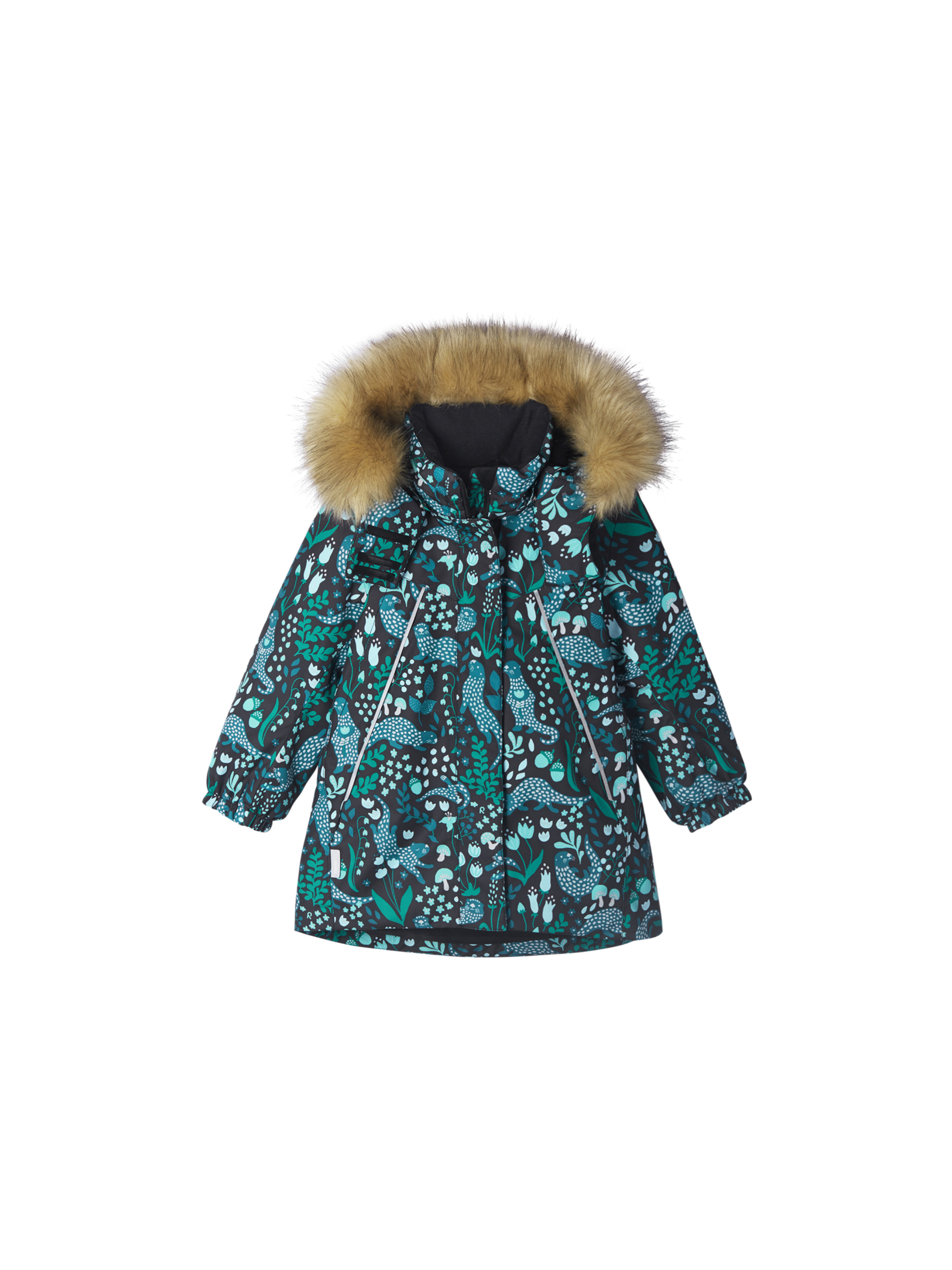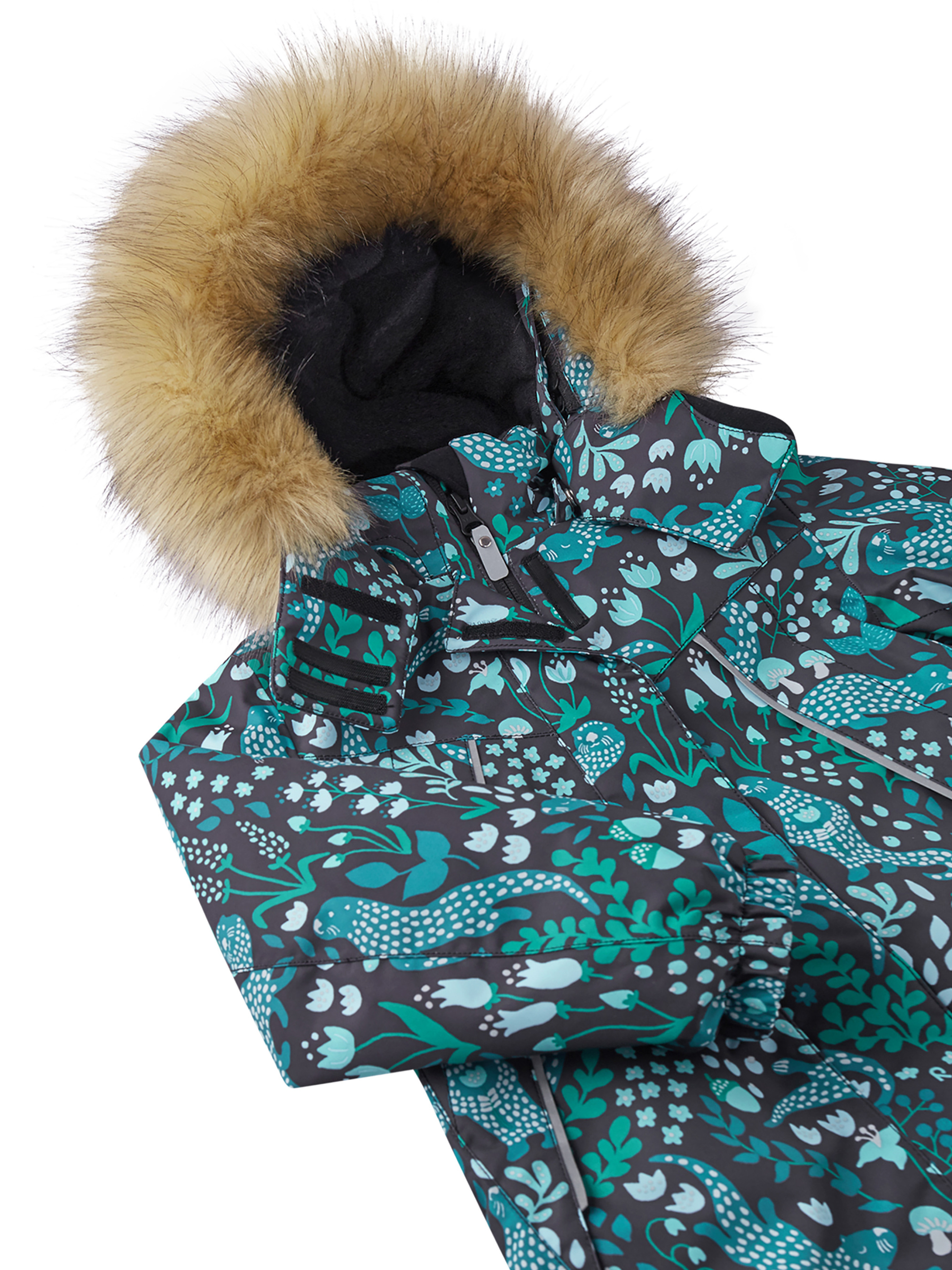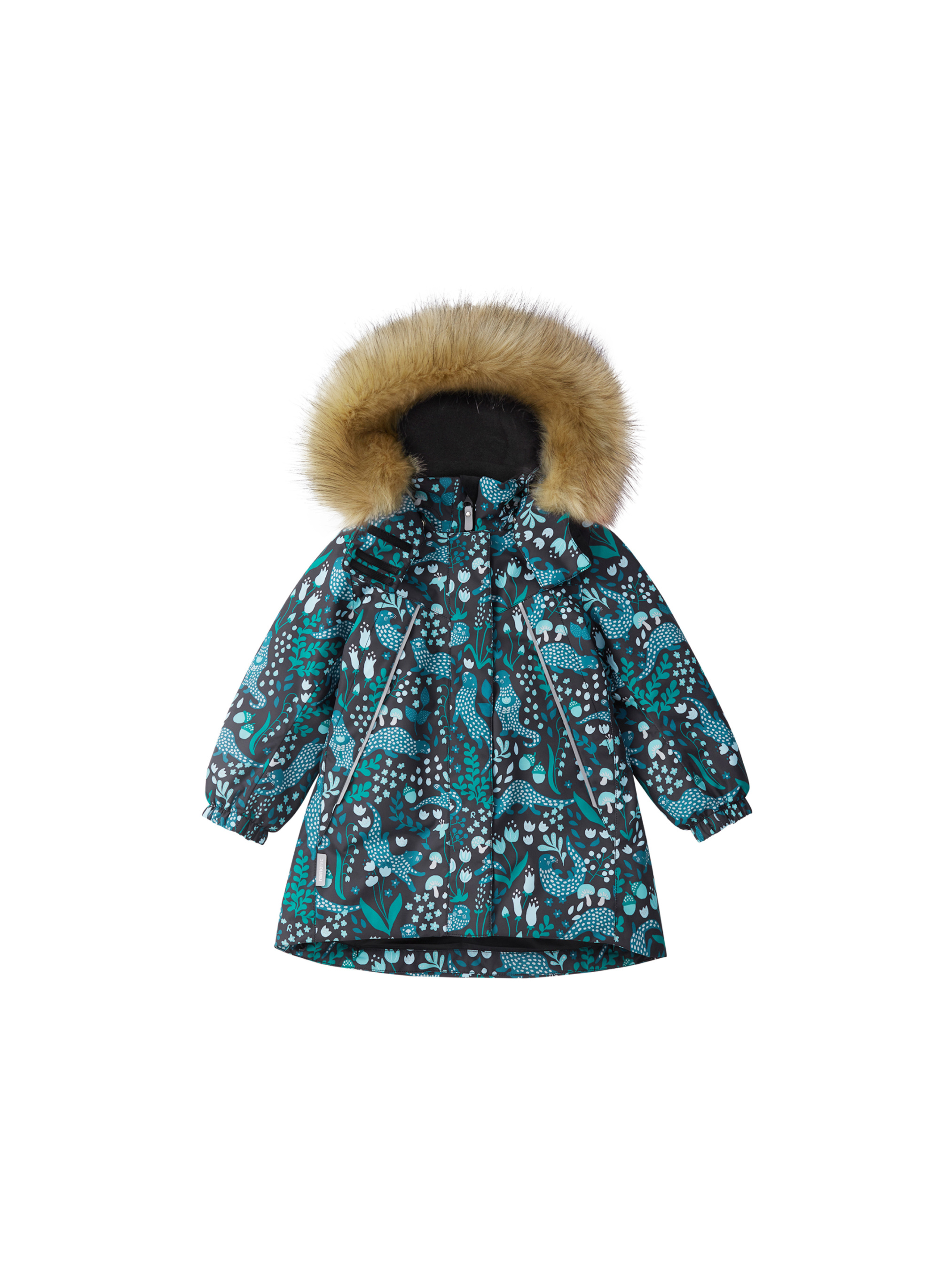 Тепла, водо- й вітронепроникна дитяча зимова куртка Reimatec. Матеріал відштовхує бруд і добре дихає, тому ваша дитина не спітніє. Усі шви проклеєні, водонепроникні. Ця об'ємна модель відмінно сидить завдяки збірці ззаду на талії, а також регульованим манжетам і подолу. Ця куртка з підкладкою з гладкого поліестеру легко надягається. За допомогою зручної системи кнопок Play Layers до куртки можна приєднувати різноманітний одяг проміжного шару Reima. У куртці передбачений знімний капюшон зі знімним штучним хутром, і безліч деталей, що відбивають світло. У кишенях на блискавці можна зберігати все найважливіше, наприклад, смартфон можна покласти в нагрудну кишеню або в дві передніх кишені на блискавці. Ця куртка дуже проста в догляді, адже її можна сушити в пральній машині.
