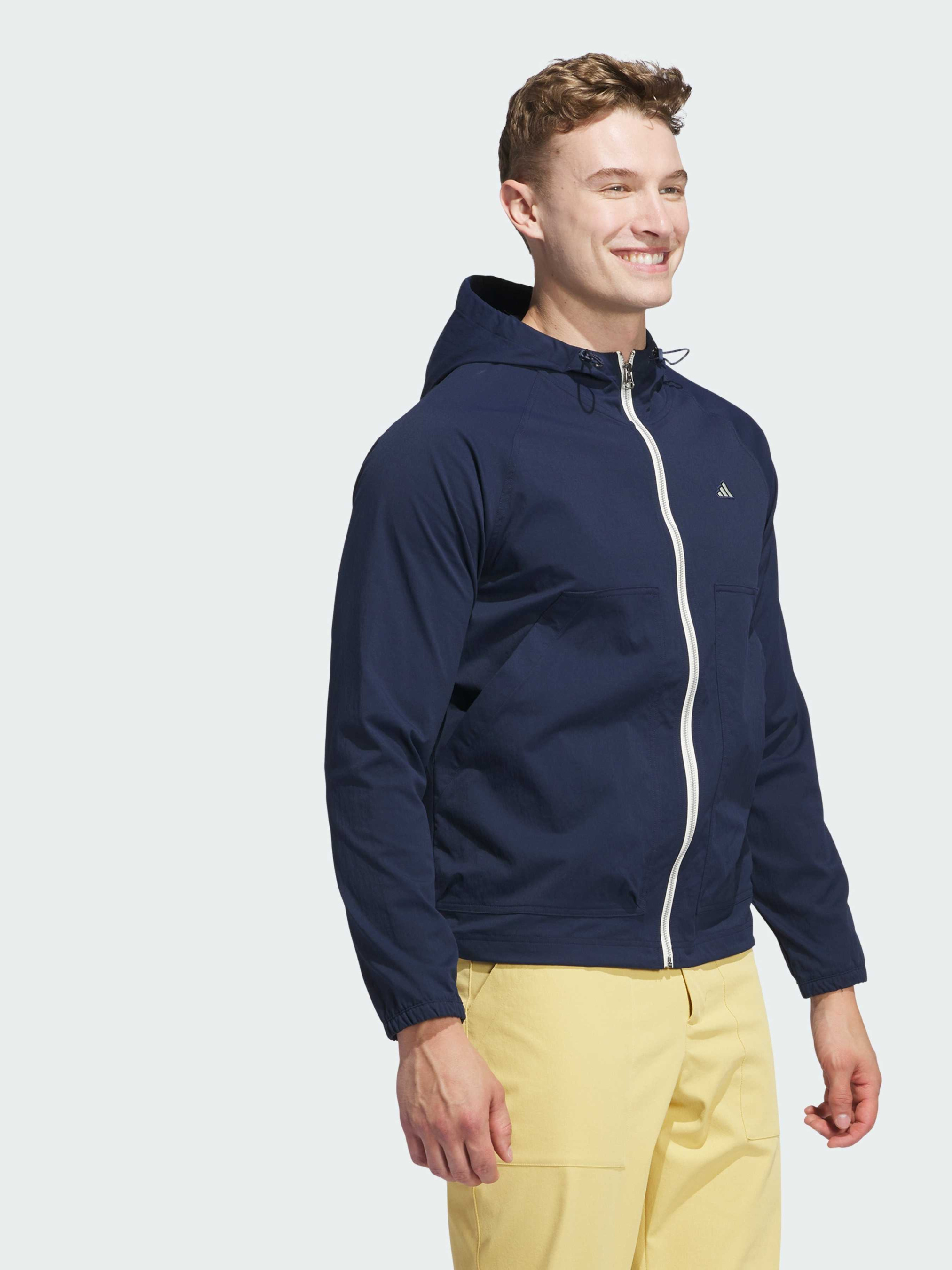 Характеристики 97% перероблений поліамід, 3% еластан Великі кишені спереду Застібка-блискавка; регульований капюшон зі стягуючим шнурком М'яка, еластична тканина Стандартний крій Еластичні манжети Подовжений нижній край Опис Застібайся і вперед - цю універсальну куртку adidas для гольфу можна носити до, під час і після гри. М'яка та еластична тканина забезпечує свободу рухів, коли потрібно зробити поворот або нахил. Твіл з бавовняним відчуттям додає повсякденного вигляду, який легко впишеться і в спортивний, і в міський стиль. Великі кишені та вільний силует з капюшоном роблять її ідеальним вибором як для дружніх партій, так і для зустрічей поза полем.