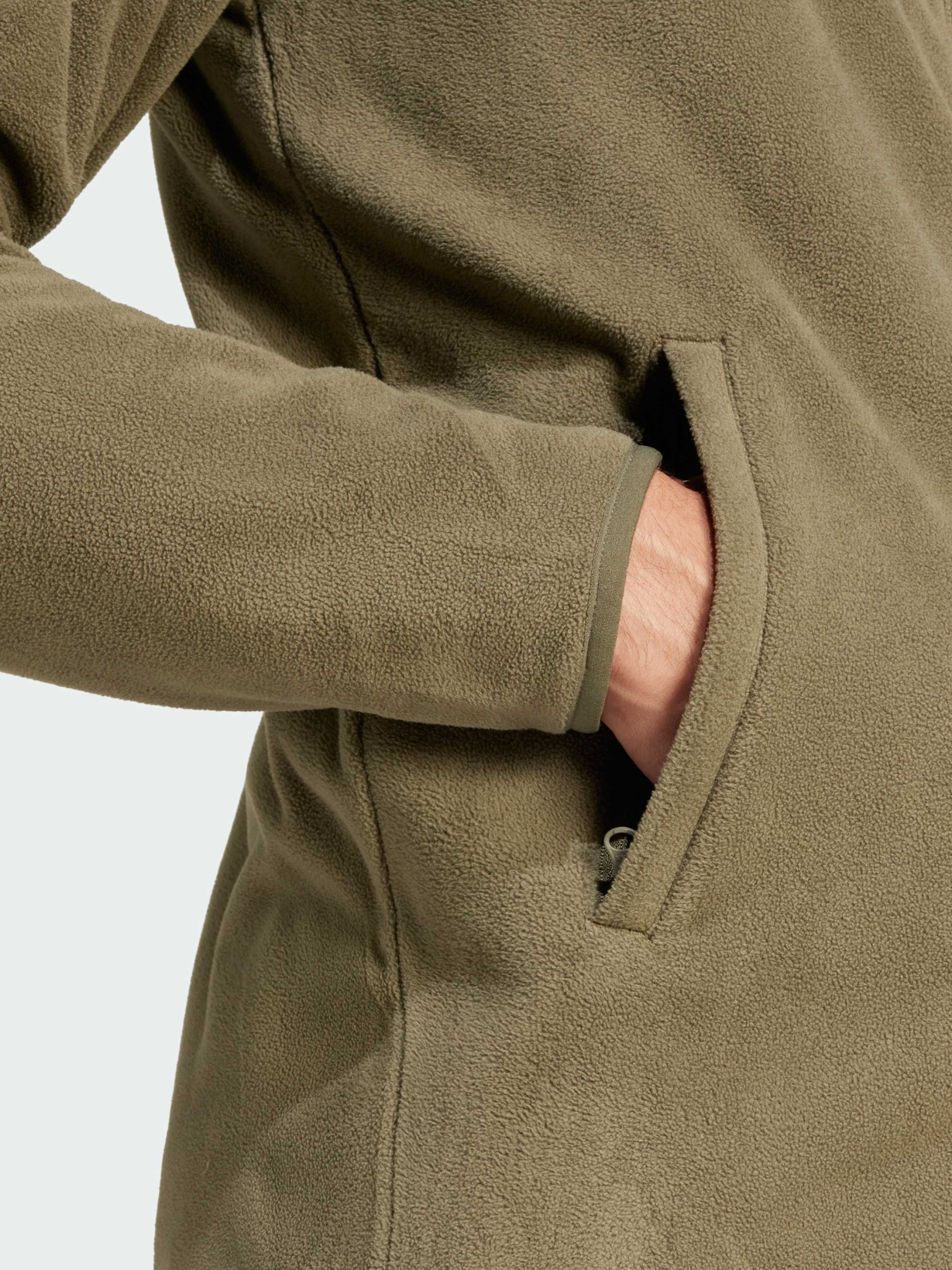 Характеристики 100% перероблений поліестер Бічні кишені на блискавці Застібка-блискавка та комір-стійка Стандартний крій Еластичні манжети та поділ Опис Якщо на вулиці прохолодно або на висоті потрібен додатковий шар, ця флісова кофта adidas стане ідеальним вибором. Вона універсальна і чудово підходить як для прогулянок стежками, так і для піддягання в будь-який час для підтримки тепла. М'який фліс забезпечує комфорт і приємні відчуття на тілі. Цей продукт виготовлений зі 100% перероблених матеріалів. Повторне використання матеріалів, які вже були створені, допомагає нам зменшити кількість відходів і залежність від обмежених ресурсів, а також скоротити вплив продукції, яку ми виробляємо. Йде розмір в розмір. Ми радимо замовити цю модель в твоєму звичайному розмірі.