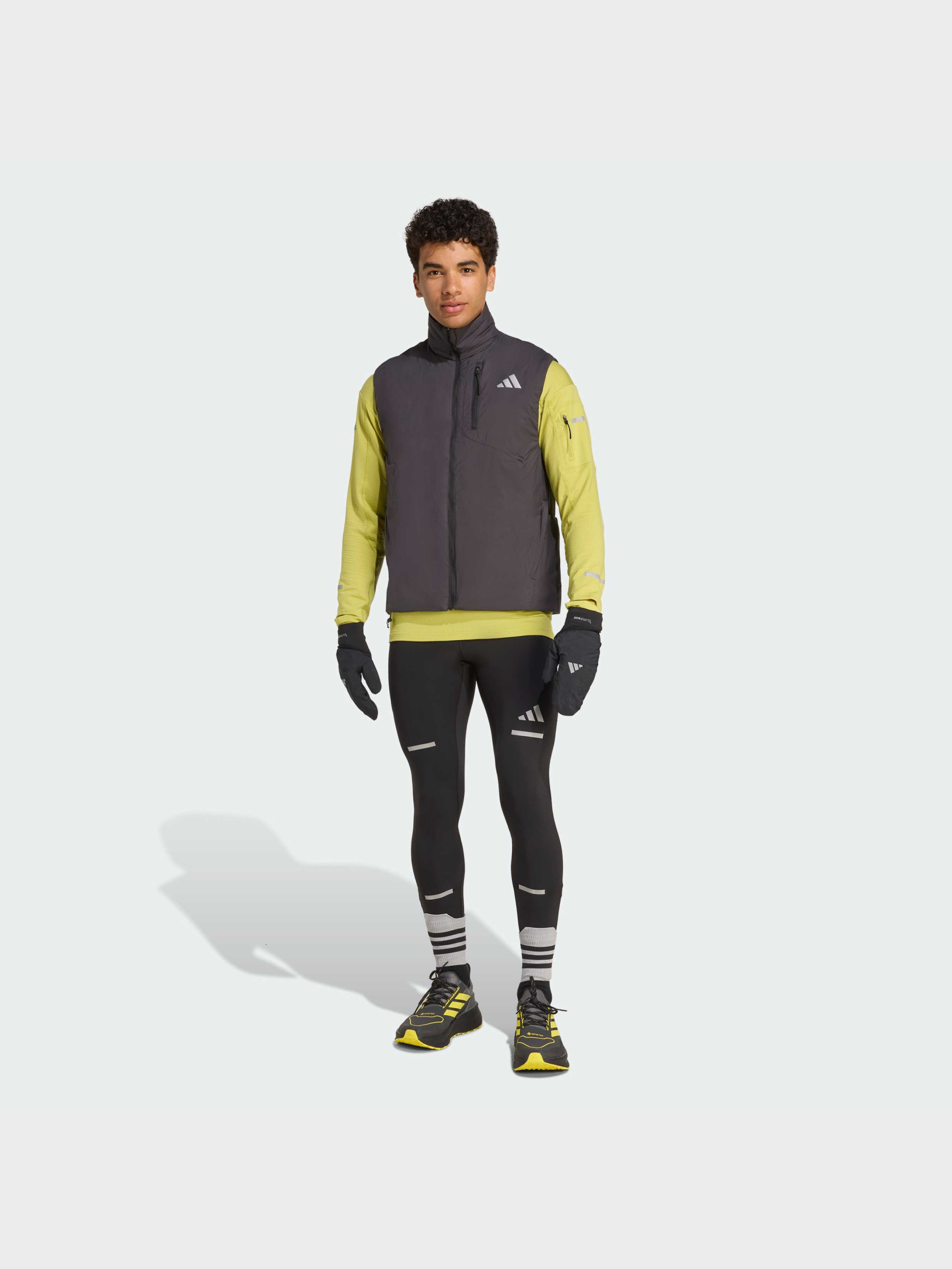 Характеристики 100% перероблений поліамід CLIMAWARM Стандартний крій Опис Одягни жилет і виходь на вулицю. Біговий жилет Adi365 розширює твій комфорт у прохолодну погоду. Технологія CLIMAWARM зберігає тепло і виводить вологу, щоб ти відчував тепло, сухість і зібраність на всій дистанції. Матеріал захищає від вітру і дрібного дощу - ти залишаєшся в комфорті, навіть коли погода змінюється. Світловідбиваючі елементи роблять тебе помітним в умовах слабкого освітлення. Бічні і нагрудні кишені на блискавці надійно зберігають ключі та інші дрібниці, а задні кишені дозволять швидко дістати енергетичний гель. CLIMAWARM утримує тепло і допомагає підтримувати оптимальну температуру тіла. Йде розмір в розмір. Ми радимо замовити цю модель в твоєму звичайному розмірі.