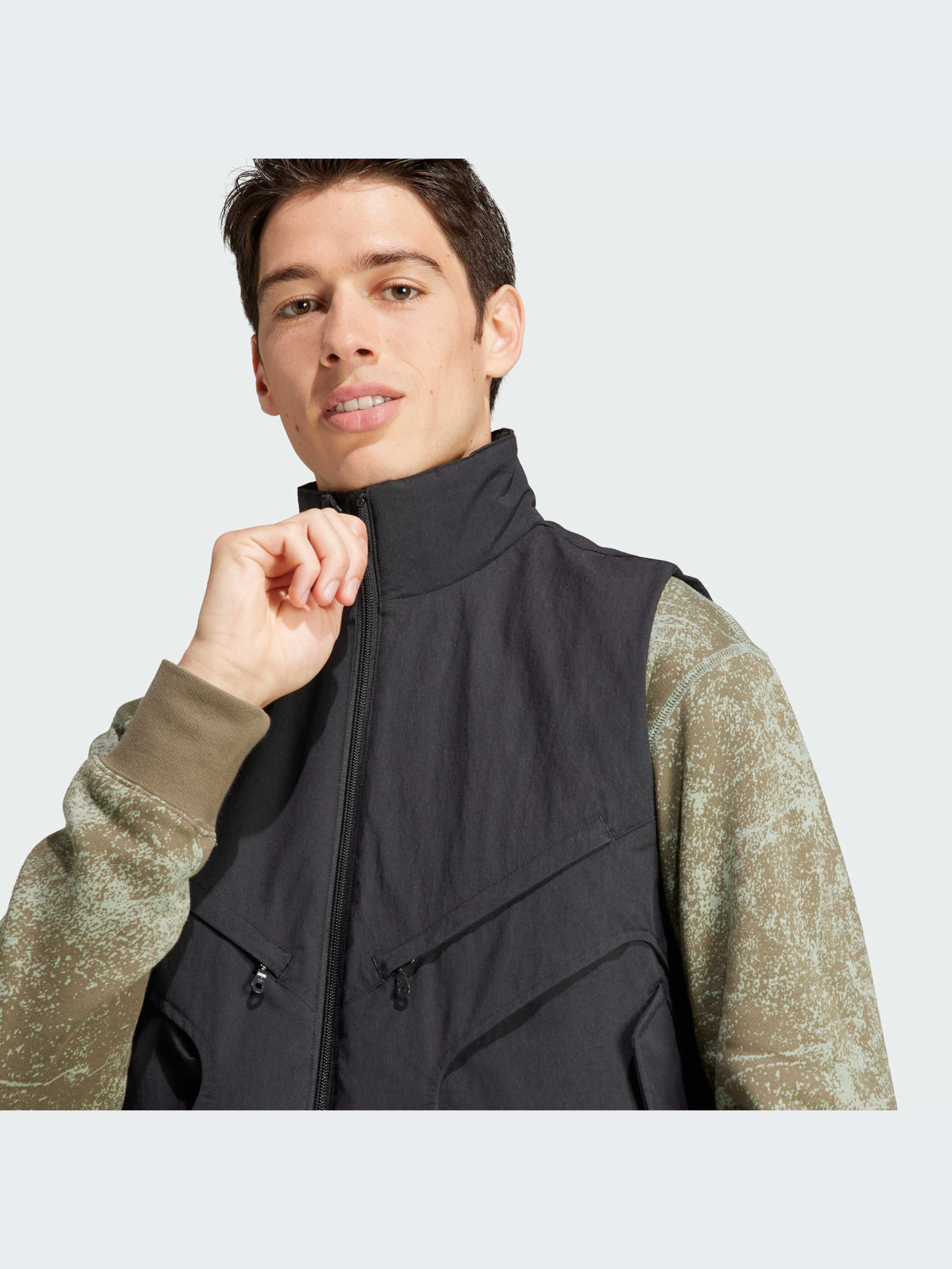 Виходь на вулицю і досліджуй околиці в цьому мульти-кишеньковому жилеті adidas Adventure. Накладні кишені з клапанами спереду вміщують необхідні речі та надають виробу суворого технічного вигляду, а м'яка бавовняна тканина забезпечує комфорт на весь день. Повна блискавка з коміром-стійкою дозволяє регулювати ступінь захисту залежно від умов. Преміальні деталі дозволяють тобі виглядати бездоганно під час подорожей. Щонайменше 70% цього продукту складається із перероблених та відновлюваних матеріалів Без утеплювача.