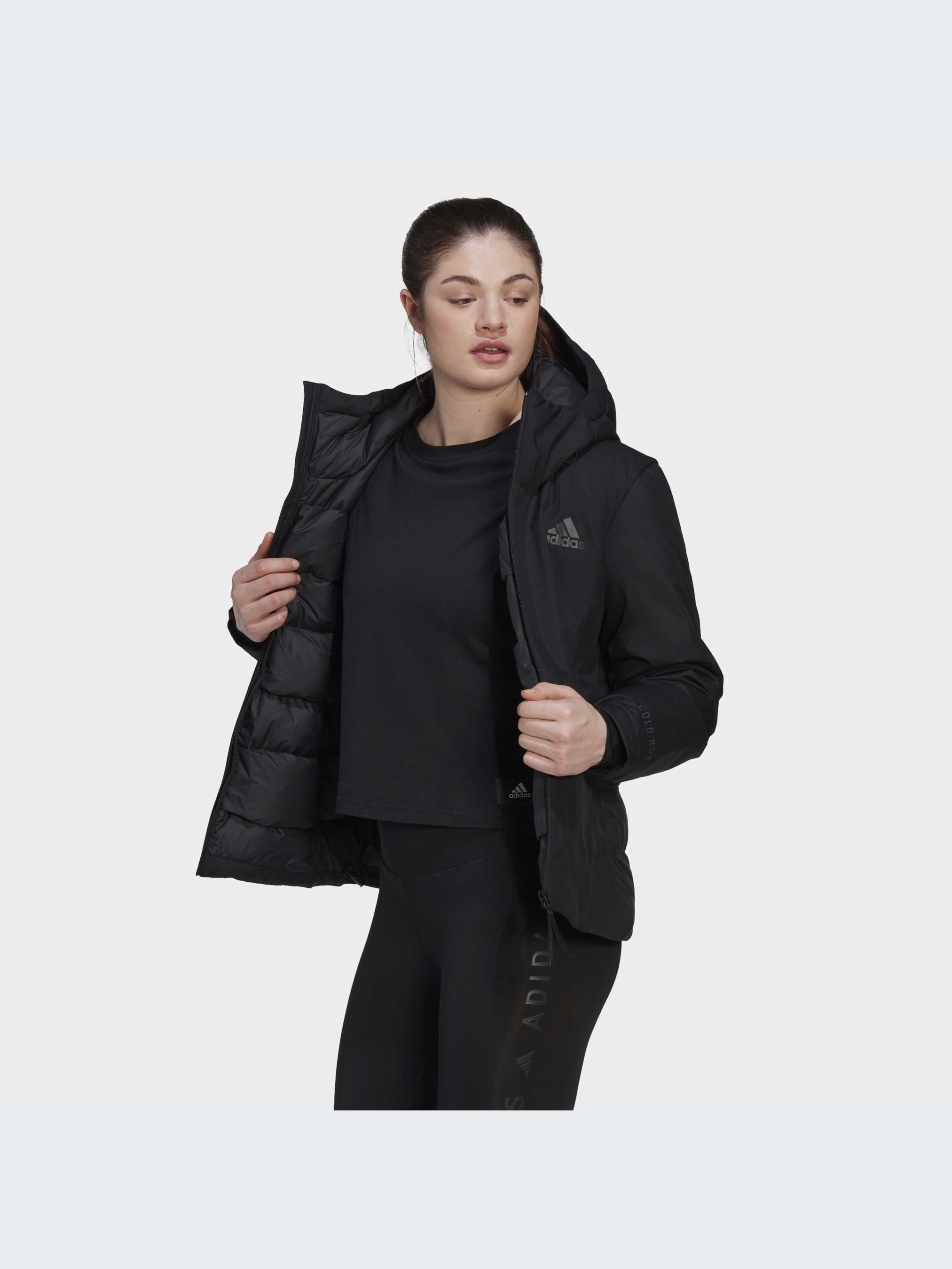 Ранній підйом? Вершина гори? Крижаний вітер? Цей пуховик adidas COLD.RDY зберігає тепло та захищає від опадів, щоб ти могла зосередитися на тому, що робиш. Верх корпусу, рукава та капюшон не пропускають воду, а водовідштовхувальний утеплювач продовжує гріти навіть в умовах вогкості. Перекриваючі один одного валики знижують втрату тепла. Вирушай назустріч новому і не думай про погоду. До складу моделі входить матеріал Primegreen, створений із перероблених волокон. Великомірна модель. Враховуючи досвід наших покупців, рекомендуємо обирати на розмір менший, ніж зазвичай (якщо зазвичай ти носиш розмір М, рекомендуємо замовити розмір S).