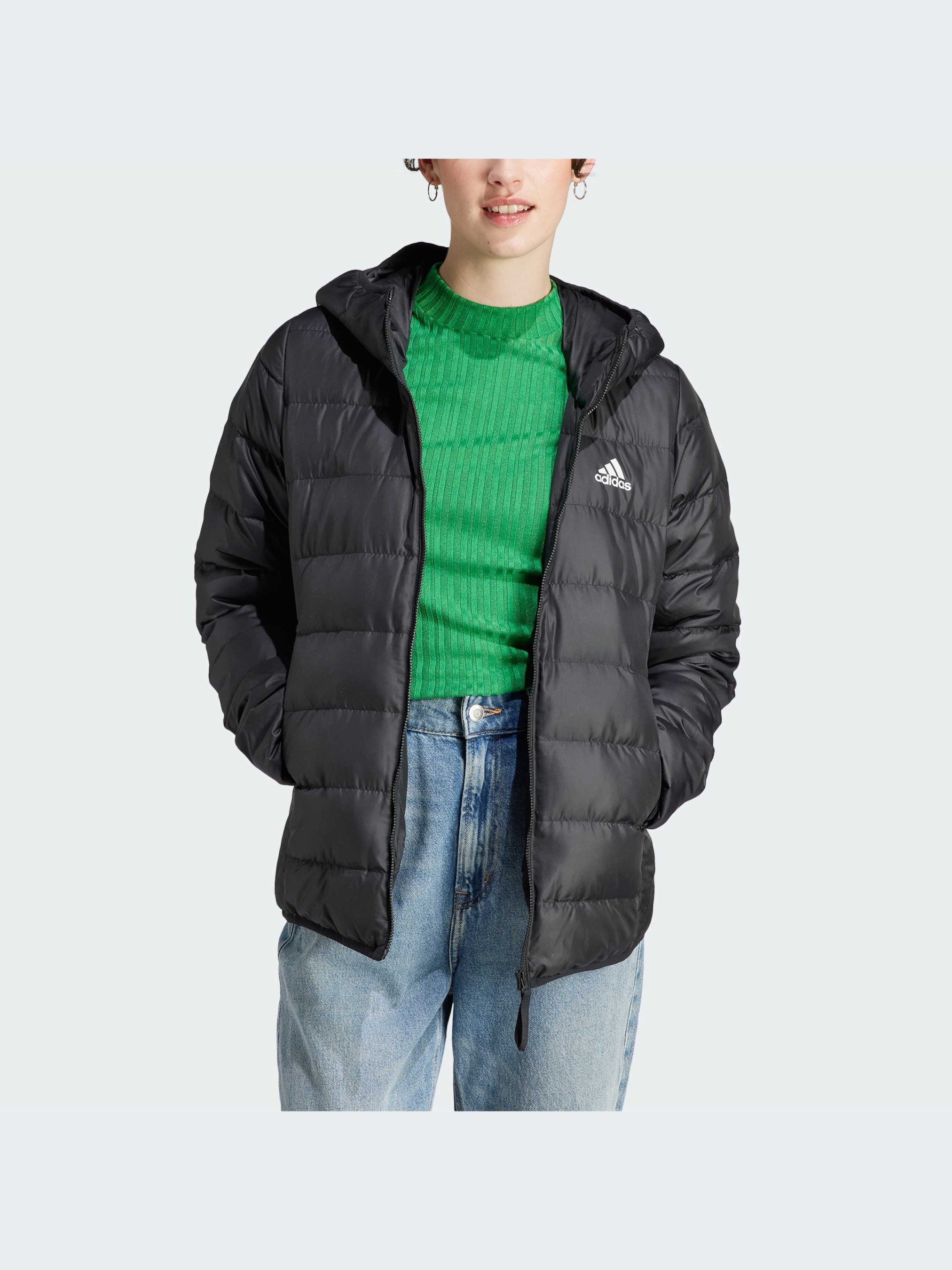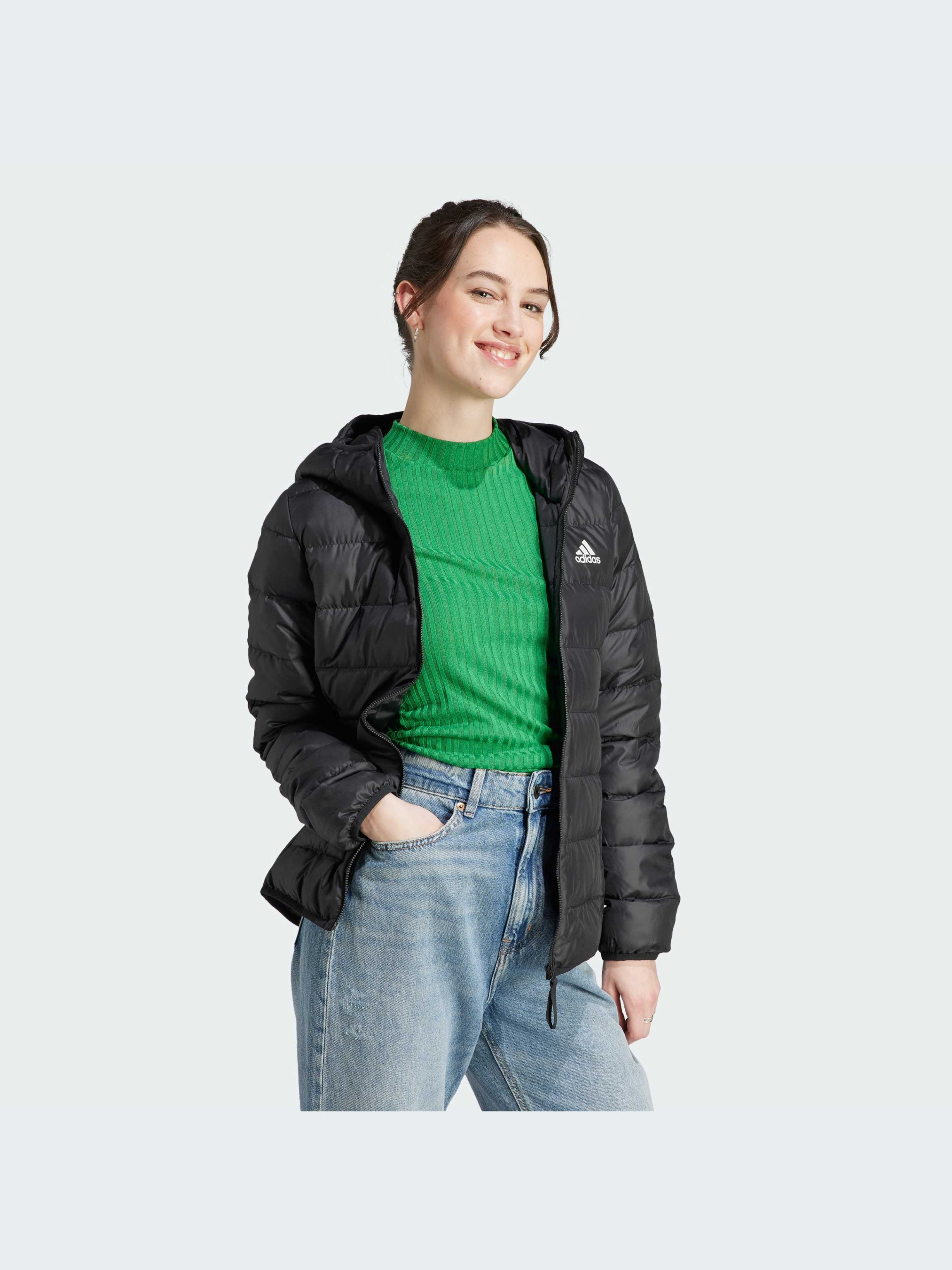 Ця стримана куртка adidas легко поєднується з будь-якими речами, захищаючи від холоду. Вона наповнена легким пухом і пір'ям для тепла. Водовідштовхувальне покриття без PFC захищає від дощу, а еластичний капюшон залишається на місці за сильного вітру. Просто поклади телефон і ключі в кишені, і ти можеш сміливо вирушати на вулицю. Модель виготовлена з використанням низки перероблених матеріалів і щонайменше на 70% складається з вторинної сировини, являючи собою лише одне з наших рішень, покликаних покінчити з пластиковими відходами.