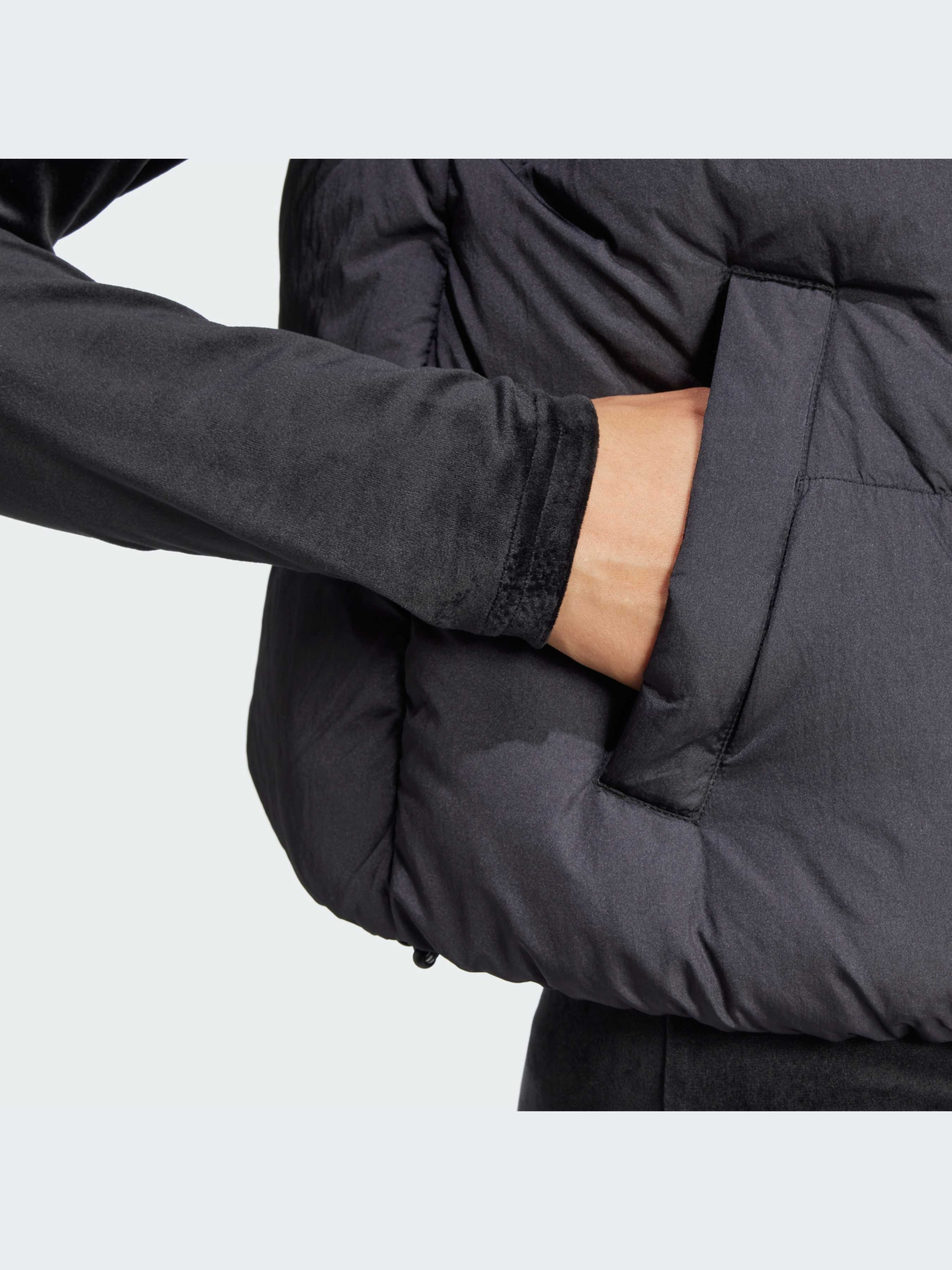 Зберігай тепло без зусиль. Цей легкий жилет преміум-класу з наповнювачем із качиного пуху зігріває в холодні дні. Вільний, неструктурований крій дає змогу одягати його під куртки або просто накинути на себе у вихідні дні, коли біжиш у справах. Трилисник adidas завершує образ. Під час виготовлення цього виробу використано щонайменше 70% перероблених матеріалів. Повторне використання матеріалів, які вже були створені, допомагає нам скоротити кількість відходів і залежність від обмежених ресурсів, а також знизити вплив продукції, яку ми виробляємо.