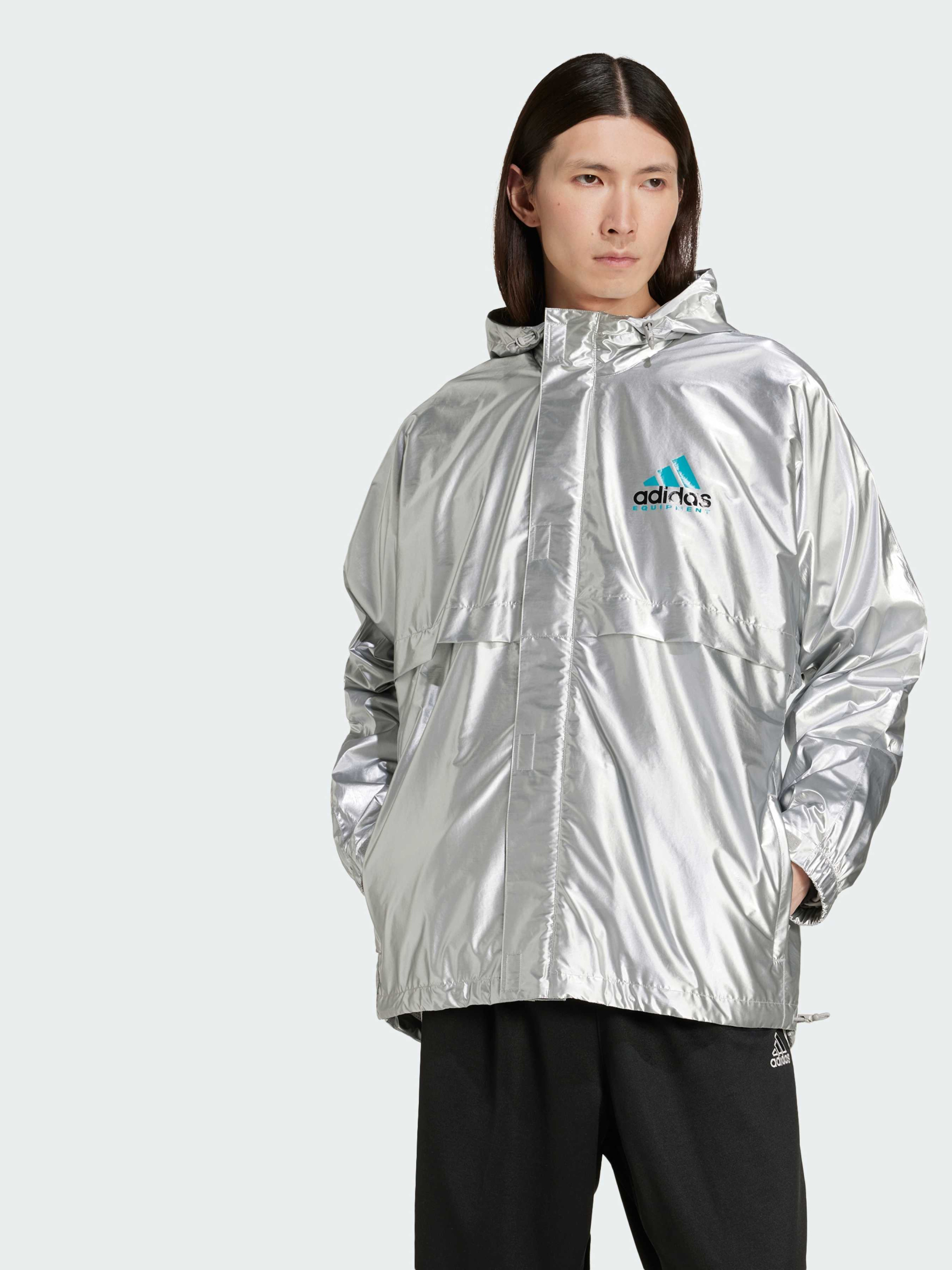 Характеристики Бічні кишені Зовнішній шар: 100% поліуретан; Внутрішній шар: 100% перероблений поліамід Повна блискавка з регульованим капюшоном, що забирається. Регульовані манжети і нижній край. Стандартний крій Опис Ця вітровка Adidas поєднує в собі ретро-стиль з футуристичними елементами. Вона має блискуче металеве покриття з характерними деталями Equipment, натхненними культовою колекцією спортивного одягу 90-х, і гладку конструкцію, яка зберігає чистий вигляд. Кишені на блискавці, регульований поділ і капюшон, що складається, гарантують, що ви будете готові до будь-яких ситуацій.