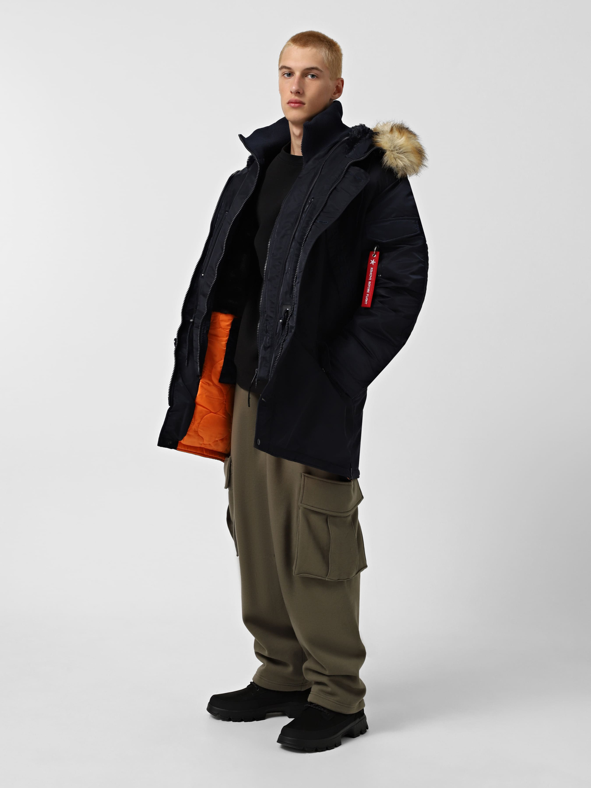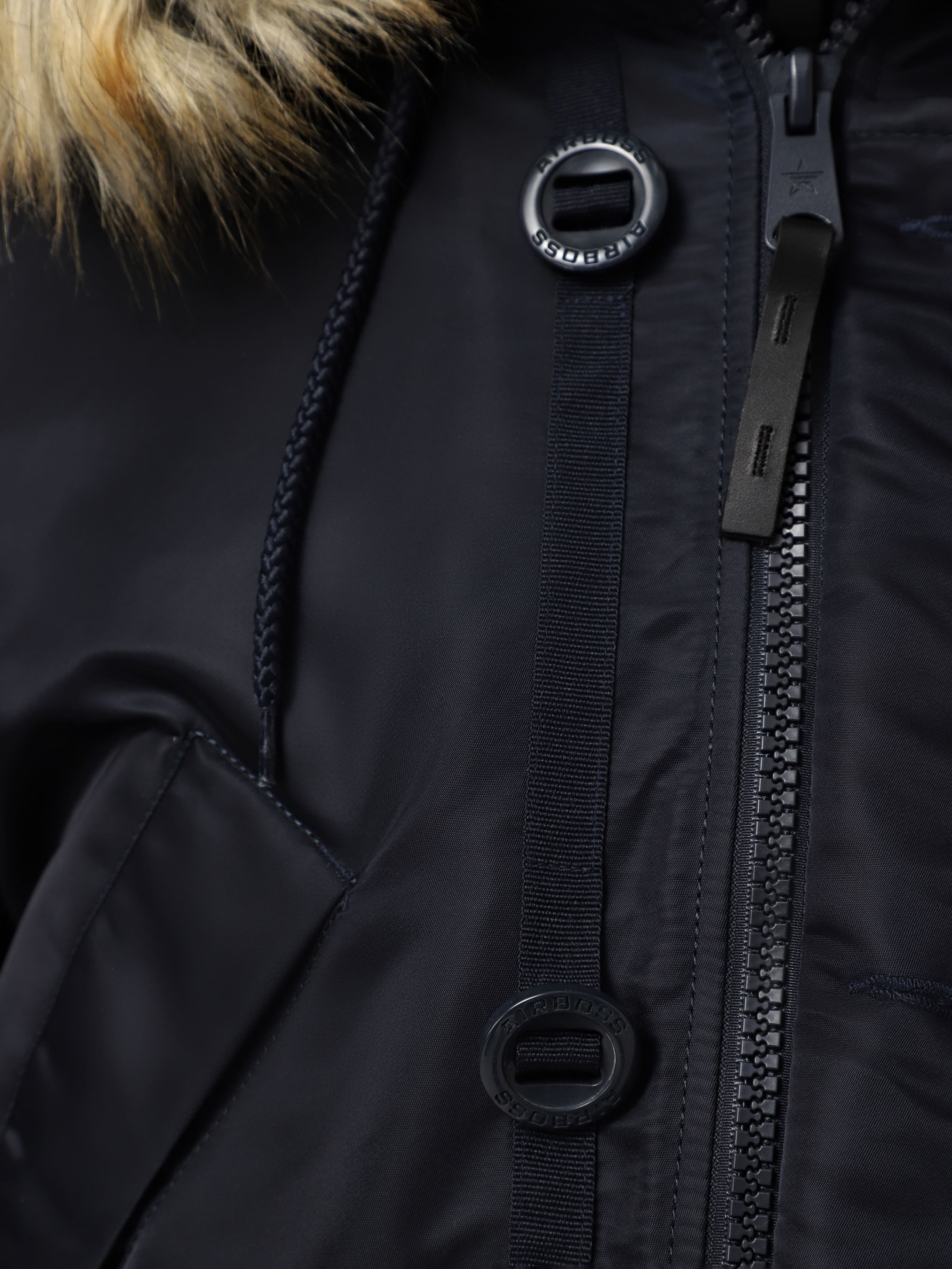 Adventure Parka від Airboss — це зимова куртка, що поєднує автентичний військовий стиль і сучасні технології. Виконана з льотного нейлону з просоченням, вона відштовхує воду та бруд. Внутрішнє утеплення — чорне штучне хутро. Модель оснащена знімною вставкою з високим коміром для додаткового захисту від вітру. Куртка має шість зовнішніх і три внутрішні кишені, а також регулювання на талії та бокові розширювачі. Утеплення забезпечується інноваційною технологією Airboss Insulation Technology, що гарантує комфорт у найсуворіших умовах.