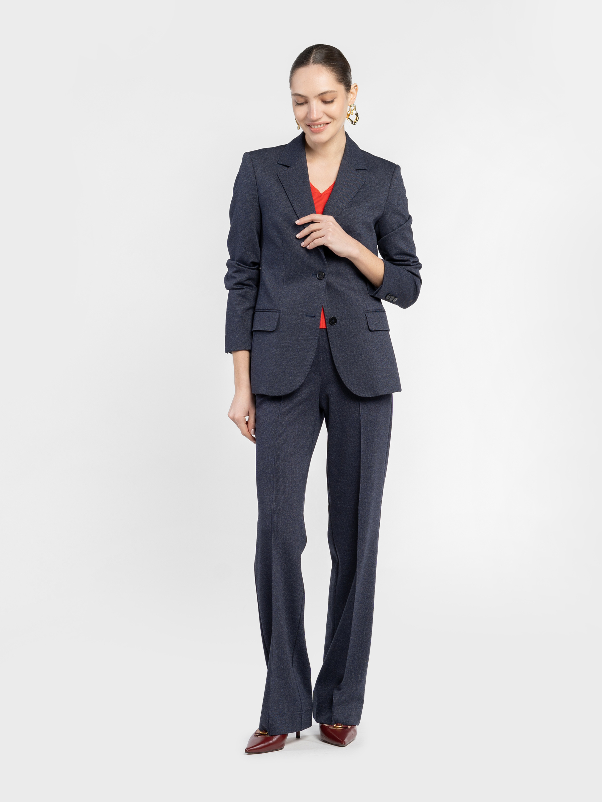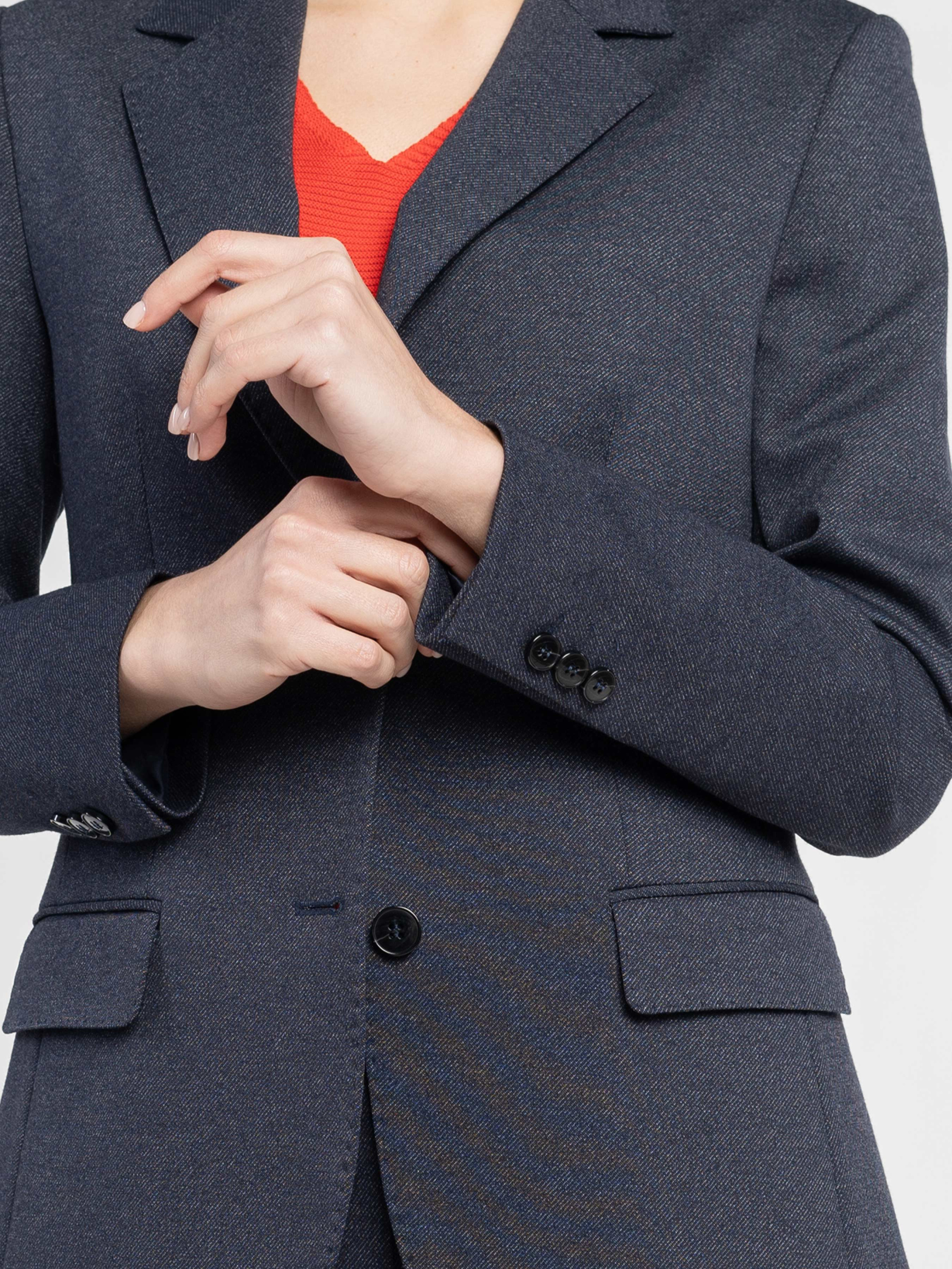 Жакет жіночий Arber темно-синього кольору , виконаний з м’якої тканини з додаванням віскози. Прямий крій створює гармонійний баланс сили та елегантності. Однобортна застібка на ґудзики, прямі лацкани та дві прорізні кишені з клапаном забезпечують ідеальну посадку і функціональність. Ідеально доповнює як сучасні брюки, так і стильні спідниці , створюючи вишуканий total look. Модель на фото у розмірі 42. Зріст: 175 см. Параметри: 84/61/91