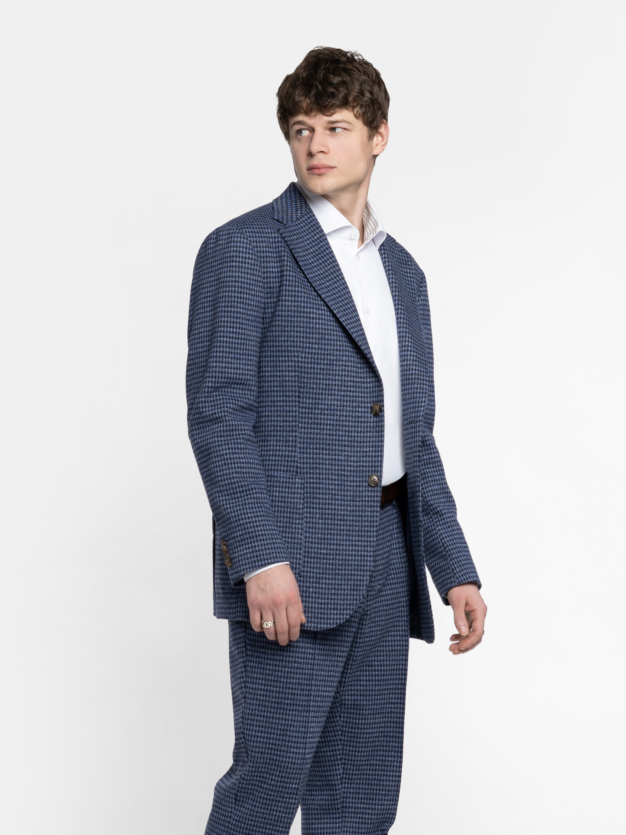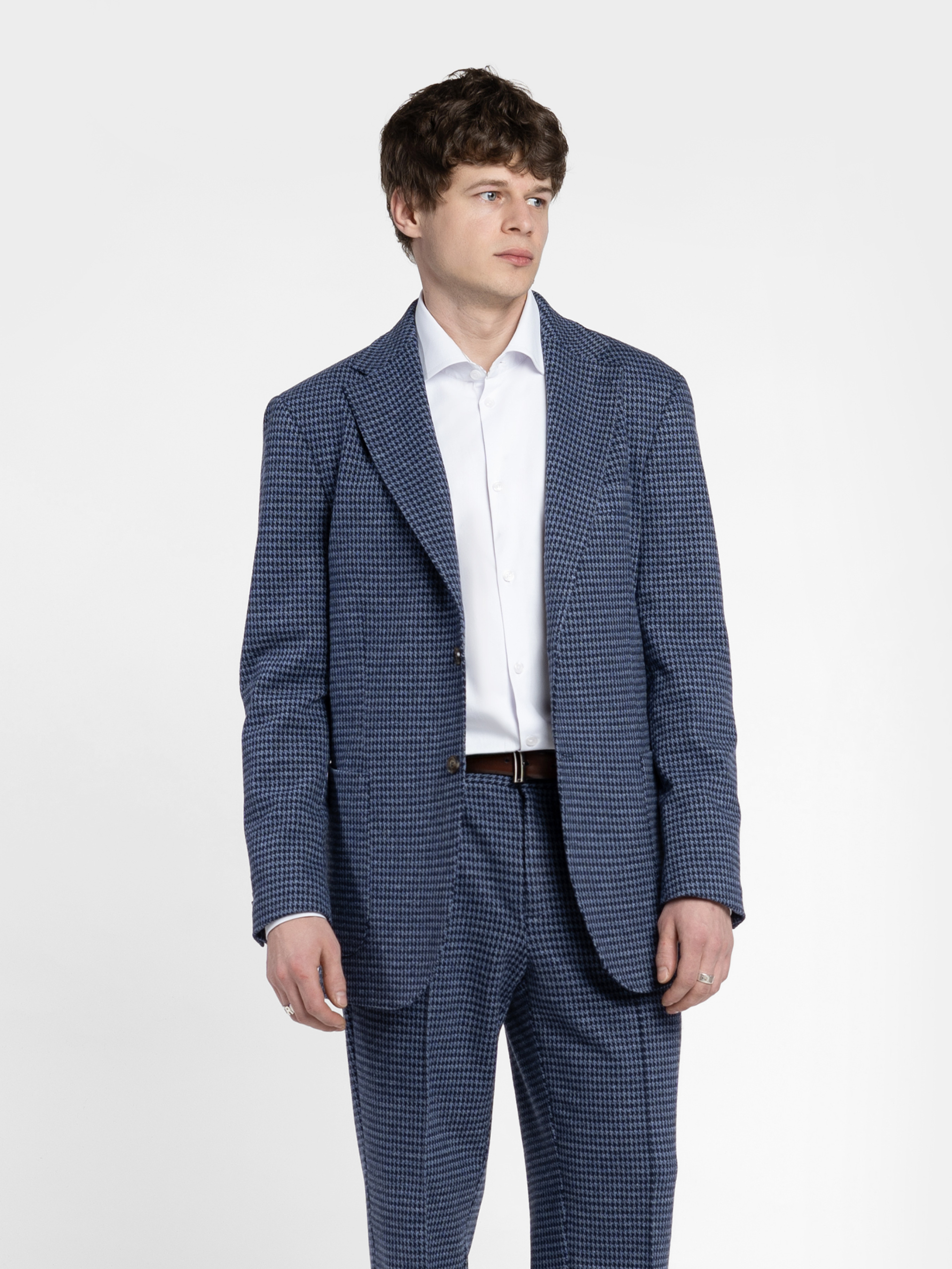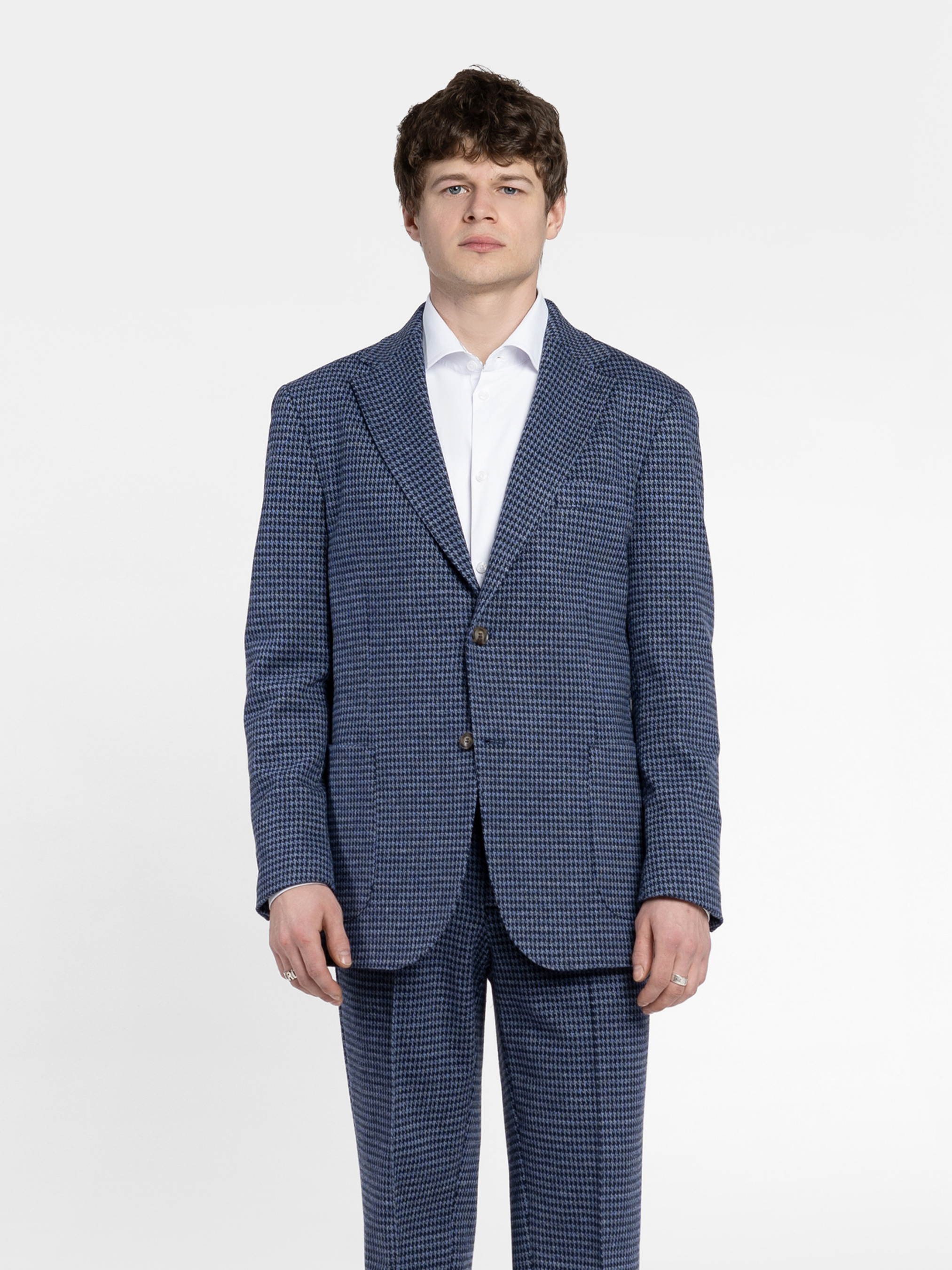 Чоловічий піджак Arber синього кольору, створений з трикотажної тканини на основі шовковистої віскози з додаванням еластану. Матеріал тягнеться, не мнеться та зберігає форму навіть при активному ритмі дня. Модель має класичний крій, акуратні лацкани та продуману посадку. Оснащений двома накладними кишенями та однією нагрудною. Ідеально виглядає у комплекті з брюками M01.09.06.611 з тієї ж тканини, для стильних офісних образів, зустрічей з друзями або вечірніх виходів — легко поєднується з брюками, джинсами. Модель на фото у розмірі 48. Зріст: 188 см. Параметри: 110/80/100