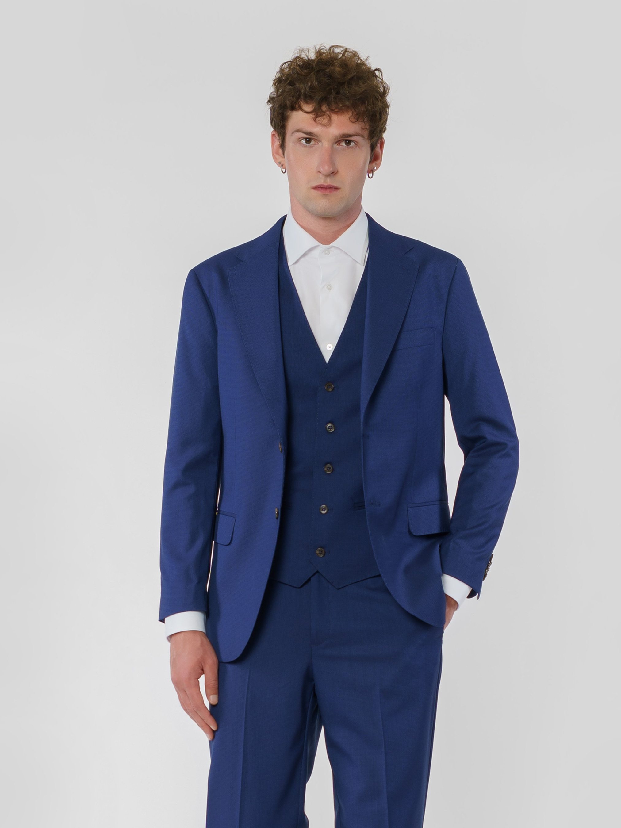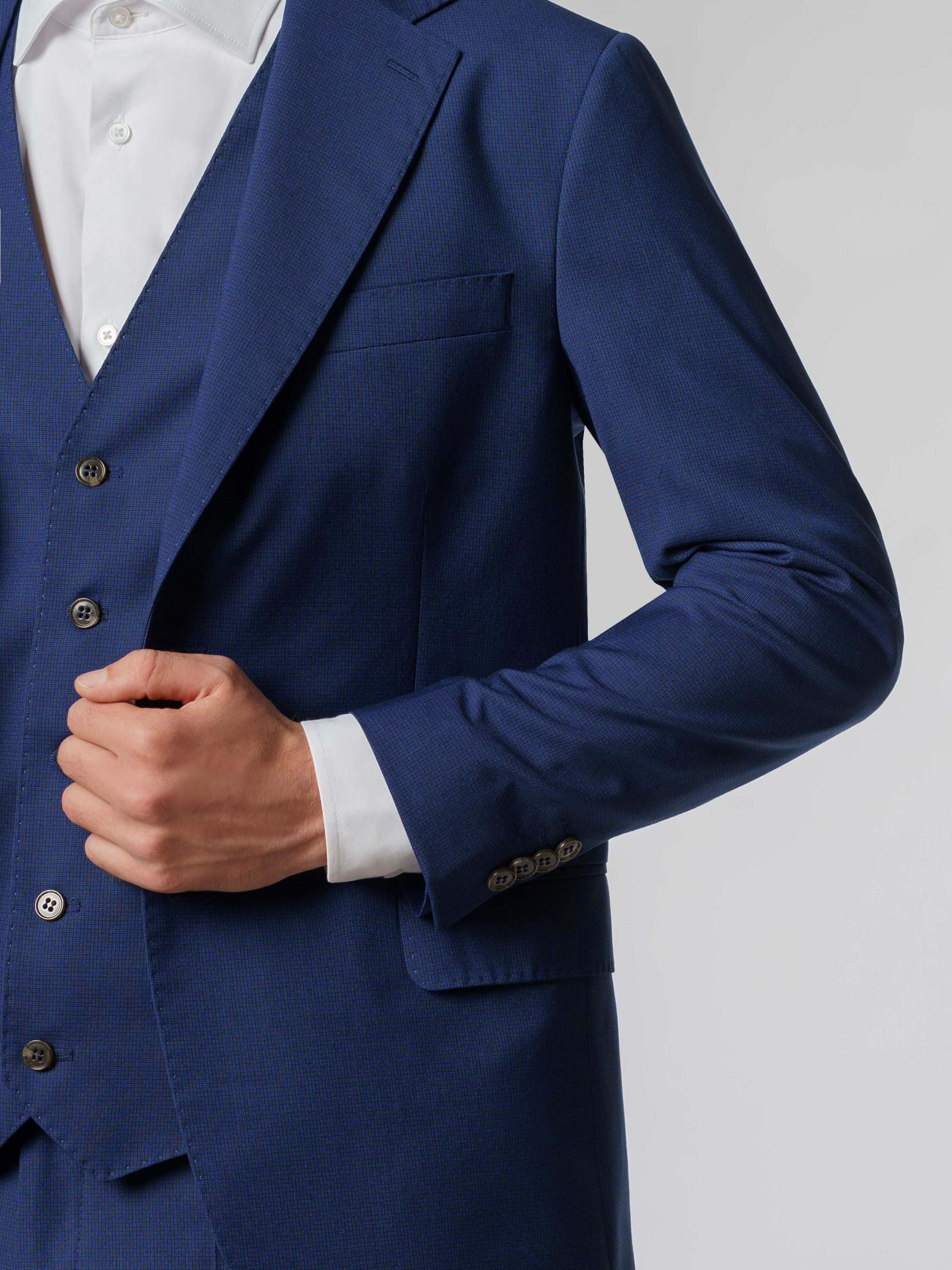 Чоловічий стильний синій піджак Arber в приталеному силуеті виготовлений з м'якої тканини на основі віскози. Інноваційні добавки забезпечують вільну циркуляцію повітря, а тканина практична, не мнеться і стійка до забруднень. Модель має застібку на 2 ґудзики, прямі лацкани, дві кишені та дві шлиці. Для створення стильного комплекту можна додати жилет і брюки з сорочкою.тієї ж тканини, щоб створити стильний та елегантний образ, який можна доповнити тонким трикотажем або