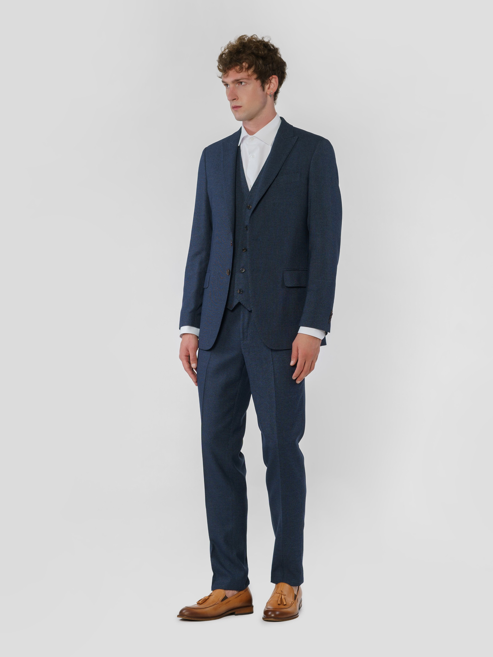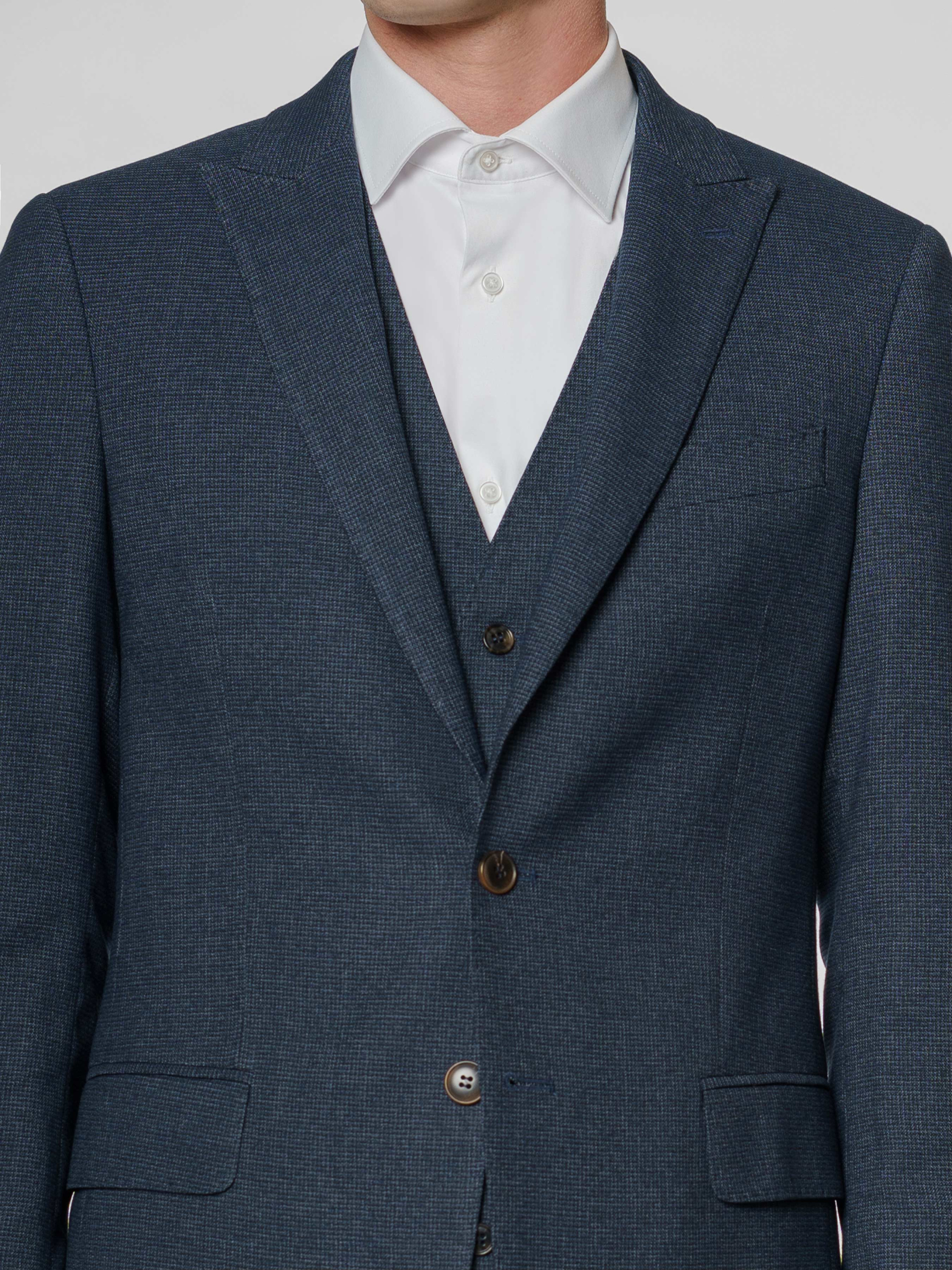 Чоловічий стильний синій піджак Arber приталеного силуету, виготовлений з м'якої тканини на основі віскози. Інноваційні добавки забезпечують вільну циркуляцію повітря, а тканина практична, не мнеться і стійка до забруднень. Модель має застібку на 2 ґудзики, гострі лацкани, дві кишені, дві шлиці. Для створення стильного комплекту можна додати жилет і брюки з тієї ж тканини, щоб створити стильний та елегантний образ, який можна доповнити тонким трикотажем або сорочкою.