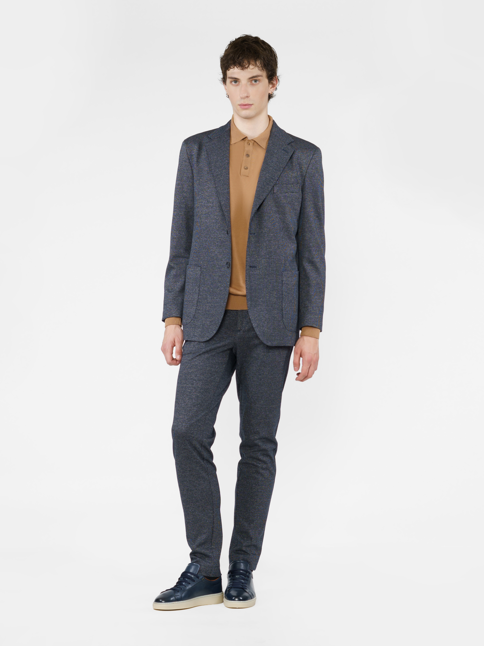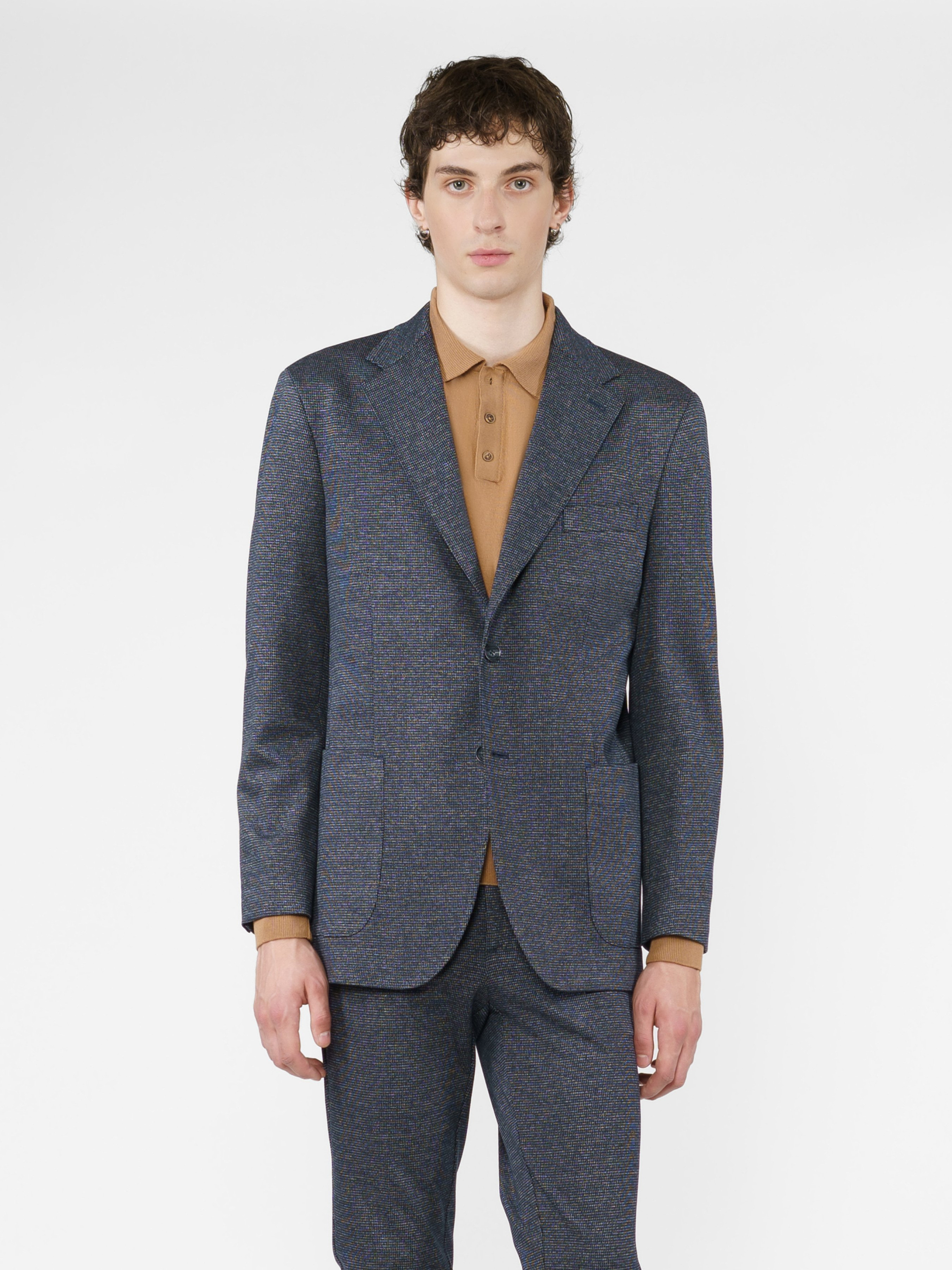 Чоловічий трикотажний синій піджак Arber, створений з еластичної тканини на основі шовковистої віскози. Піджак максимально комфортний та ідеально сідає на фігурі завдяки м'якій трикотажній тканині. Модель на 2 ґудзики, із прямим лацканом, двома накладними кишенями та двома шліцами, підкладка спинки вкорочена. Піджак чудово поєднується із брюками з бавовни або джинсами, доповнити образ можна тонким трикотажем, сорочкою casual та неформальним взуттям. Можна також доповнити піджак брюками з такої ж тканини M01.27.09.431.