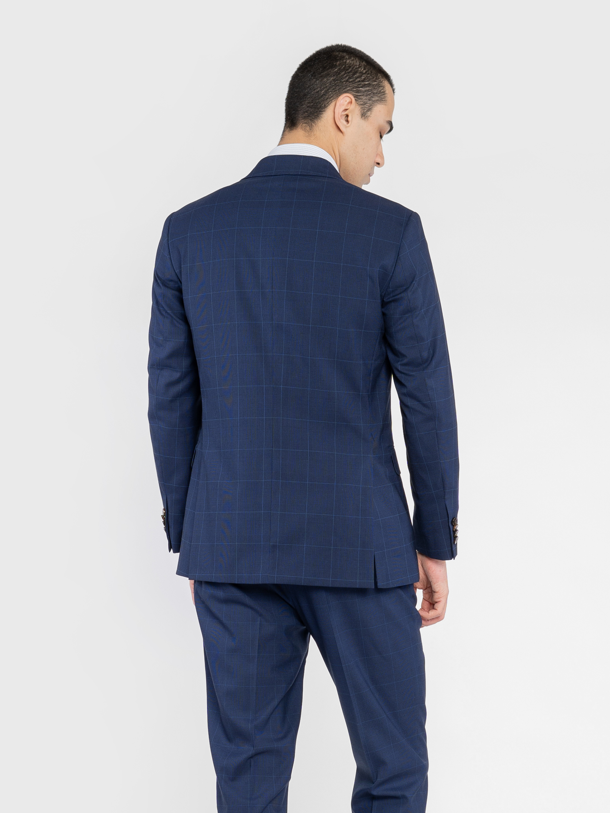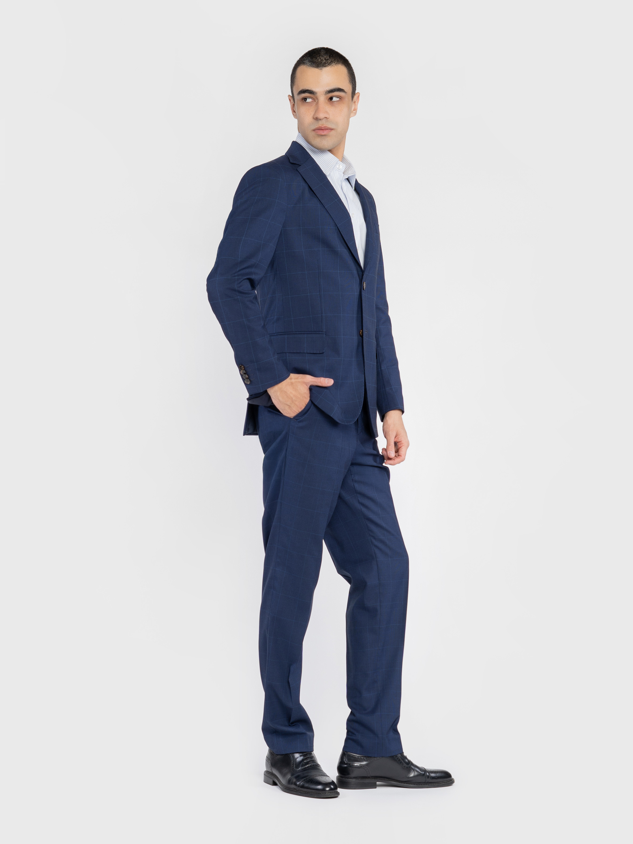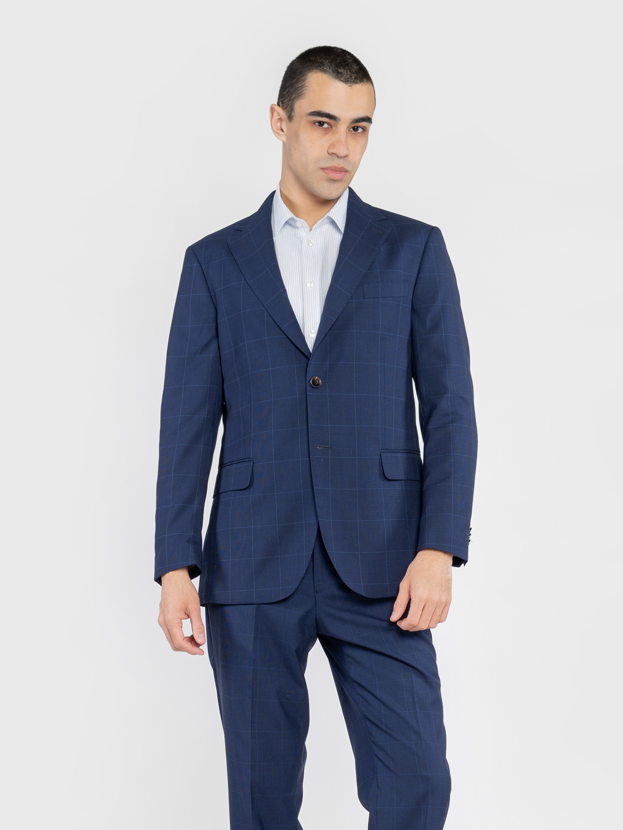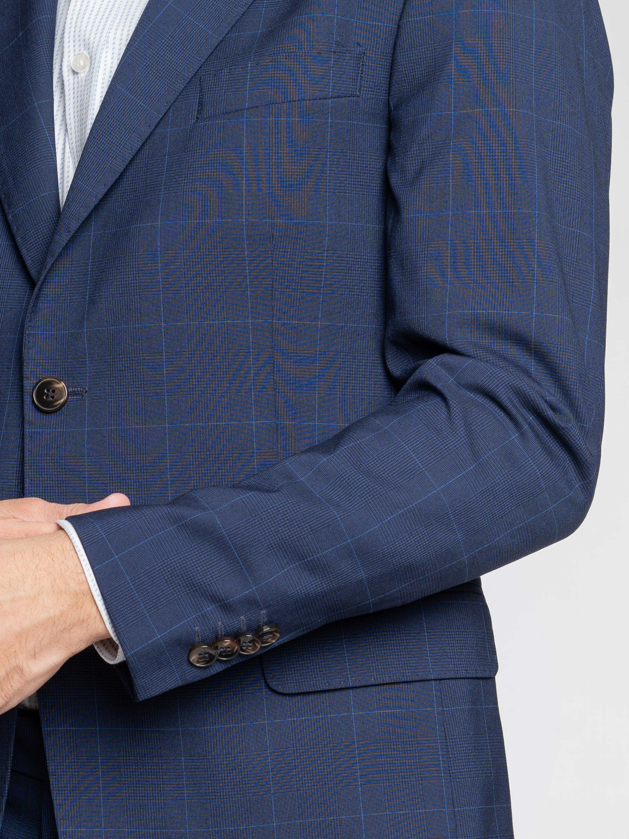 Чоловічий піджак Arber темно-синього кольору у клітину, виготовлений з інноваційної тканини з додаванням віскози. Інноваційні добавки забезпечують вільну циркуляцію повітря, а тканина практична, не мнеться та стійка до забруднень. Модель має застібку на 2 ґудзики, прямі лацкани, дві кишені з клапаном та дві шлиці. Для створення стильного комплекту можна додати брюки M31.01.09.511 з тієї ж тканини, щоб створити елегантний образ, який можна доповнити тонким трикотажем або сорочкою. Модель на фото в розмірі 48. Зріст: 188 см. Параметри: 97/78/96.