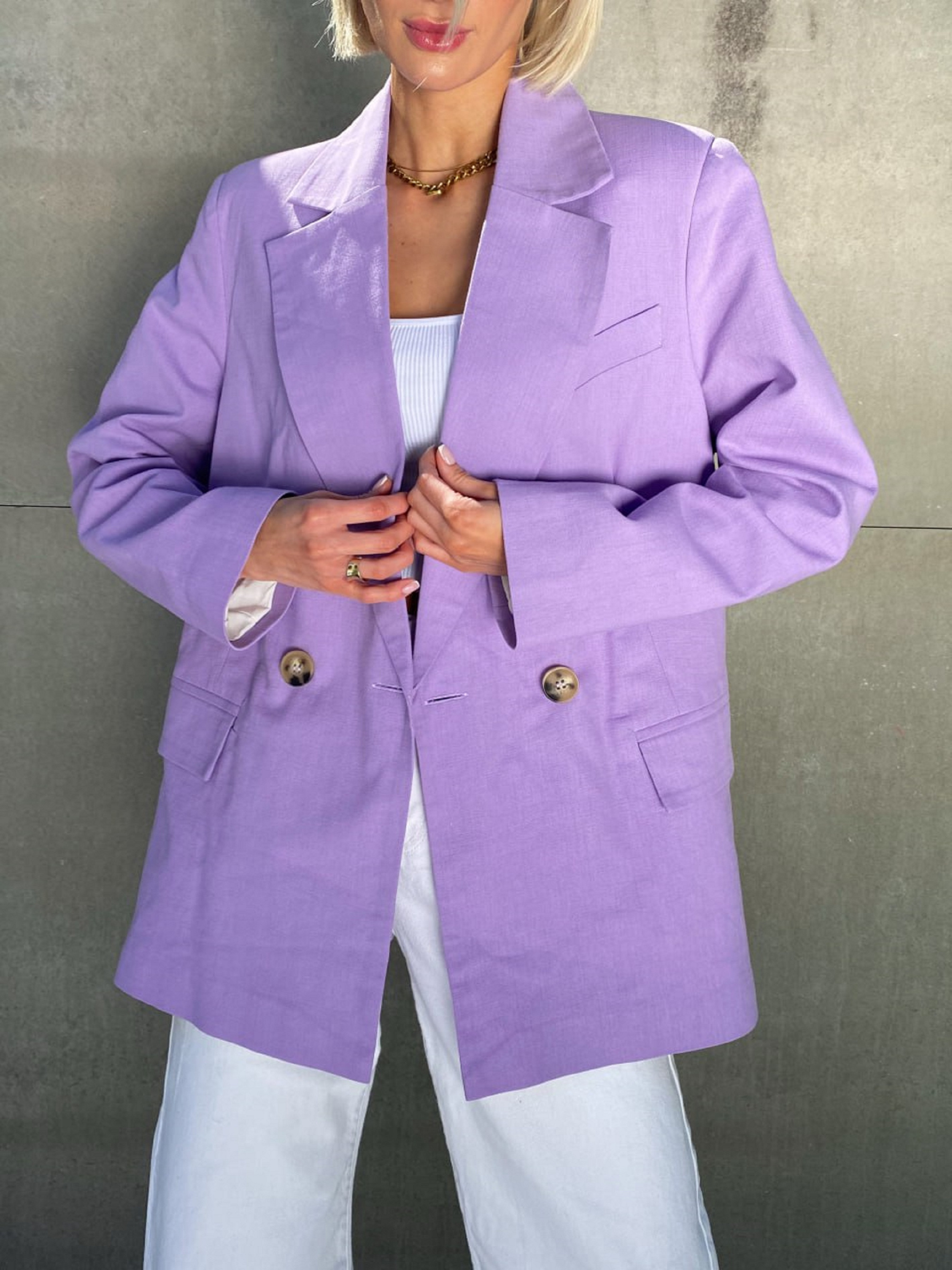 Класичний піджак LOVE — ідеальний варіант для стильного та сучасного образу. Модель виконана у трендовому «чоловічому плечі», що додає суворості силуету, але при цьому залишається жіночною завдяки правильному крою та карманам. Легкий шліць по спинці та бавовняна підкладка роблять піджак зручним і практичним для щоденного носіння. Деталі та переваги Трендовий крій «з чоловічого плеча» — сучасний силует із легким акцентом на плечах Кармани спереду — практичні та естетичні Шліць по спинці — забезпечує комфорт та свободу рухів Підкладка: бавовняна штапель — приємна до тіла та дихає Льняна тканина — натуральна, легка та комфортна Характеристики Тип виробу: жіночий піджак Силует: класичний, злегка приталений Матеріал: льон Підкладка: штапель Розмір: S (42-44), M (44-46) Кольори: жовтий, лайм Сезон: весна-літо Як носити Поєднуйте піджак LOVE з брючним костюмом для офісного образу, джинсами для повсякденного стилю або зі спідницею для романтичного вигляду.