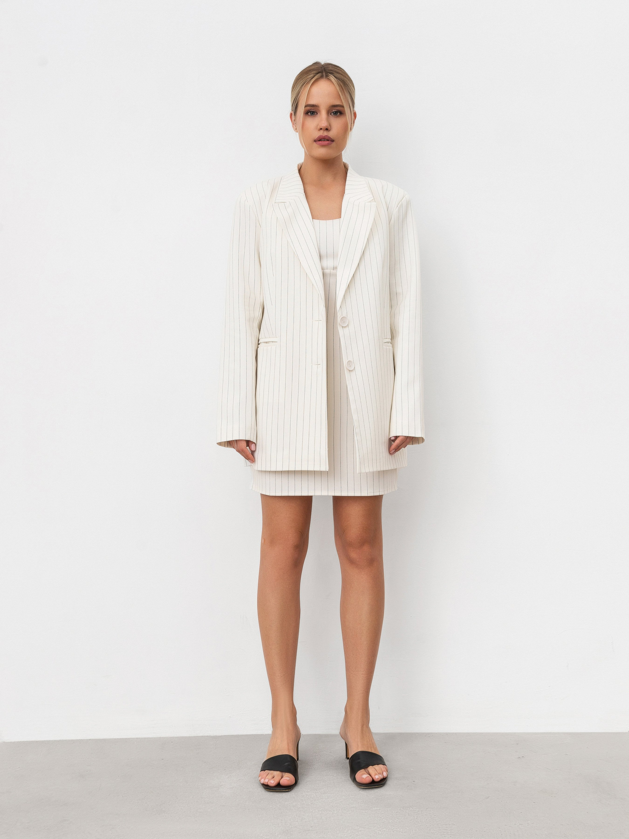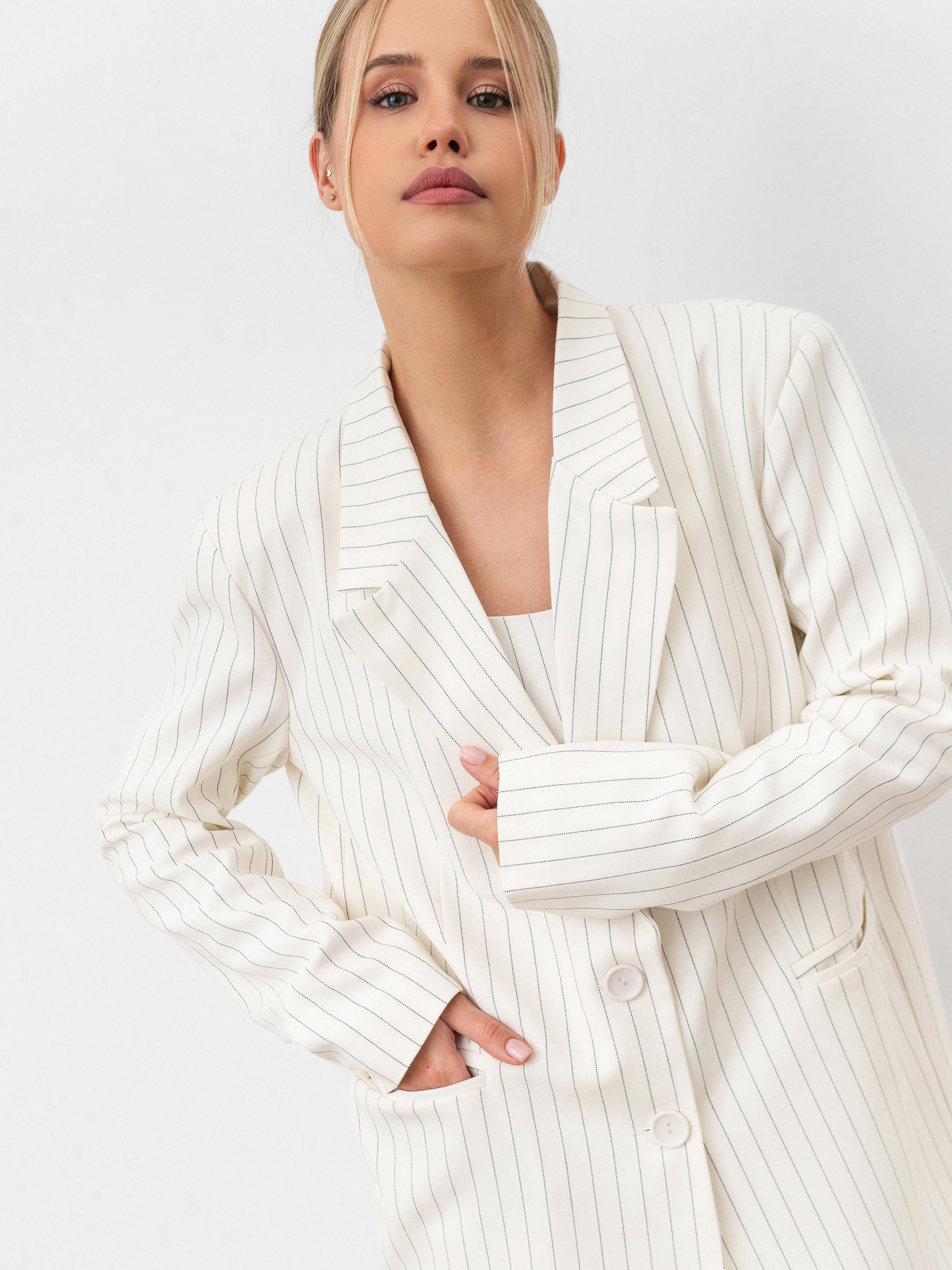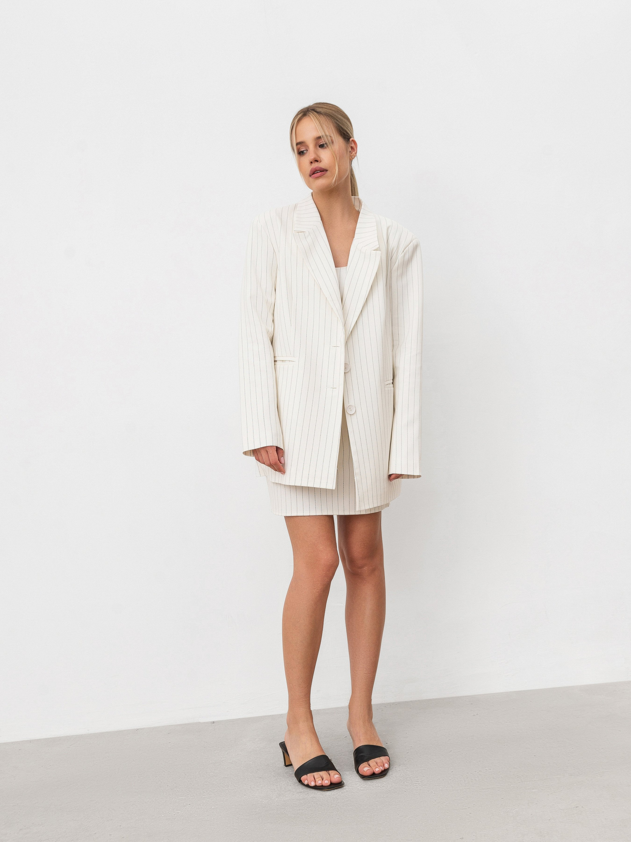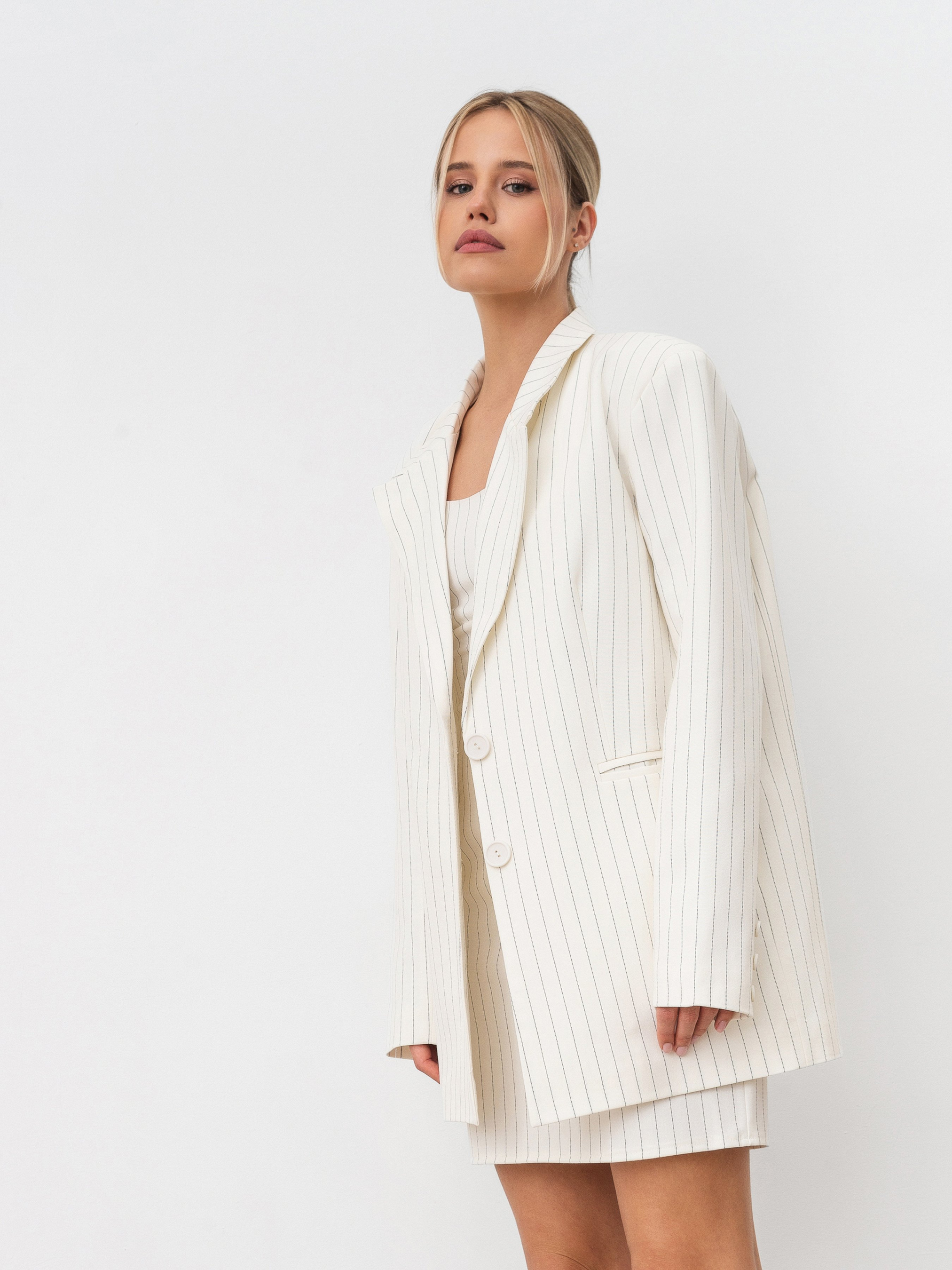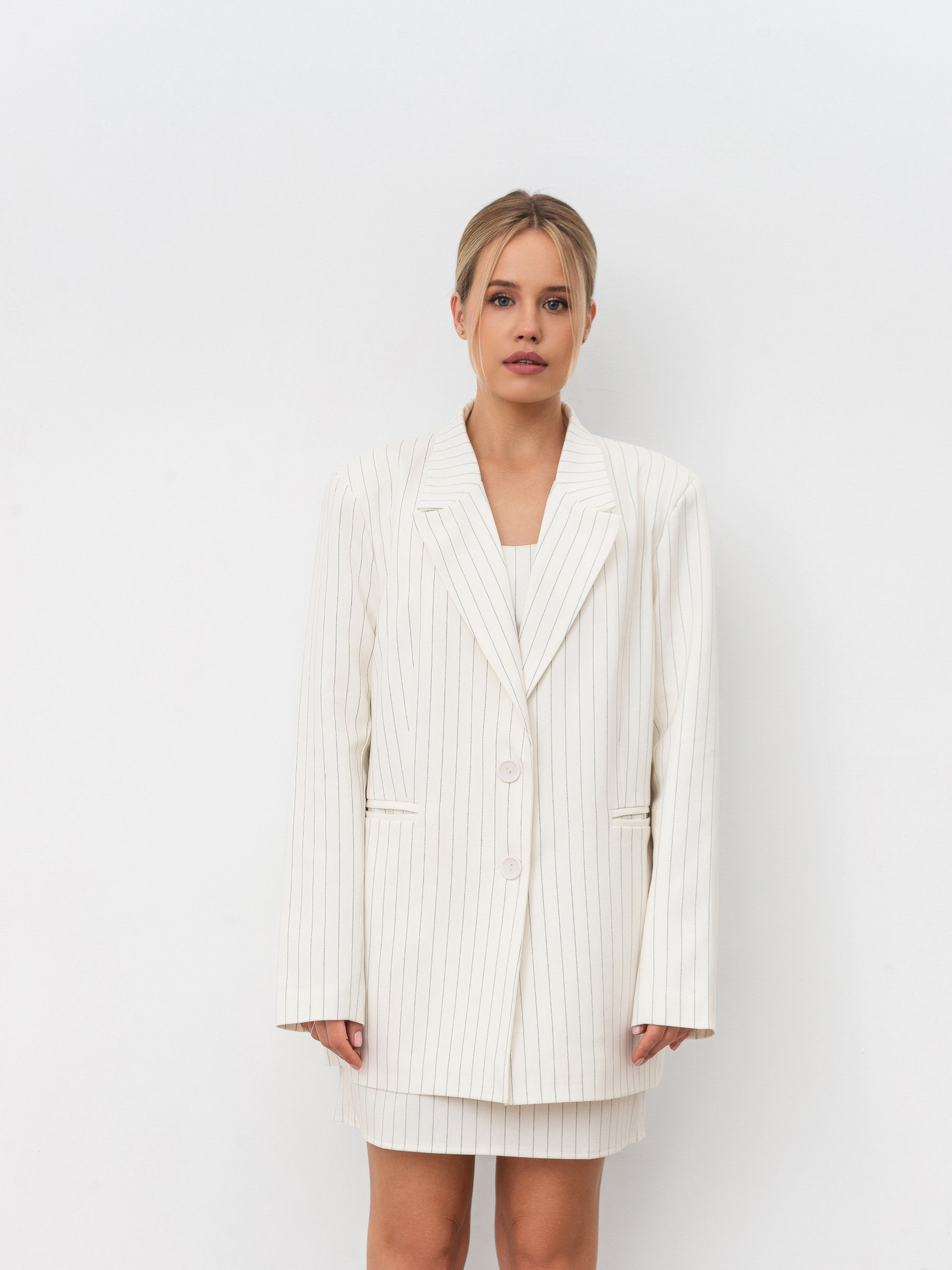 Подовжений однобортний піджак зі щільної костюмної тканини. Усередині підкладка. Є кишеньки та підплічники. Ґудзики на манжетах. У комплект можна скомбінувати міді спідницю, штани або ж спідницю-шорти з цього матеріалу. ЗАМІРИ Xs-S Довжина по спині : 75 см Довжина рукава : 63 см Напівобхват грудей : 47 см Плечі : 44 см Напівобхват талії : 45 см S-M Довжина по спині : 76 см Довжина рукава : 63 см Напівобхват грудей : 49 см Плечі : 45 см Напівобхват талії : 48 см M-L Довжина по спині : 76 см Довжина рукава : 63 см Напівобхват грудей : 50 см Плечі : 47 см Напівобхват талії : 51 см