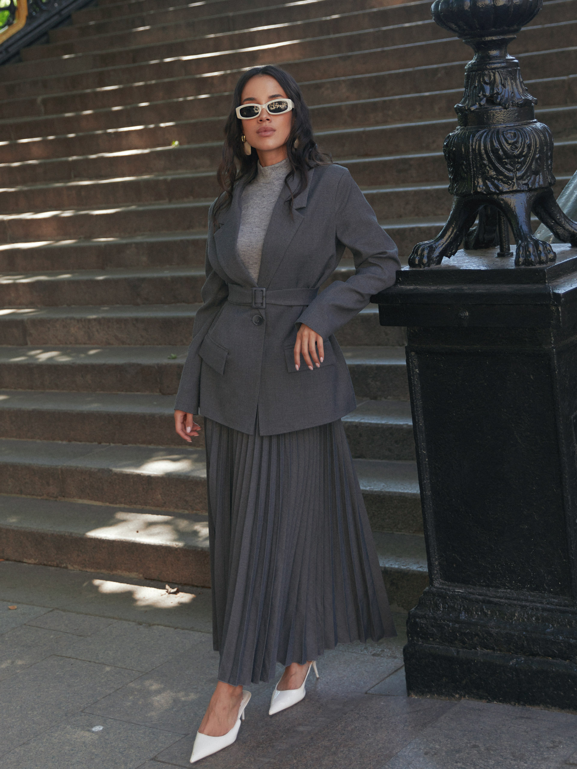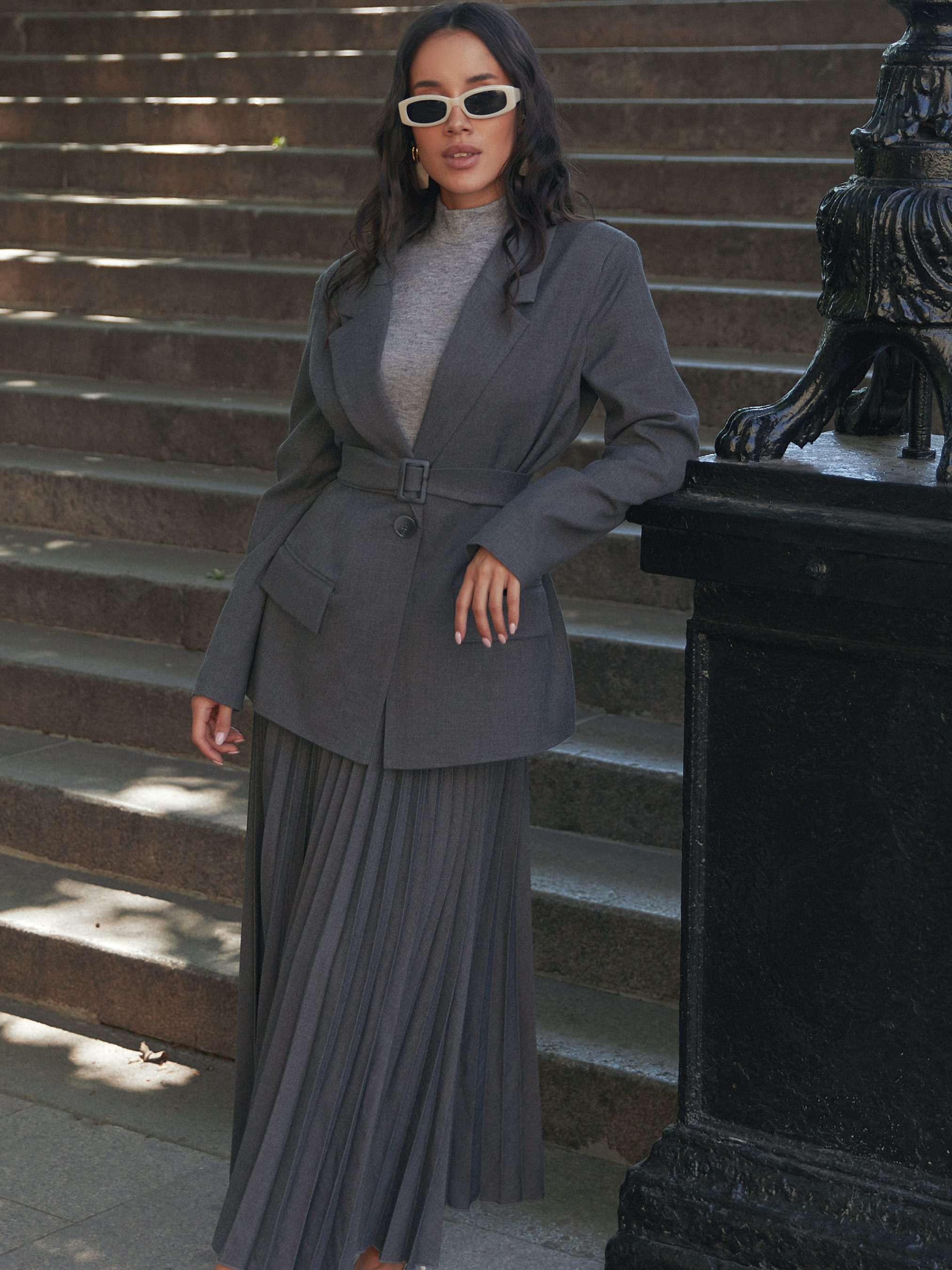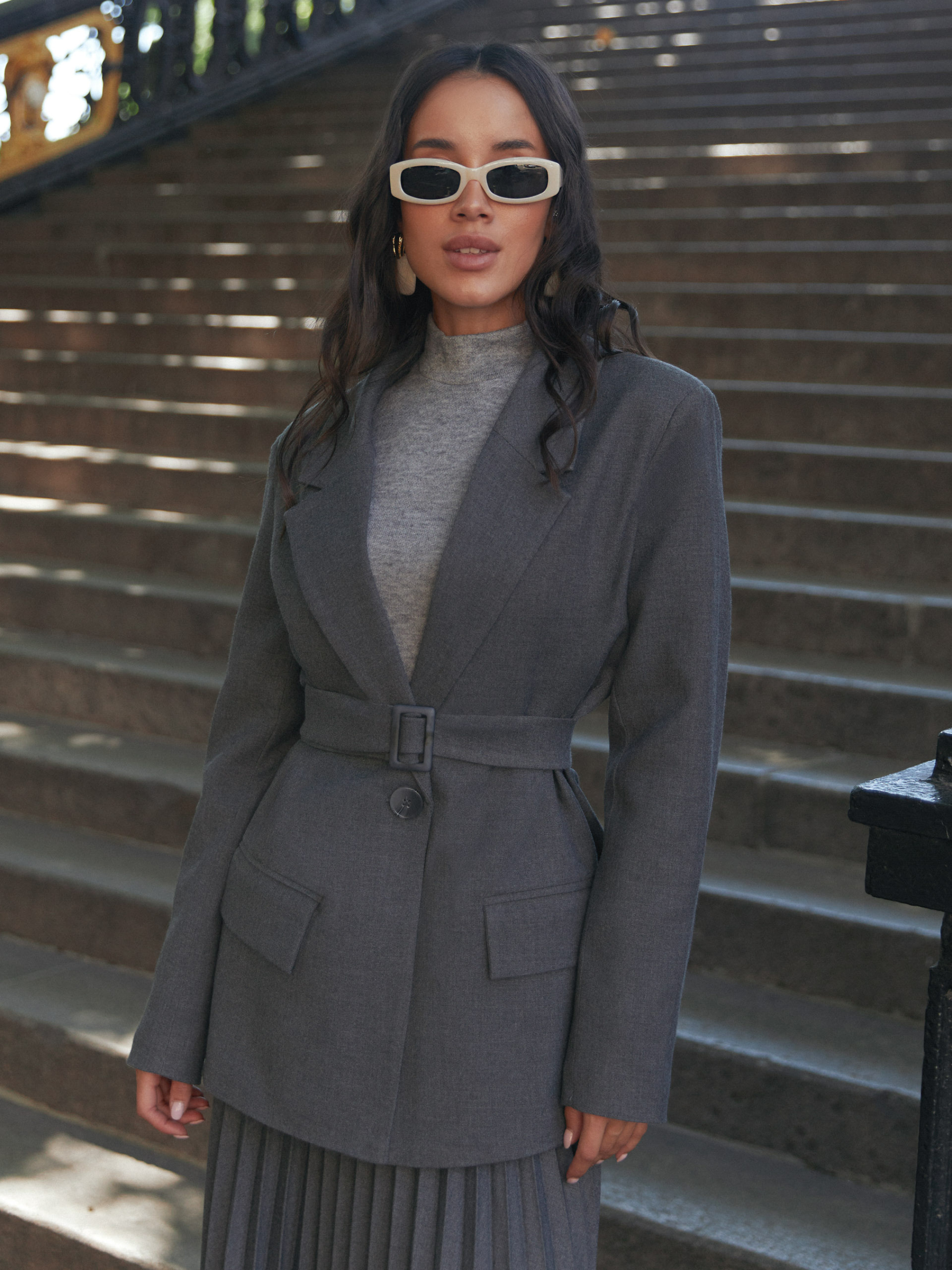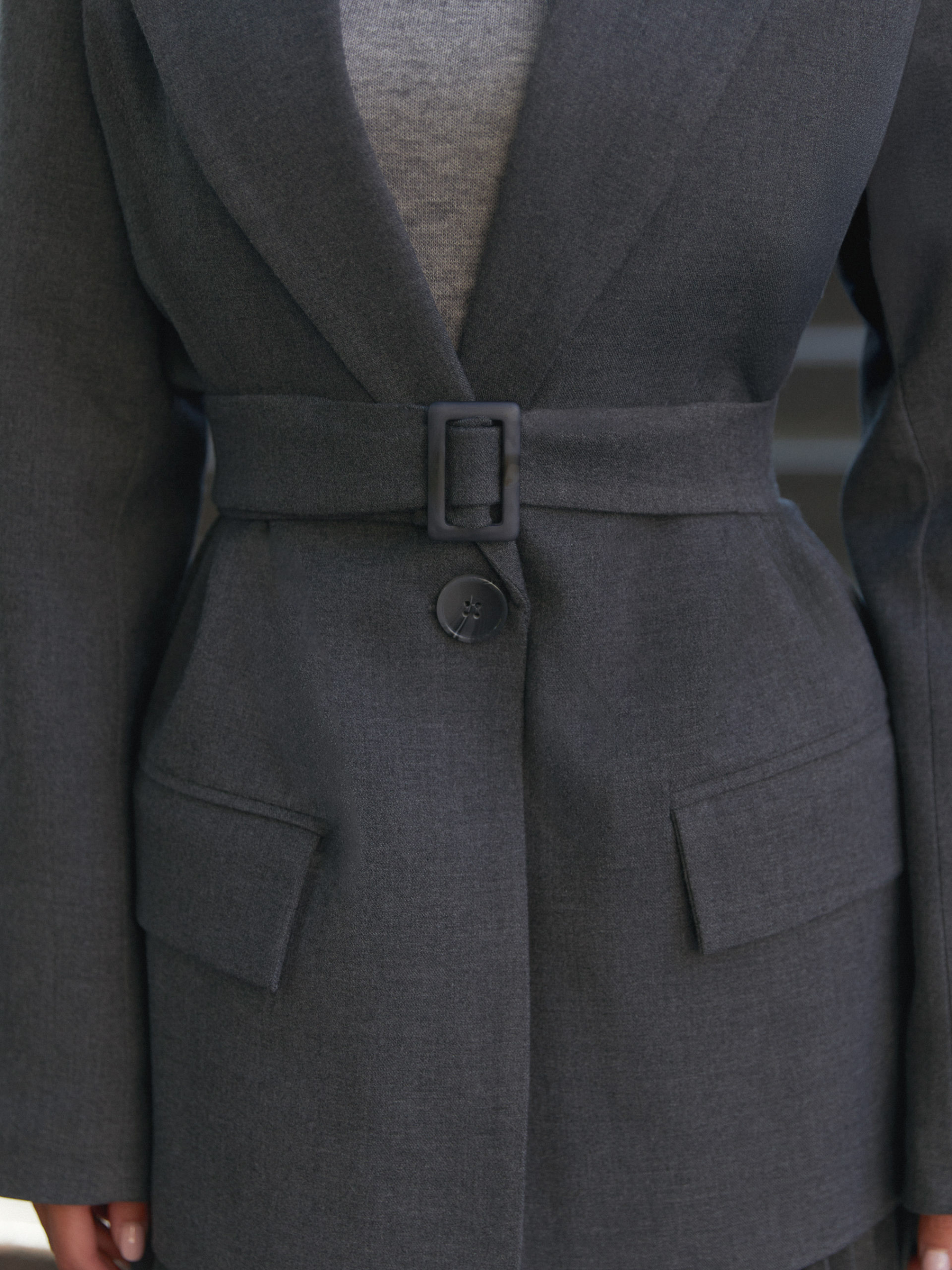 Фасон Піджак має класичний двобортний крій із лацканами-коміром. Прямий, трохи вільний силует, який дозволяє поєднувати з різними образами. Кишені з клапанами додають практичності, внутрішня підкладка допомагає краще тримати форму. Матеріал Костюмна італійська тканина — структура щільна, що тримає форму, має презентабельний вигляд, приємна на дотик. Матеріал дозволяє виглядати елегантно та зберігати комфорт протягом дня. Догляд Рекомендується ручне прання при температурі до 30 °C. Не використовувати відбілювачі. Уникати машинного сушіння. Прасувати при низьких температурах, з вивороту, щоб зберегти тканину і всі декоративні елементи. Розмірна сітка Довжина виробу: S-M — 75 см; L-XL — 77 см; XXL-3XL — 78 см Довжина рукава: S-M — 62 см; L-XL — 63 см; XXL-3XL — 64 см S-M: обхват грудей 84-88 см, талії 68-72 см, стегон 92-96 см L-XL: обхват грудей 92-96 см, талії 76-81 см, стегон 100-105 см 2XL-3XL: обхват грудей 100-105 см, талії 86-91 см, стегон 110-115 см