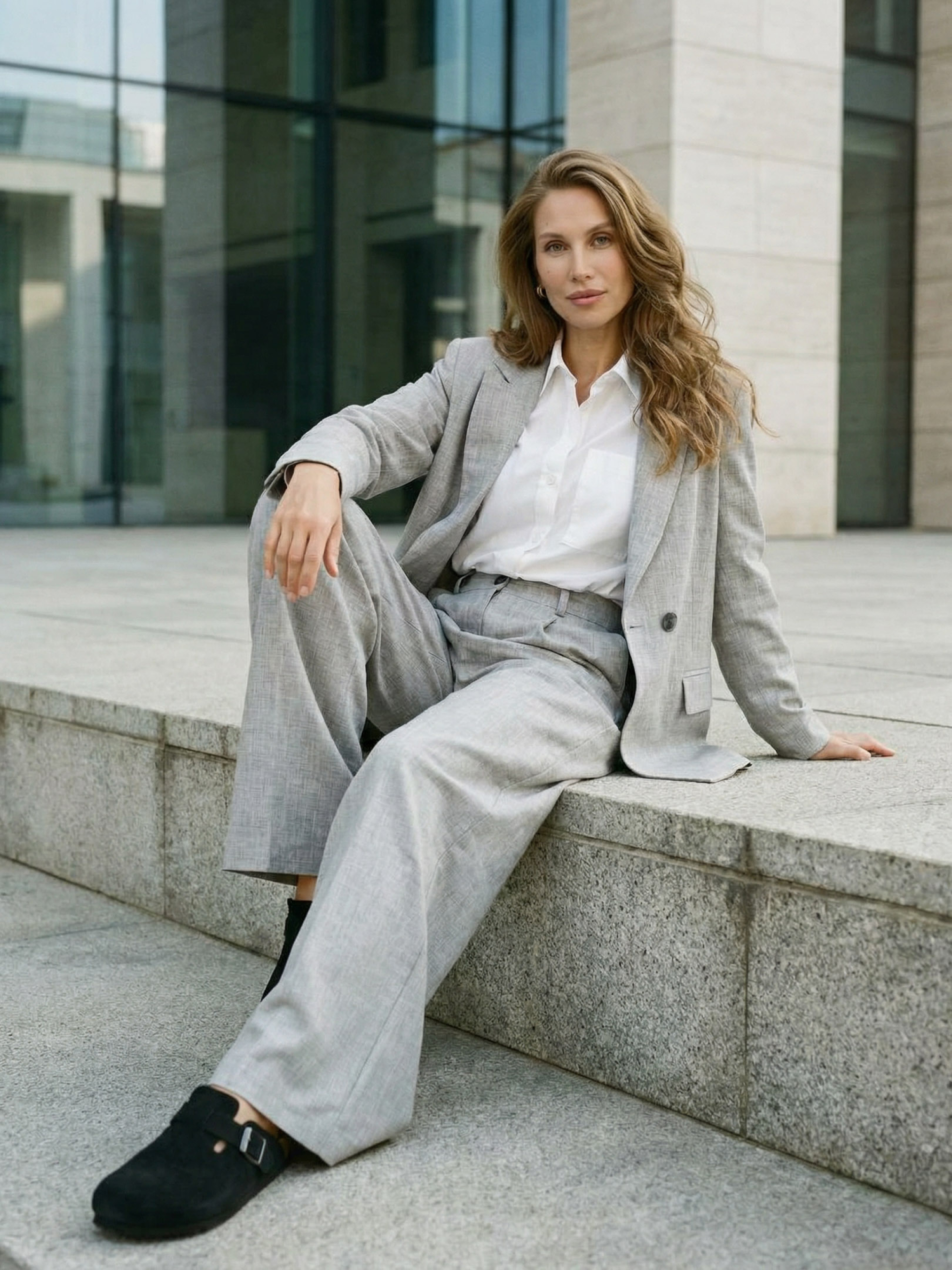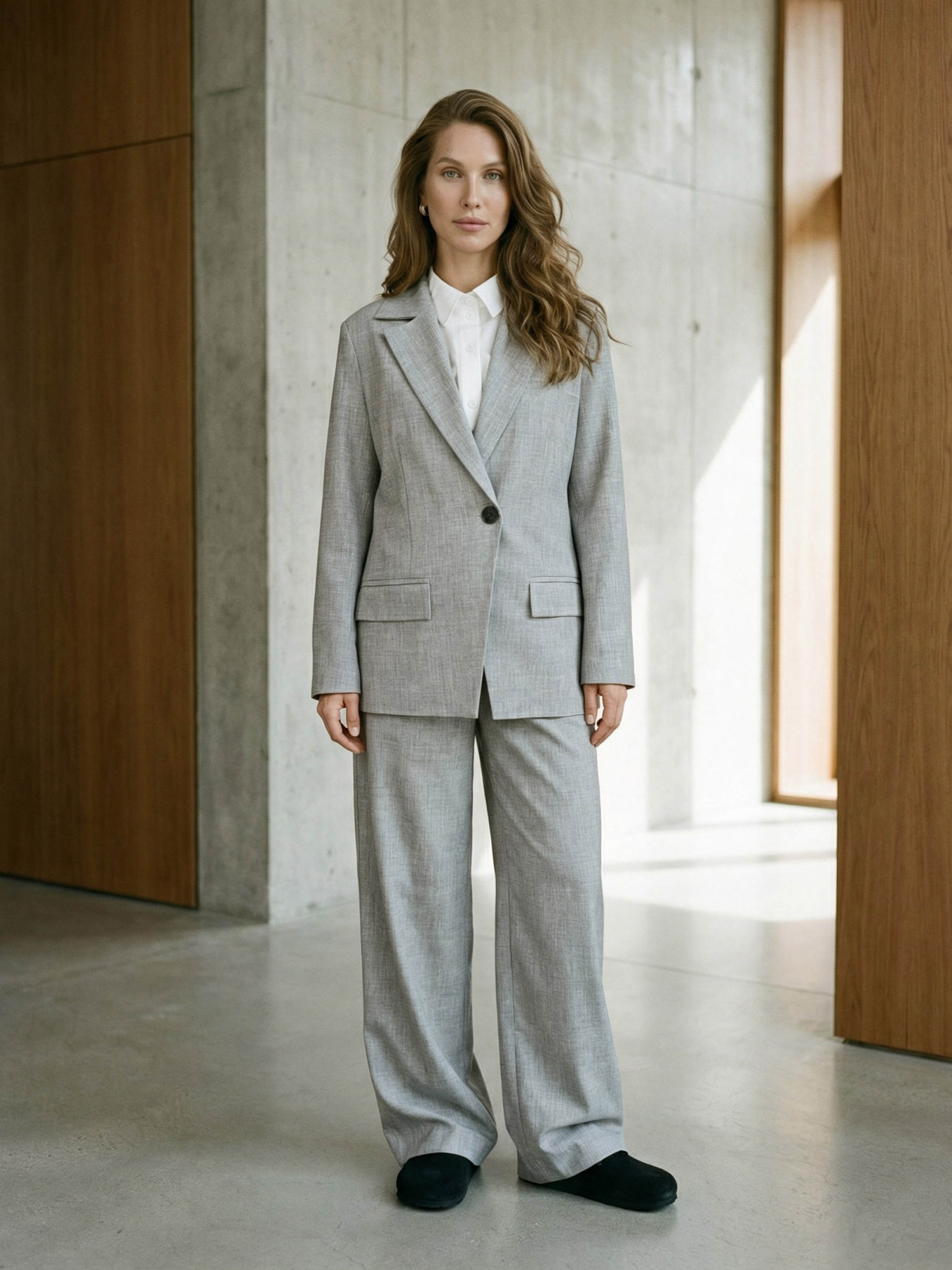 Жіночий класичний піджак з італійської костюмної тканини — універсальна модель для створення елегантних і сучасних образів. Якісний матеріал добре тримає форму, виглядає акуратно та забезпечує комфорт у носінні. Модель виконана у прямому напівприталеному фасоні, що підкреслює силует і водночас залишає свободу рухів. Піджак застібається на ґудзики, має виточки на виробі для кращої посадки та класичний відкладений комір. Функціональні кишені рамка додають виробу елегантності та практичності. Модель ідеально підходить для демісезонного гардеробу та легко поєднується зі штанами, спідницями або джинсами. S-M: Обхват грудей: 84-88 см; Обхват талії: 68-72 см; Обхват стегон: 92-96 см. L-XL: Обхват грудей: 92-96 см; Обхват талії: 76-81 см; Обхват стегон: 100-105 см. 2XL-3XL: Обхват грудей: 100-105 см; Обхват талії: 86-91 см; Обхват стегон: 110-115 см. Характеристики Колекція Pre-spring 26 Матеріал італійська костюмка Колір світло-сірий Фурнітура гудзики Фасон прямий, напівприталий. Сезон демісезон Декоративні елементи кишені рамка Конструктивні елементи виточення на виробі, комір відкладений Комплектація піджак Догляд за одягом ручне прання до 30°
