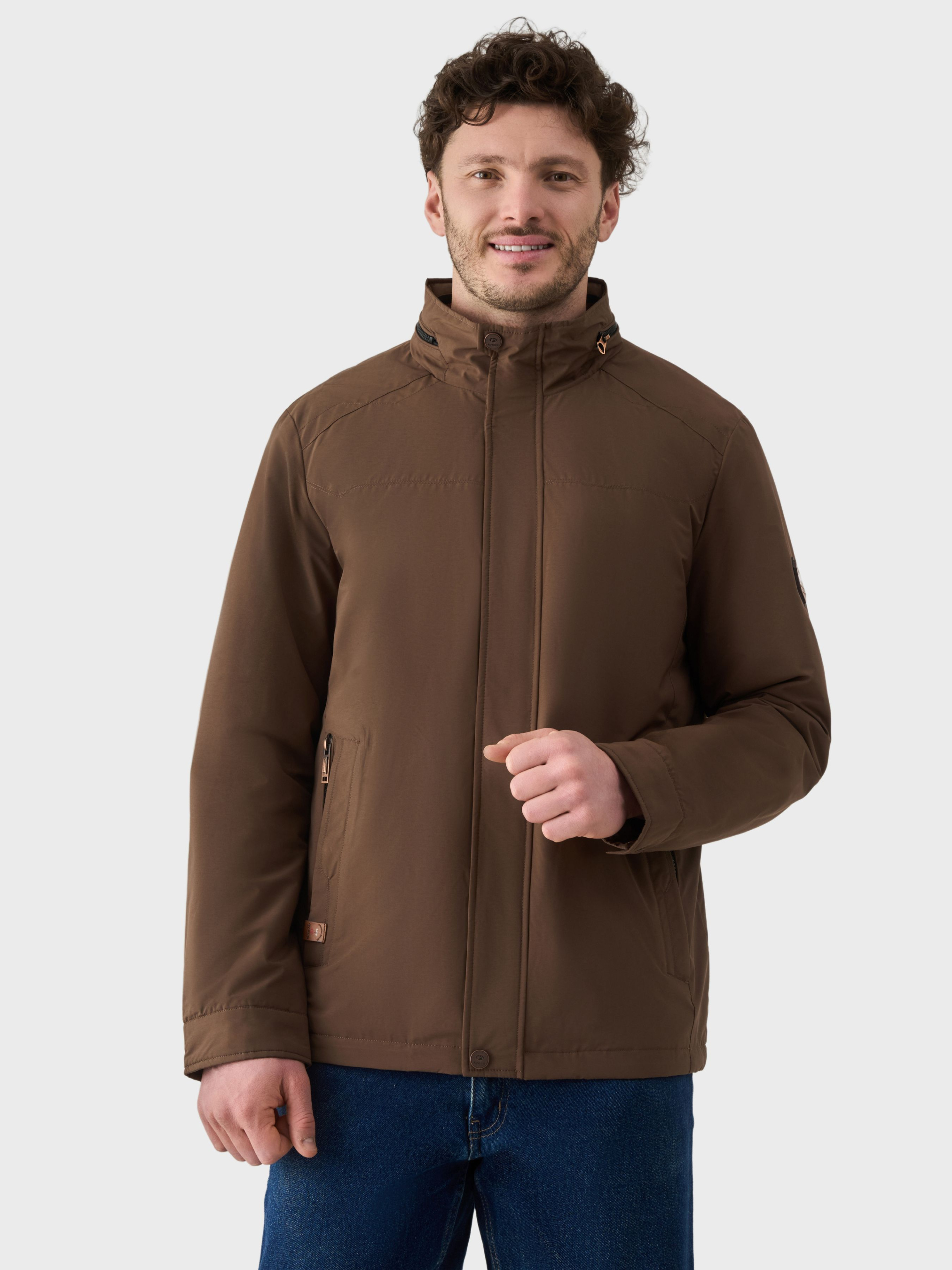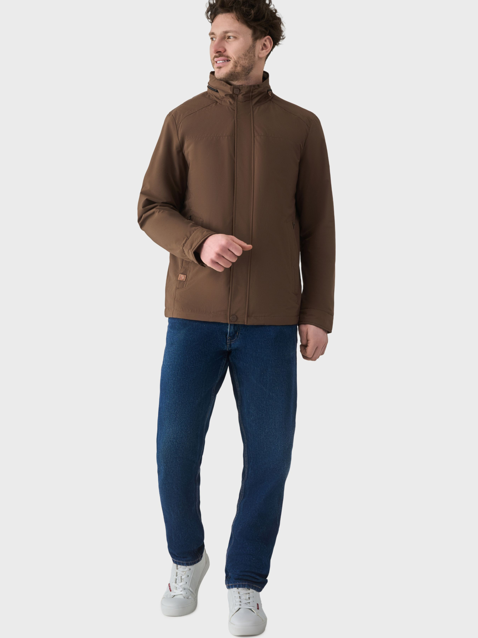 Коричнева демісезонна куртка AVECS створена для захисту від негоди та комфортного носіння в умовах мінливої погоди. Модель поєднує сучасні технологічні матеріали, практичний дизайн і продуману конструкцію, що робить її надійним вибором для міського ритму, подорожей і щоденного використання. Верх куртки виконаний зі 100% поліестеру — міцного та зносостійкого матеріалу, який ефективно захищає від вітру та вологи. Водонепроникна мембрана перешкоджає проникненню вологи всередину виробу, водночас сприяючи відведенню надлишкового тепла, забезпечуючи стабільний комфорт під час активного руху. Утеплювач із поліестеру допомагає зберігати тепло та підтримує комфортну температуру тіла без перегріву, що робить модель зручною для демісезонного використання. Підкладка зі 100% бавовни забезпечує приємні тактильні відчуття, покращує комфорт під час носіння та сприяє природному повітрообміну. Система Climate control допомагає підтримувати збалансований мікроклімат усередині куртки, поєднуючи захист від холоду з ефективною вентиляцією. Внутрішній знімний капюшон на липучках додає універсальності та дозволяє адаптувати куртку до погодних умов. Комір-стійка підсилює захист від вітру, а ергономічні шви забезпечують зручну посадку та свободу рухів. Куртка оснащена подвійними зовнішніми кишенями та двома внутрішніми кишенями для зручного зберігання необхідних речей. Манжети на кнопках дозволяють регулювати посадку рукавів, а система утягування низу виробу забезпечує додаткову фіксацію та захист від холоду. Фурнітура RBR підкреслює надійність і якість виконання. Коричнева демісезонна куртка AVECS — це поєднання технологічності, комфорту та лаконічної естетики для активного повсякденного життя. Особливості: -Водонепроникна мембрана -Захист від вітру -Система "Climate control" -Комір-стійка -Знімний капюшон на липучках, прихований у комір -Подвійні зовнішні кишені -Дві внутрішні кишені -Ергономічні шви -Манжети на кнопках -Система утягування низу виробу -Фурнітура RBR Склад: -Верхня тканина: Поліестер 100% -Наповнювач утеплювач: Поліестер 100% -Підклад: Бавовна 100%
