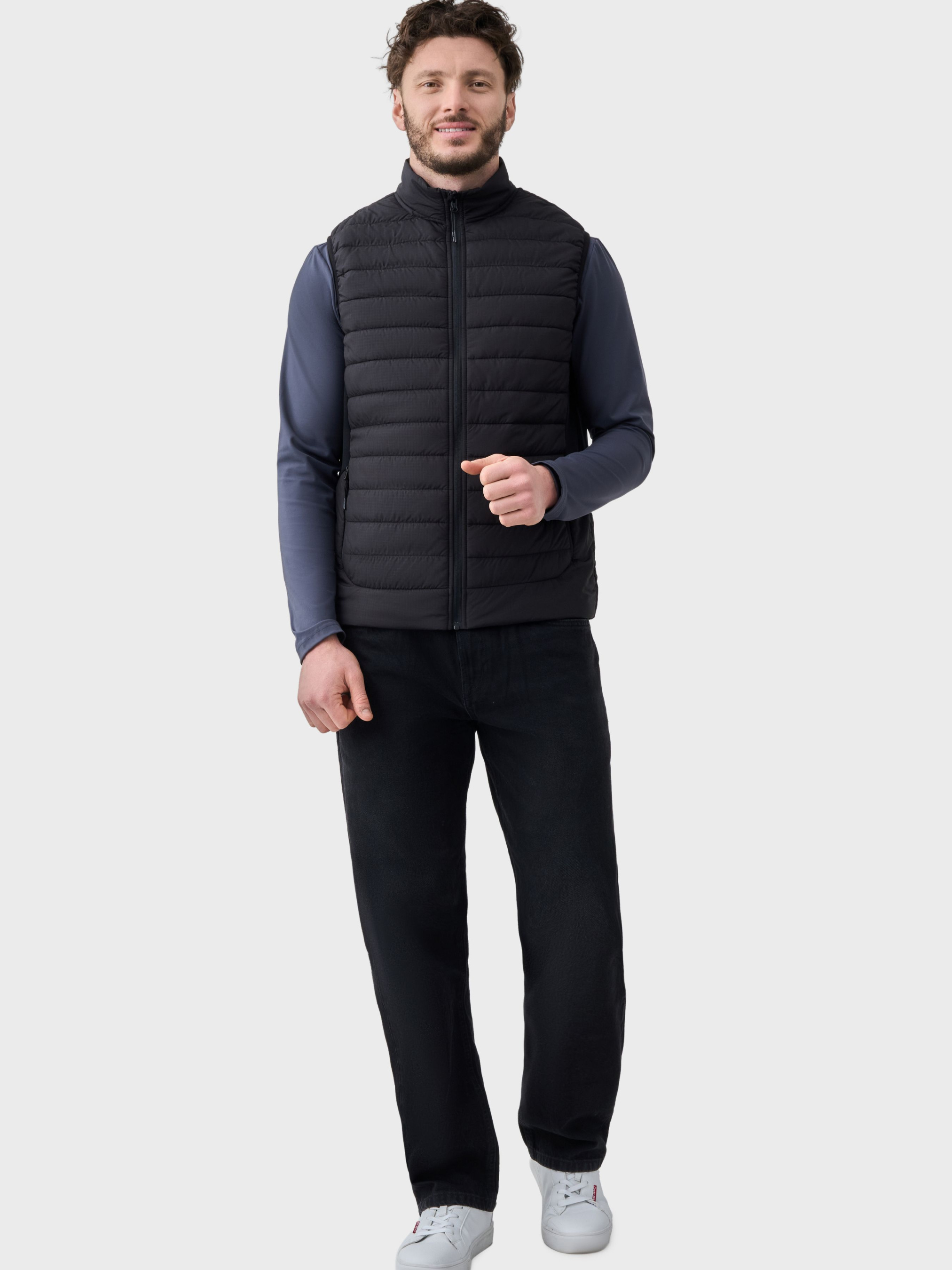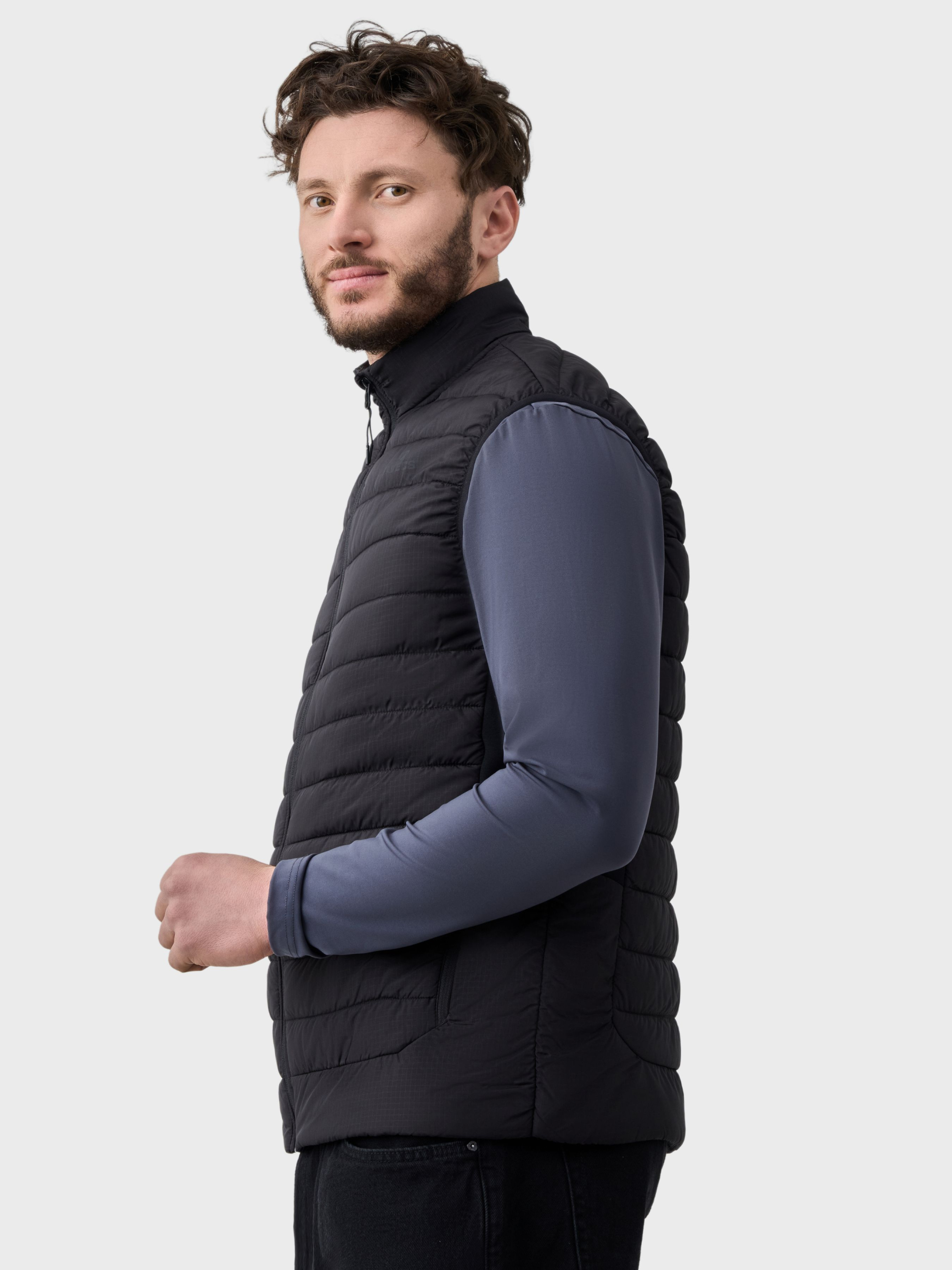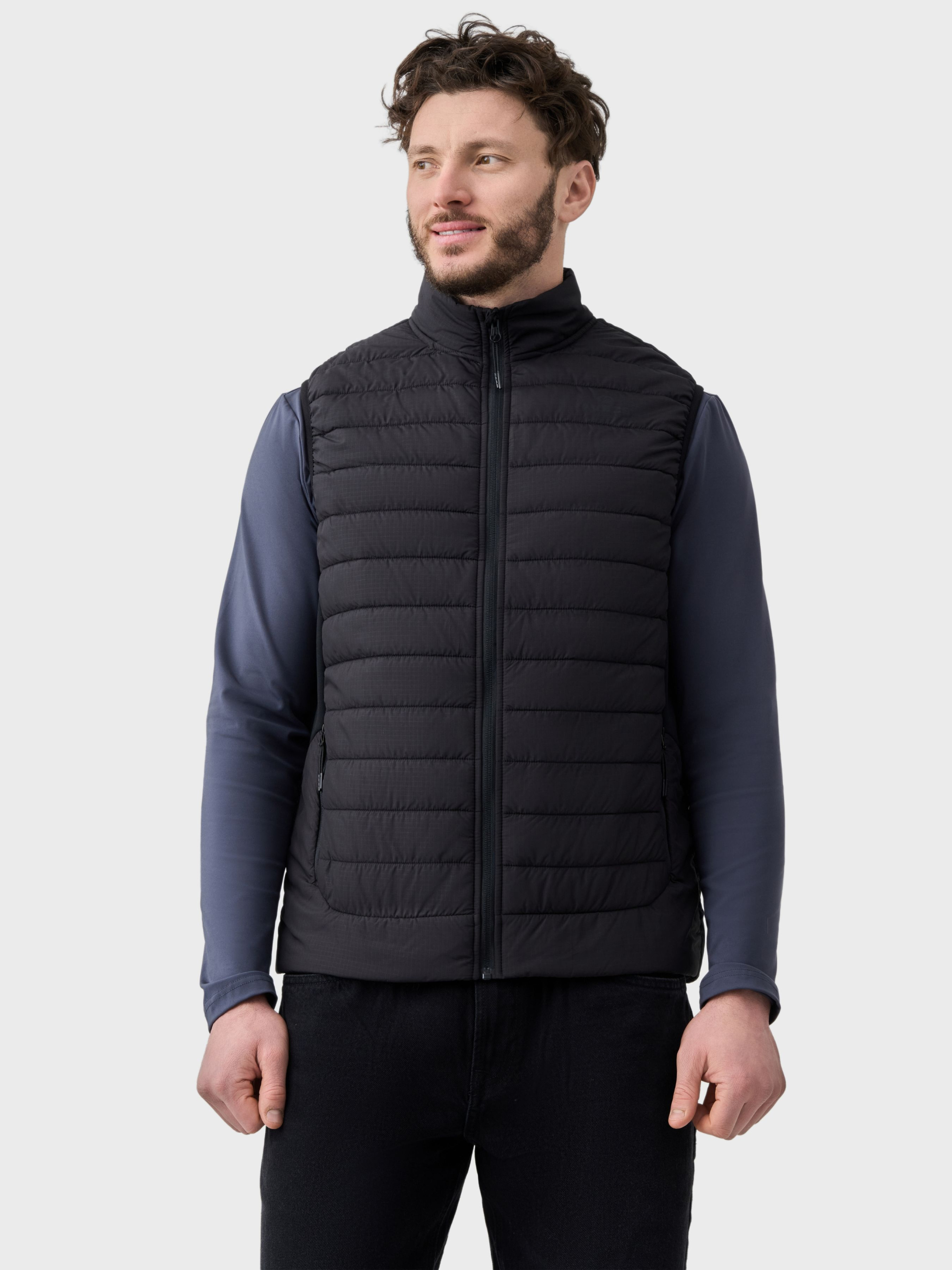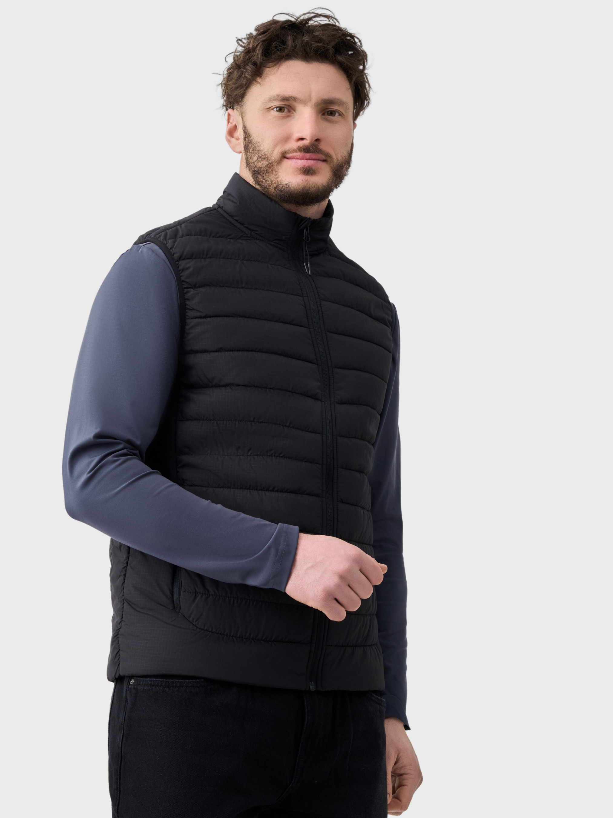 Чоловічий жилет AVECS створений для комфортного щоденного використання, тренувань і занять спортом. Модель поєднує сучасний дизайн, еластичний матеріал і продуману посадку, що забезпечує свободу рухів та підтримку під час будь-якої активності. Верхня тканина та наповнювач виконані з поліестеру, передбачений тонкий утеплювач для легкого тепла та комфорту. Тканина добре тягнеться, щільно прилягає до тіла, не обмежує рухів і зберігає форму навіть після тривалого носіння. Матеріал швидко відводить вологу, дозволяє шкірі дихати та забезпечує комфорт під час інтенсивних навантажень. Модель має комір-стійку, що захищає від вітру, а також трикотажні вставки з боків для зручної посадки та свободи рухів. Ідеальний вибір для міжсезоння та щоденного носіння. Жилет оснащений двома боковими кишенями на блискавці, які надійно фіксують особисті речі та зберігають охайний вигляд під час руху. Дві внутрішні кишені додають зручності у використанні. Жилет добре тримає форму, зберігає акуратний вигляд і легко поєднується з футболками, майками чи худі. Ідеальний вибір для тренувань, прогулянок і повсякденного міського ритму. Особливості: -Тканина Rip Stop -Тонкий утеплювач -Стьобаний крій -Комір-стійка -Дві бокові кишені захищені блискавками -Дві внутрішні кишені -Трикотажні вставки по боках Склад: Поліестер 100%.