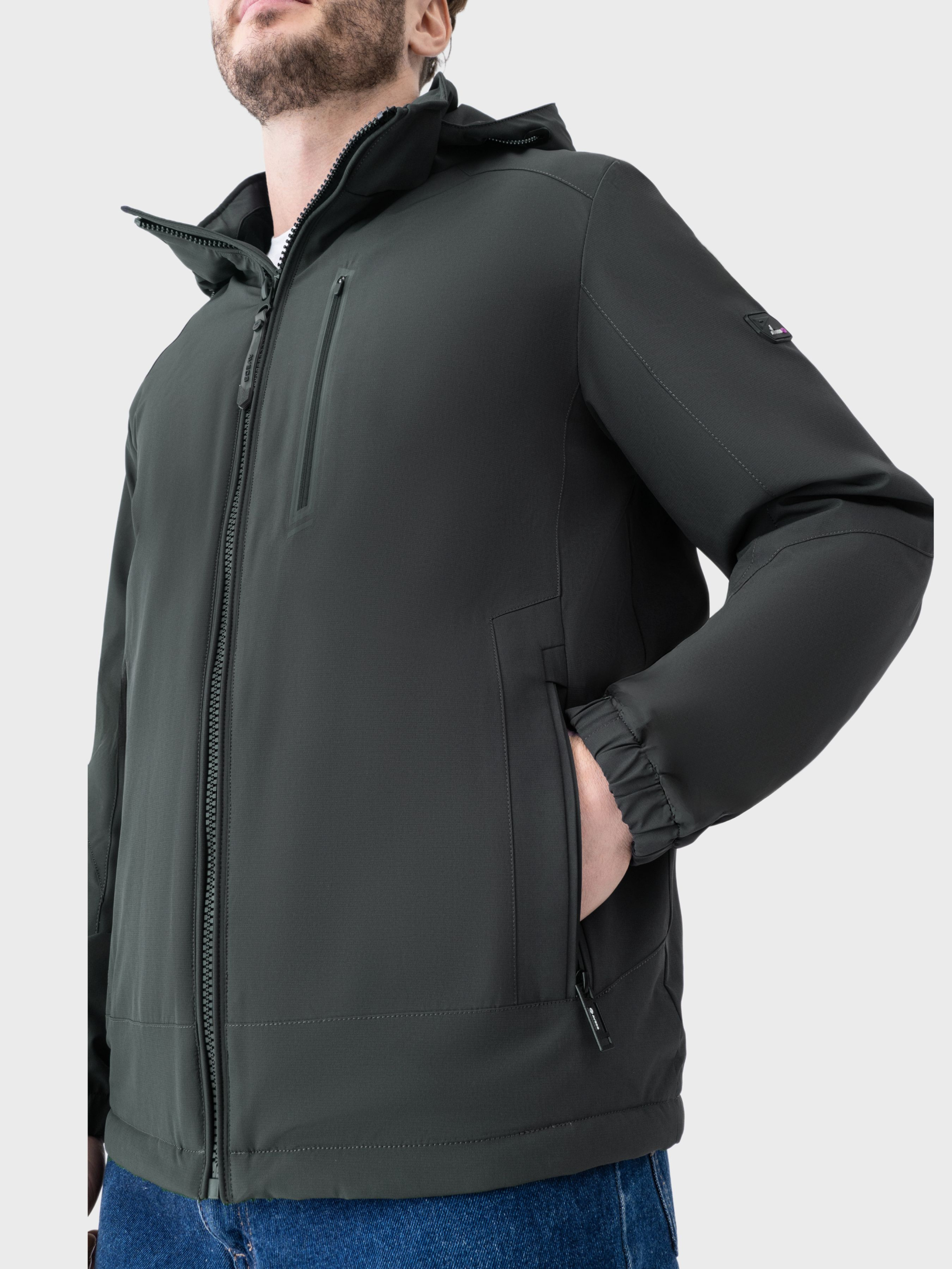 Зелена куртка AVECS з водонепроникною мембраною створена для комфортного повсякденного носіння та захисту від мінливих погодних умов у міському середовищі. Модель поєднує функціональність, сучасний дизайн і продуману ергономіку, що робить її практичним вибором для активного ритму життя. Верх куртки виконаний з еластичного матеріалу на основі поліестеру з додаванням спандексу, що забезпечує зносостійкість, комфортну посадку та свободу рухів. Водонепроникна мембрана ефективно блокує проникнення вологи й холодного повітря, водночас зберігаючи повітропроникність для стабільного комфорту протягом дня. Тканина добре адаптується до рухів тіла, зберігає форму та підходить для регулярного використання. Утеплювач зі 100% поліестеру сприяє підтриманню комфортної температури тіла та забезпечує оптимальний рівень тепла без перегріву, що робить модель зручною для демісезонного використання. Захист від вітру в поєднанні з утеплювачем дозволяє зберігати тепло навіть під час різких змін погоди. Підкладка з поєднання поліестеру та спандексу забезпечує м’якість, еластичність і комфортні відчуття під час носіння, а також підвищує практичність і зручність у догляді. Система Climate control допомагає підтримувати збалансований мікроклімат, запобігаючи перегріву під час активного руху. Знімний капюшон із прихованою системою регулювання об’єму дозволяє легко налаштувати посадку відповідно до погодних умов. Манжети на резинках забезпечують щільне прилягання та додатковий захист від вітру. Модель оснащена нагрудною кишенею з водонепроникною блискавкою, а також стилізованою зовнішньою кишенею з ергономічним швом, логотипом і дизайнерськими елементами. Водонепроникні змійки на кишенях підвищують практичність у дощову погоду. Дві внутрішні кишені на блискавках дозволяють безпечно зберігати особисті речі. Ергономічні шви на спинці підсилюють зручність і формують охайний силует, а фурнітура RBR підкреслює надійність і якість виконання. Зелена куртка AVECS — це поєднання функціональності, продуманих деталей і сучасної естетики для щоденного використання. Особливості: -Водонепроникна мембрана -Захист від вітру -Система "Climate control" -Знімний капюшон із прихованою системою регулювання -Манжети на резинках -Нагрудна кишеня з водонепроникною блискавкою -Стилізована зовнішня кишеня з ергономічним швом і логотипом -Водонепроникні блискавки на кишенях -Дизайнерська наліпка на рукаві -Ергономічні шви на спині -Дві внутрішні кишені на блискавках -Система регулювання об’єму низу виробу -Фурнітура RBR Склад: -Верхня тканина: Поліестер 94% Спандекс 6% -Наповнювач утеплювач: Поліестер 100% -Підклад : Поліестер 95% Спандекс 5%.