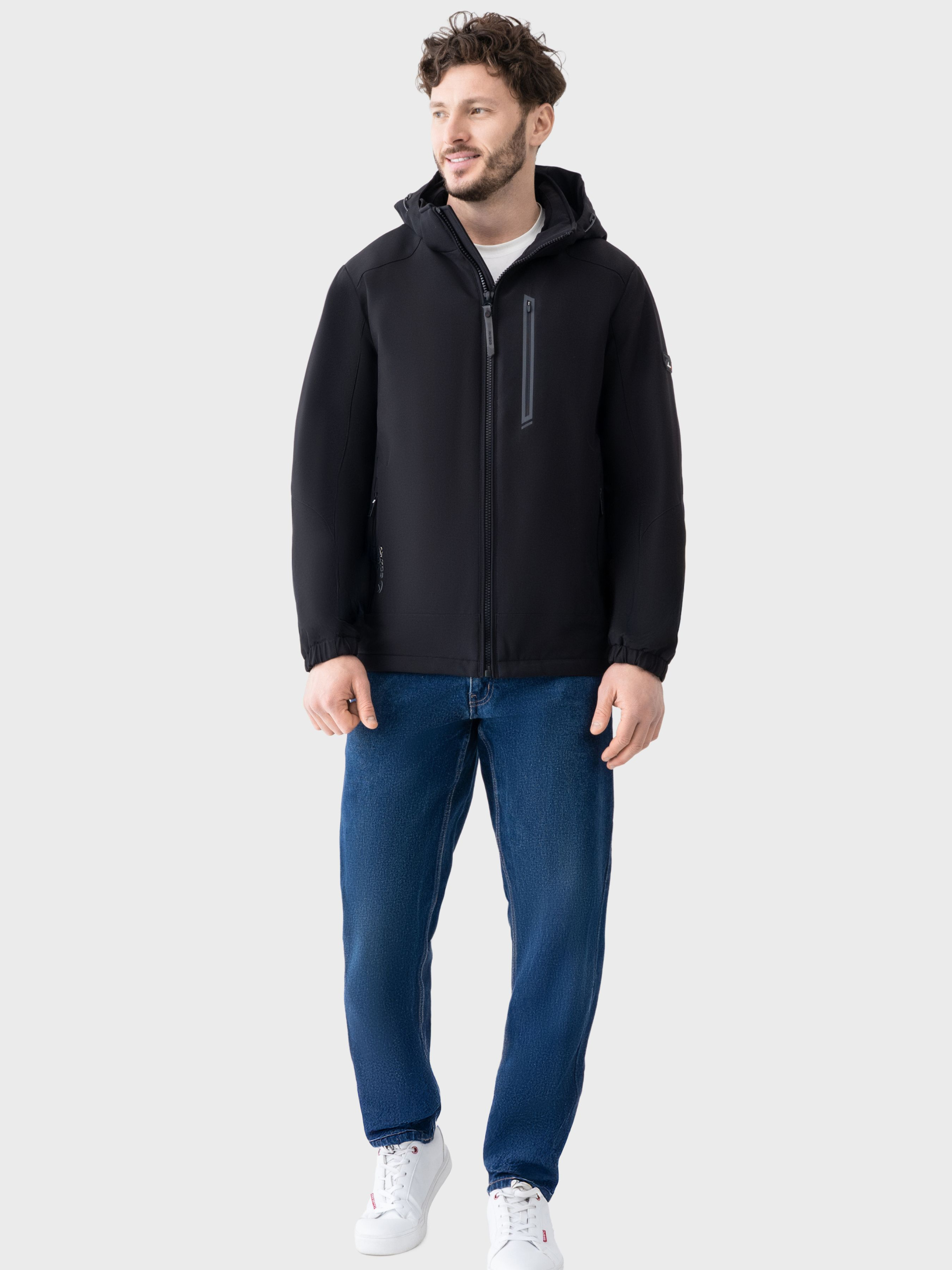 Чорна куртка AVECS з водонепроникною мембраною створена для комфортного повсякденного носіння та захисту від мінливих погодних умов у міському середовищі. Модель поєднує функціональність, сучасний дизайн і продуману ергономіку, що робить її практичним вибором для активного ритму життя. Верх куртки виконаний з еластичного матеріалу на основі поліестеру з додаванням спандексу, що забезпечує зносостійкість, комфортну посадку та свободу рухів. Водонепроникна мембрана ефективно блокує проникнення вологи й холодного повітря, водночас зберігаючи повітропроникність для стабільного комфорту протягом дня. Тканина добре адаптується до рухів тіла, зберігає форму та підходить для регулярного використання. Утеплювач зі 100% поліестеру сприяє підтриманню комфортної температури тіла та забезпечує оптимальний рівень тепла без перегріву, що робить модель зручною для демісезонного використання. Захист від вітру в поєднанні з утеплювачем дозволяє зберігати тепло навіть під час різких змін погоди. Підкладка з поєднання поліестеру та спандексу забезпечує м’якість, еластичність і комфортні відчуття під час носіння, а також підвищує практичність і зручність у догляді. Система Climate control допомагає підтримувати збалансований мікроклімат, запобігаючи перегріву під час активного руху. Знімний капюшон із прихованою системою регулювання об’єму дозволяє легко налаштувати посадку відповідно до погодних умов. Манжети на резинках забезпечують щільне прилягання та додатковий захист від вітру. Модель оснащена нагрудною кишенею з водонепроникною блискавкою, а також стилізованою зовнішньою кишенею з ергономічним швом, логотипом і дизайнерськими елементами. Водонепроникні змійки на кишенях підвищують практичність у дощову погоду. Дві внутрішні кишені на блискавках дозволяють безпечно зберігати особисті речі. Ергономічні шви на спинці підсилюють зручність і формують охайний силует, а фурнітура RBR підкреслює надійність і якість виконання. Чорна куртка AVECS — це поєднання функціональності, продуманих деталей і сучасної естетики для щоденного використання. Особливості: -Водонепроникна мембрана -Захист від вітру -Система "Climate control" -Знімний капюшон із прихованою системою регулювання -Манжети на резинках -Нагрудна кишеня з водонепроникною блискавкою -Стилізована зовнішня кишеня з ергономічним швом і логотипом -Водонепроникні блискавки на кишенях -Дизайнерська наліпка на рукаві -Ергономічні шви на спині -Дві внутрішні кишені на блискавках -Система регулювання об’єму низу виробу -Фурнітура RBR Склад: -Верхня тканина: Поліестер 94% Спандекс 6% -Наповнювач утеплювач: Поліестер 100% -Підклад : Поліестер 95% Спандекс 5%.