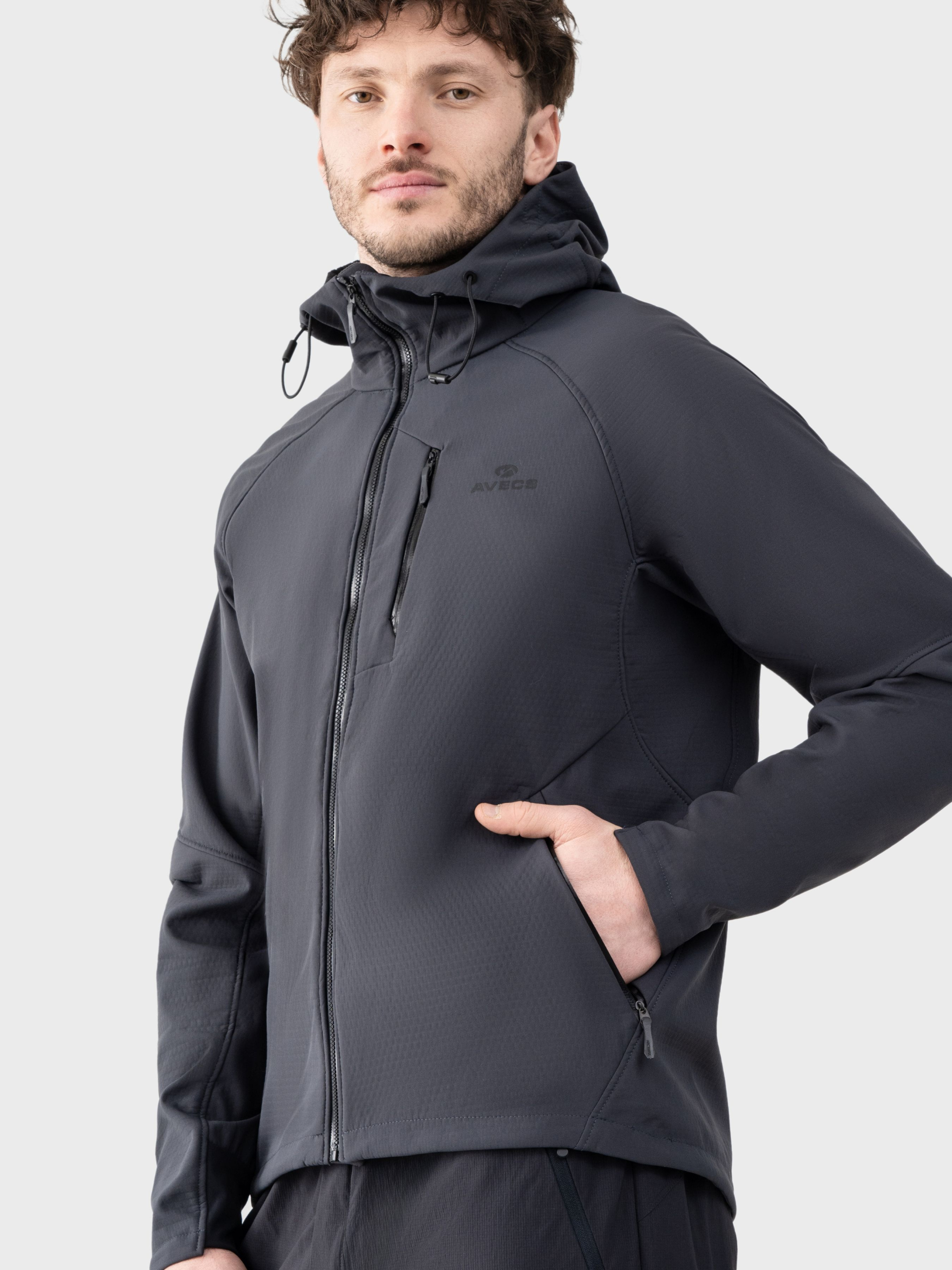 Сіра вітровка AVECS створена для захисту від вітру та дощу й комфортного носіння у прохолодну погоду. Модель поєднує функціональність, практичність і стриманий дизайн, що робить її зручним вибором для міського ритму, подорожей, прогулянок і занять спортом. Вітровка виконана з терморегуляційного матеріалу "Softshell", який допомагає підтримувати комфортний мікроклімат і зберігати тепло під час активності. Внутрішній флісовий шар забезпечує додаткове утеплення та комфорт під час носіння. Фактурна тканина додає моделі виразності та робить її універсальною для поєднання з джинсами або штанами спортивного крою. Продуманий крій не обмежує рухів і забезпечує зручність протягом дня. Капюшон із системою утягування дозволяє адаптувати посадку до погодних умов. Регулювання об’єму нижньої частини виробу за допомогою утяжок забезпечує надійну фіксацію. Нагрудна кишеня та зовнішні кишені з блискавками дають змогу безпечно зберігати необхідні речі. Фірмовий логотип підкреслює стиль бренду. Особливості: -Терморегуляційний матеріал "Soft-shell" -Фактурна тканина -Система регулювання об'єму нижньої частина задопомогою утяжок. -Нагрудна кишеня -Зовнішні кишені захищені блискавками -Фірмовий логотип -Система утягування на капюшоні Склад: поліестер 100%.
