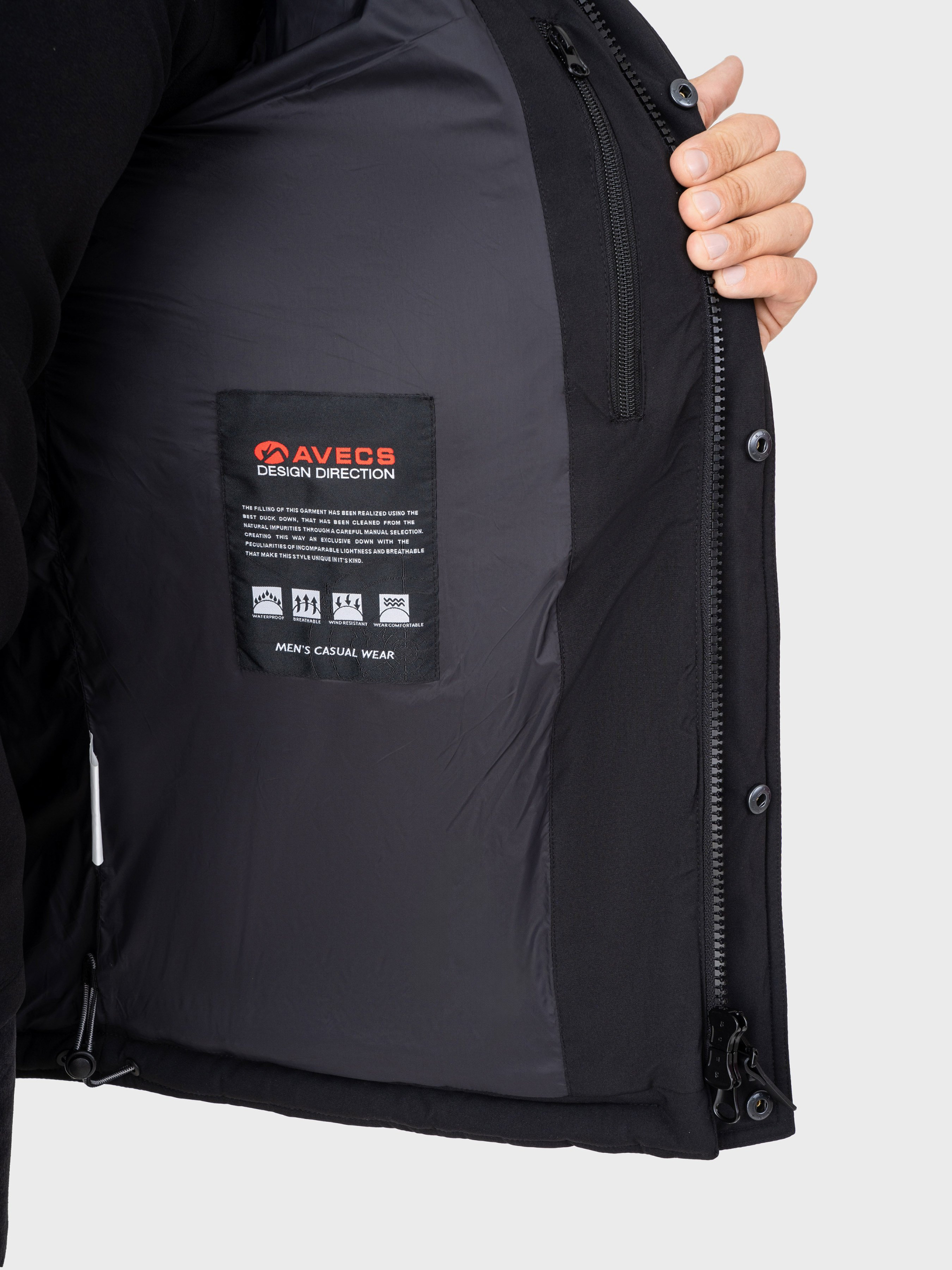 Куртка AVECS стане Вашим ідеальним супутником, завдяки інноваційним технологіям, використаним при виробництві. Наповнювач "Ізософт" забезпечить відмінну теплоізоляцію, зберігаючи тепло всередині виробу. Завдяки технології "WIND RESISTANT" та інноваційним матеріалам, Ви будете надійно захищені від вітру. Це дозволить зберігати оптимальну температуру тіла і запобігає відчуттю холоду. Виріб має відмінні водонепроникні властивості, що дозволяє захистити вас від дощу і вологи. "WEAR COMFORTABLE" має спеціальну конструкцію, яка надає неперевершений комфорт під час носіння. Технологія "BREATHABLE" забезпечує високий рівень "дихання" тканини, дозволяючи волозі та пару випаровуватися зсередини назовні. Це забезпечує комфортний мікроклімат Вашому тілу, не допускаючи перегрівання, або надмірного накопичення вологи. Легка вага, гнучкість тканини та добре пророблені шви роблять її ідеальним вибором для активного відпочинку і повсякденного використання. Капюшон можна легко зняти, або налаштувати його за допомогою системи утягування для ідеальної посадки й захисту від вітру та дощу. Комір покритий м'яким мікрофлісом, забезпечить Вам приємні тактильні відчуття і додатковий комфорт під час носіння. Також є спеціальна внутрішня кишеня, призначена для безпечного зберігання мобільного телефону, або інших цінних речей. Куртка від Avecs - Ваш ідеальний вибір для комфорту в будь-яку погоду! Підкорюйте вершини в спорті та житті разом з AVECS! Технічні характеристики: -Наповнювач-утеплювач "ІЗОСОФТ" -Технологія "WIND RESISTANT" -Технологія "WEAR COMFORTABLE" -Технологія "WATERPROOF" -Технологія "BREATHABLE" -Система вентиляції та відведення вологи на блискавках -Знімний капюшон регульований системою утягування -Об'єм манжета регулюється застібкою Velcro -Центральна блискавка -Система регулювання об'єму нижньої частини виробу за допомогою утягування -Оздоблення коміра мікрофлісом, що створює приємні тактильні відчуття -Внутрішня кишеня для мобільного телефону