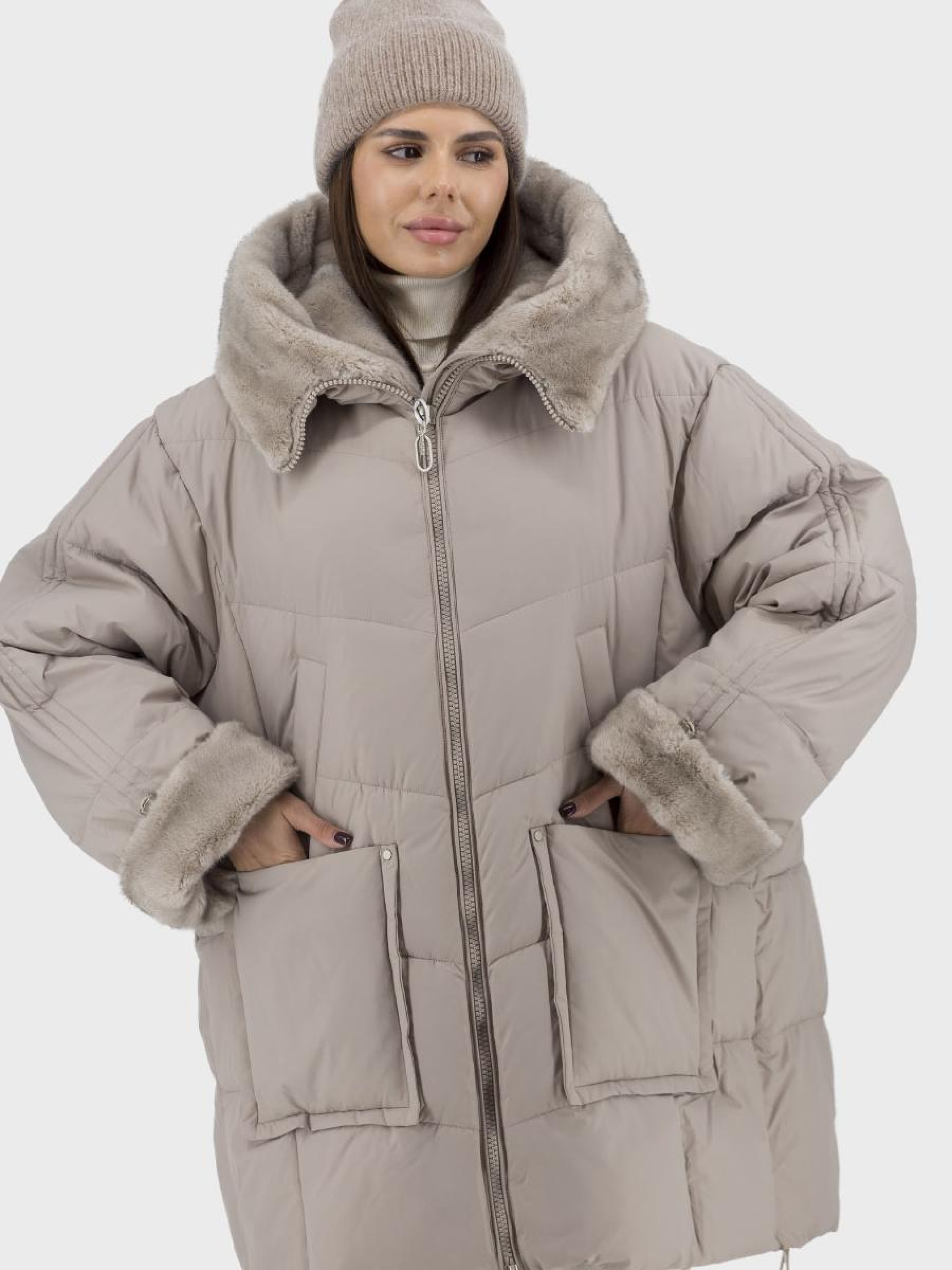 Онови свій зимовий гардероб з нашим стильним жіночим пуховиком у відтінку капучино. Цей легкий, але теплий пуховик з якісним утеплювачем біопух забезпечує максимальний комфорт у холодну пору року. Поліестерова підкладка додає зносостійкості, а незнімне та штучне хутро створює елегантний вигляд. Витончений силует "бочонок", стиль casual і однотонний дизайн роблять його ідеальним для відпочинку чи міських прогулянок. Знімний капюшон з коміром-стійкою забезпечує додатковий захист від вітру. Універсальні накладні кишені змусять тебе почуватися зручно, а застібка-блискавка гарантує швидке та легке застібання. Завітай до магазину, щоб протестувати цей елегантний пуховик і переконатись у його винятковій якості й стилі.