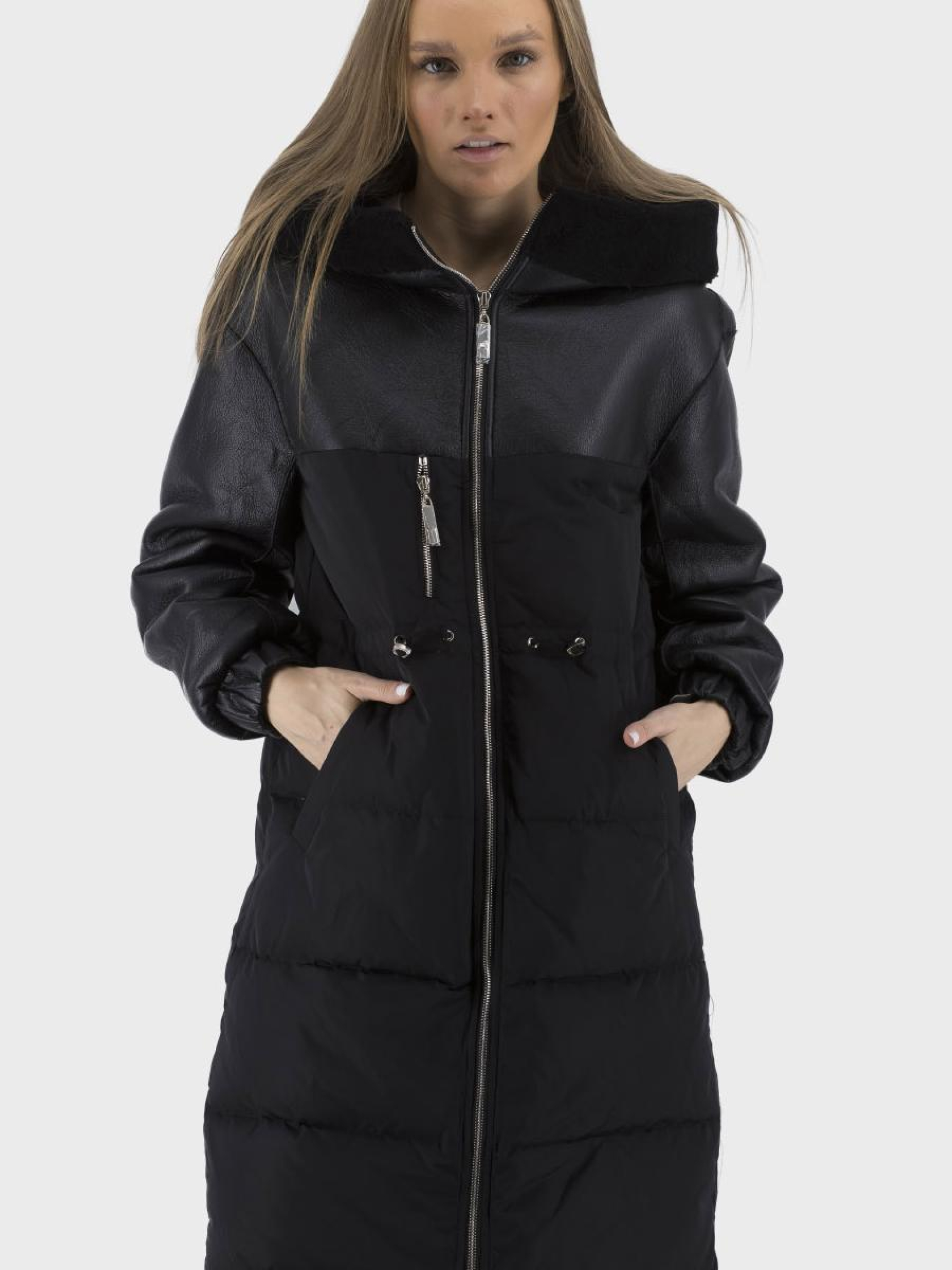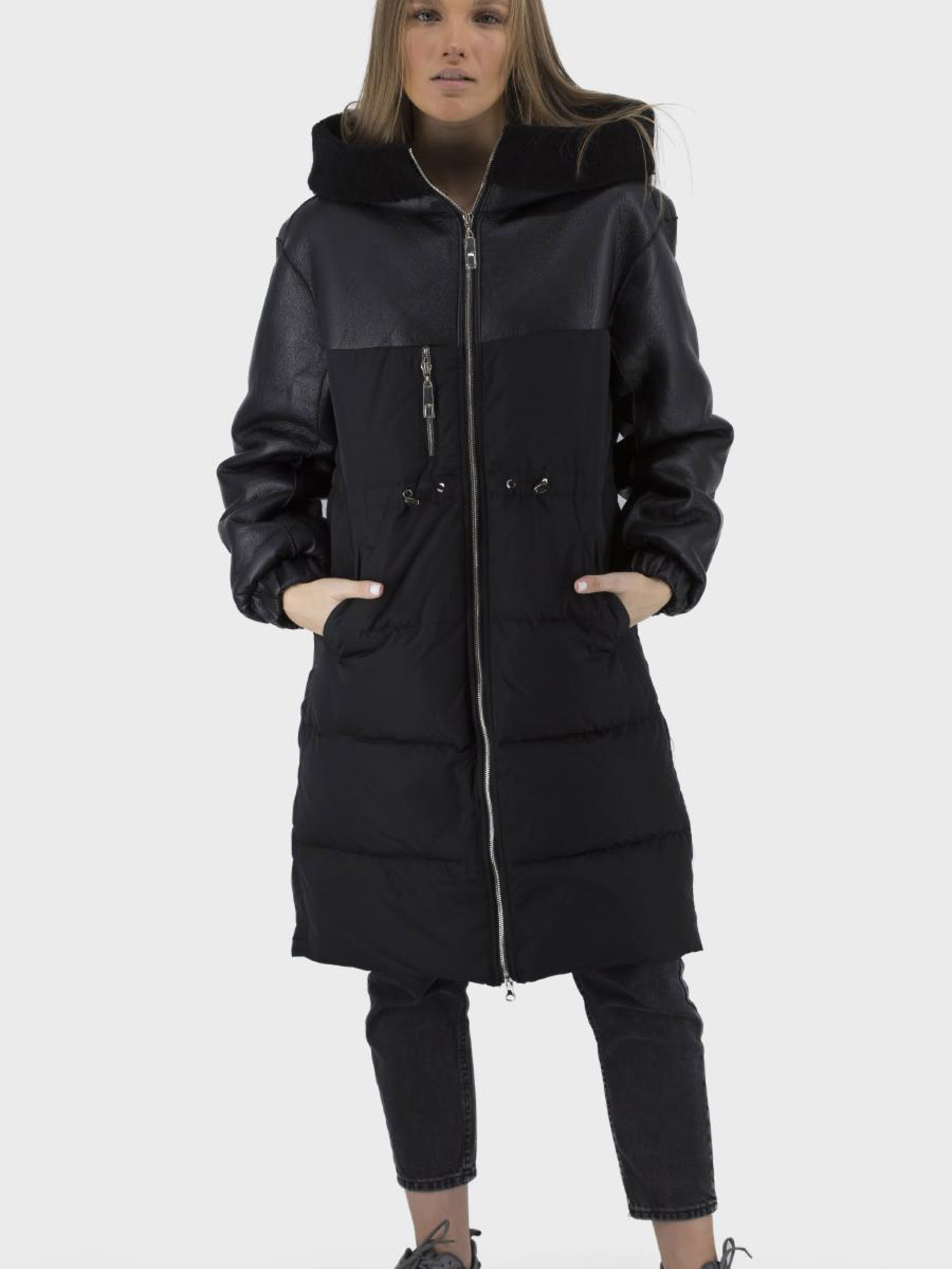 Деталі: комбінована тканина верху,стяжки,шкіряне оздоблення,хутряне оздоблення