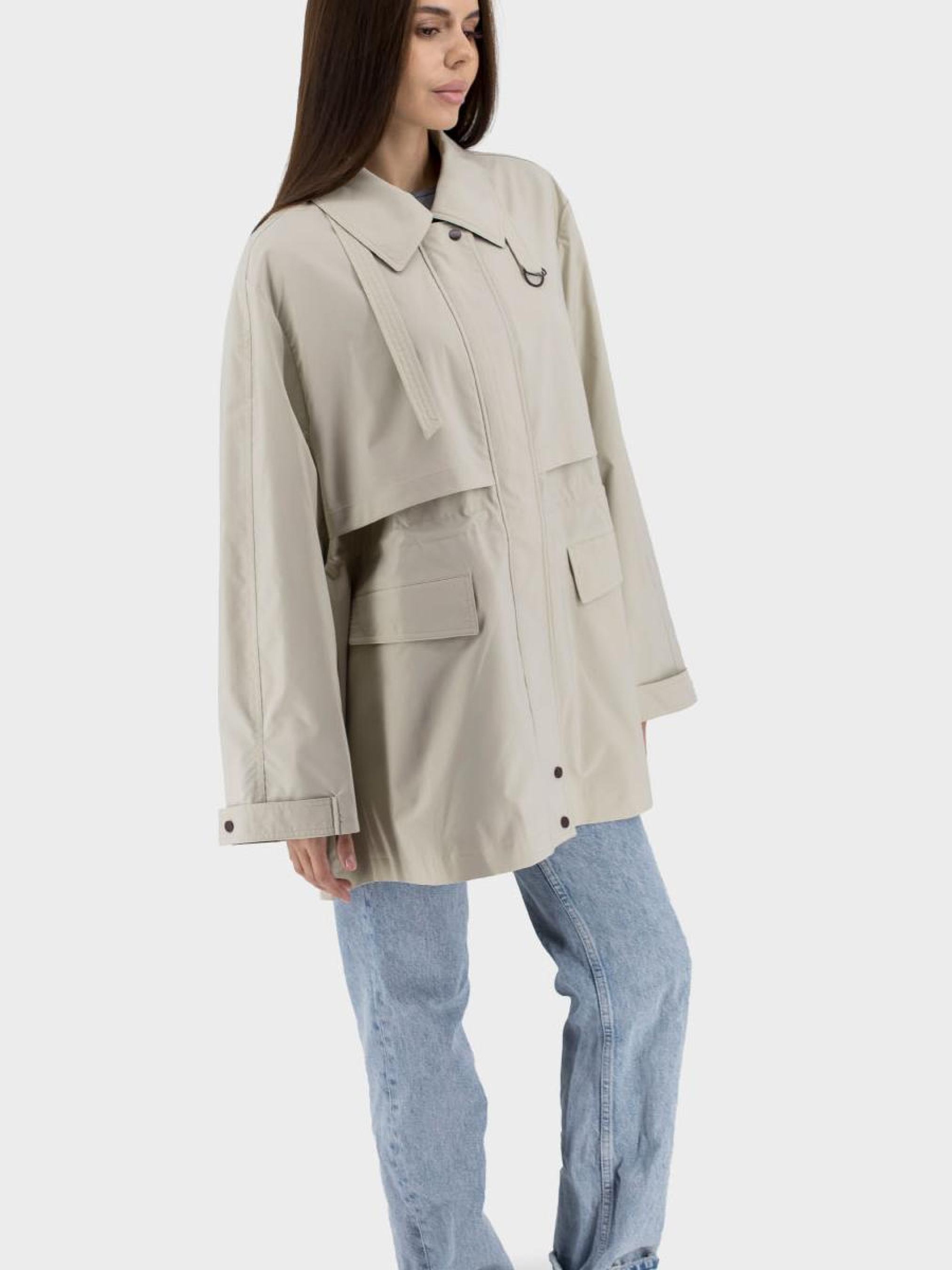 Представляємо вам ідеальну жіночу вітровку для весняно-осінніх прогулянок, яка поєднує в собі стиль і комфорт. Виготовлена з поліестеру, ця тонка вітровка забезпечує відмінну повітропроникність, що робить її незамінною для міжсезоння. Однотонний дизайн у стилі casual з сорочковим коміром підкреслить вашу елегантність у будь-якій ситуації. Практична застібка на блискавці та кнопках доповнена втачними кишенями з клапанами для зручного зберігання дрібниць. Особливості, такі як втачний спущений довгий рукав, кокетка і стяжки для корекції силуету, роблять цю вітрову куртку не лише модною, а й функціональною. Виберіть свій ідеальний компаньйон для сезону!