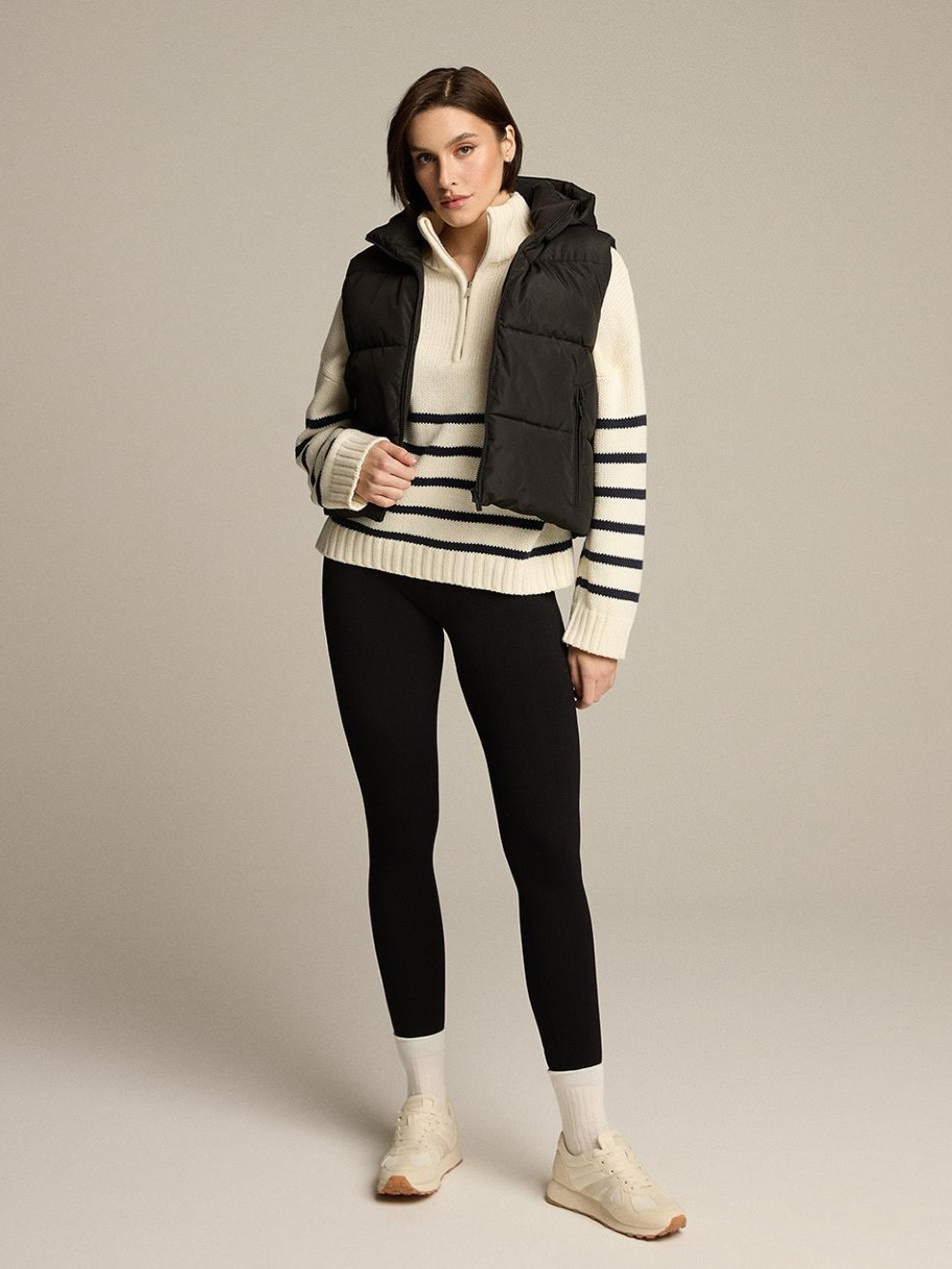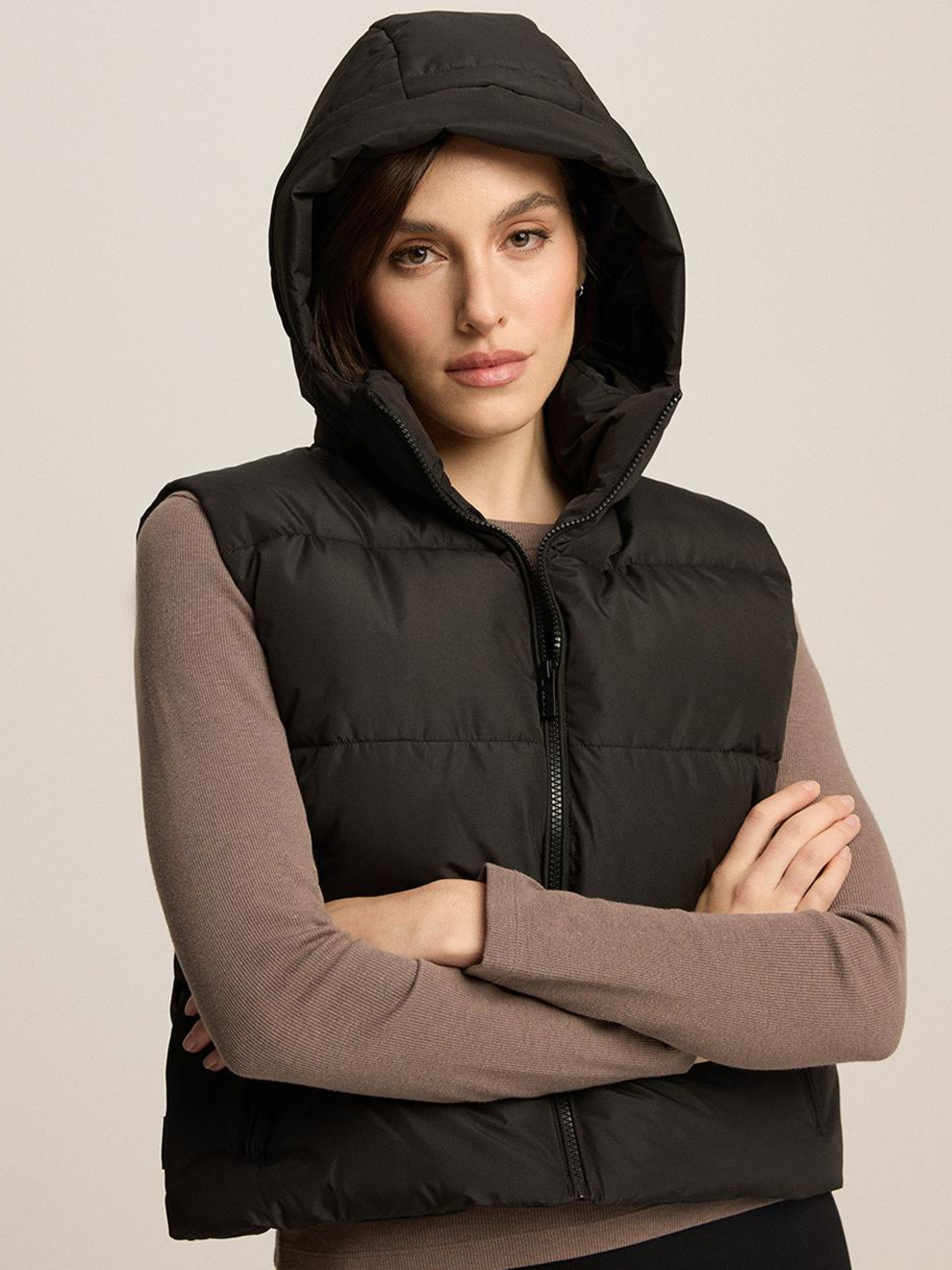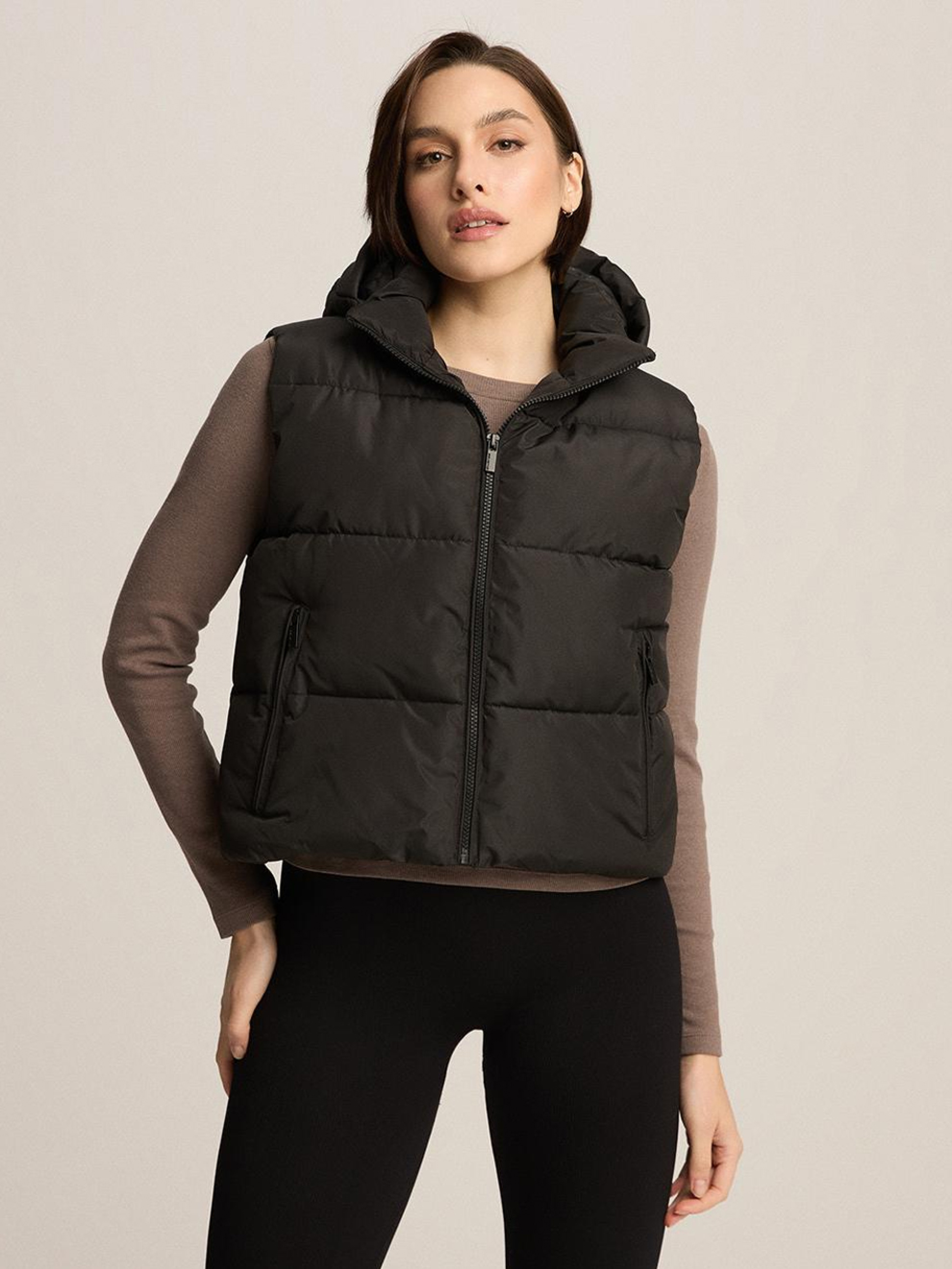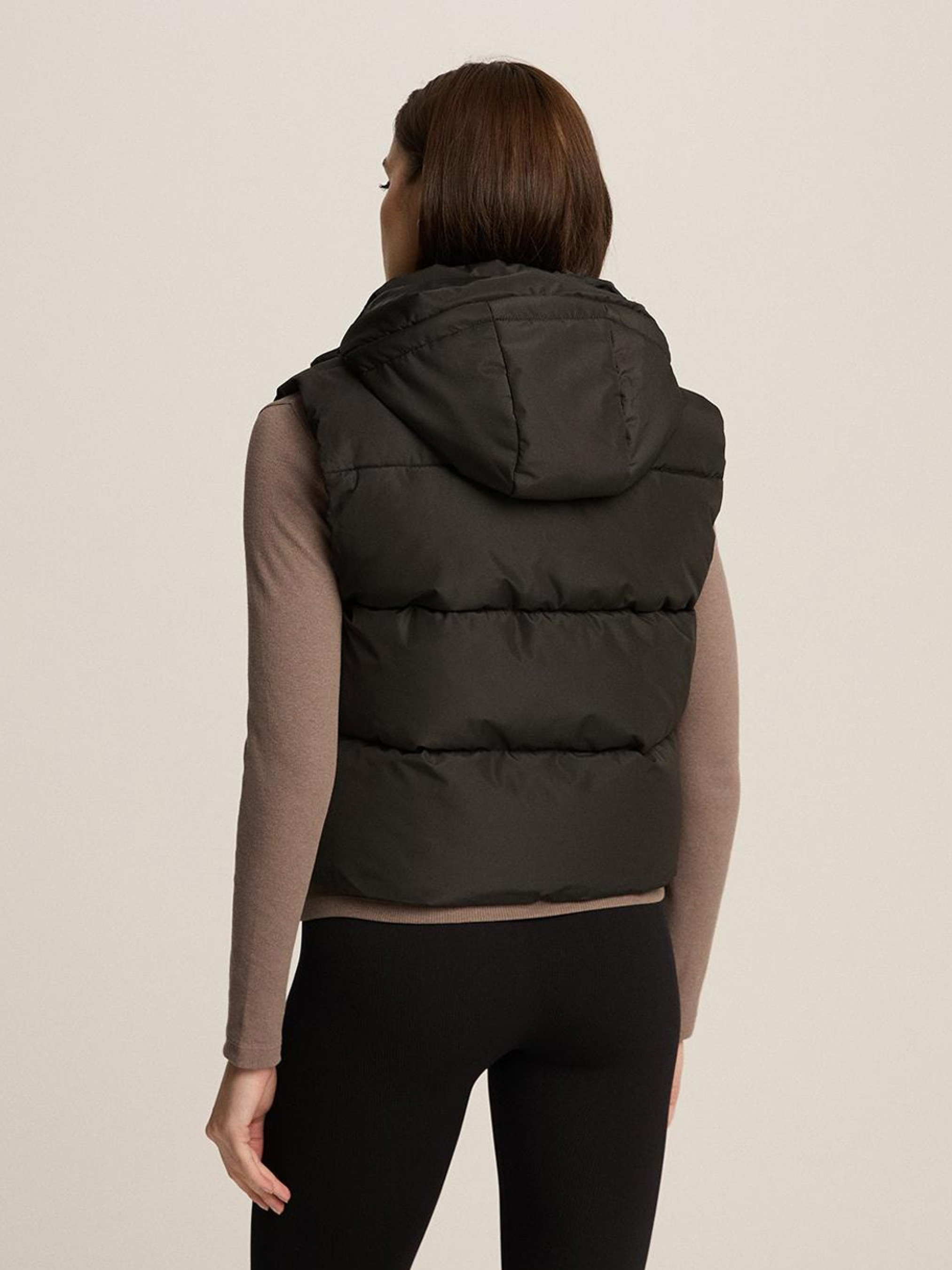 UMASKINI Жіноча жилетка з відстібним капюшоном: - горизонтальне стьобання, - наповнювач синтепон, - дві зовнішні кишені, - капюшон відстібний, - комір-стійка, - регулювання ширини по низу куртки, - застібка на пластикову блискавку. Внутрішній склад: 100 % поліестер Зовнішній склад: 100 % поліестер Наповнення: 100 % поліестер Сезон: Весна/Літо Догляд: - прання при максимум 30 °С - не відбілювати - не сушити в сушильній машині - не прасувати - не хімчистка Розмір на моделі - S Зріст моделі - 177 см РОЗМІР: XS S М L XL Довжина по центру спинки: 54 54 56 58 60 Ширина низу: 53.5 56 58.5 61 63.5 Ширина під пахвами: 54.5 57 59.5 62 64.5