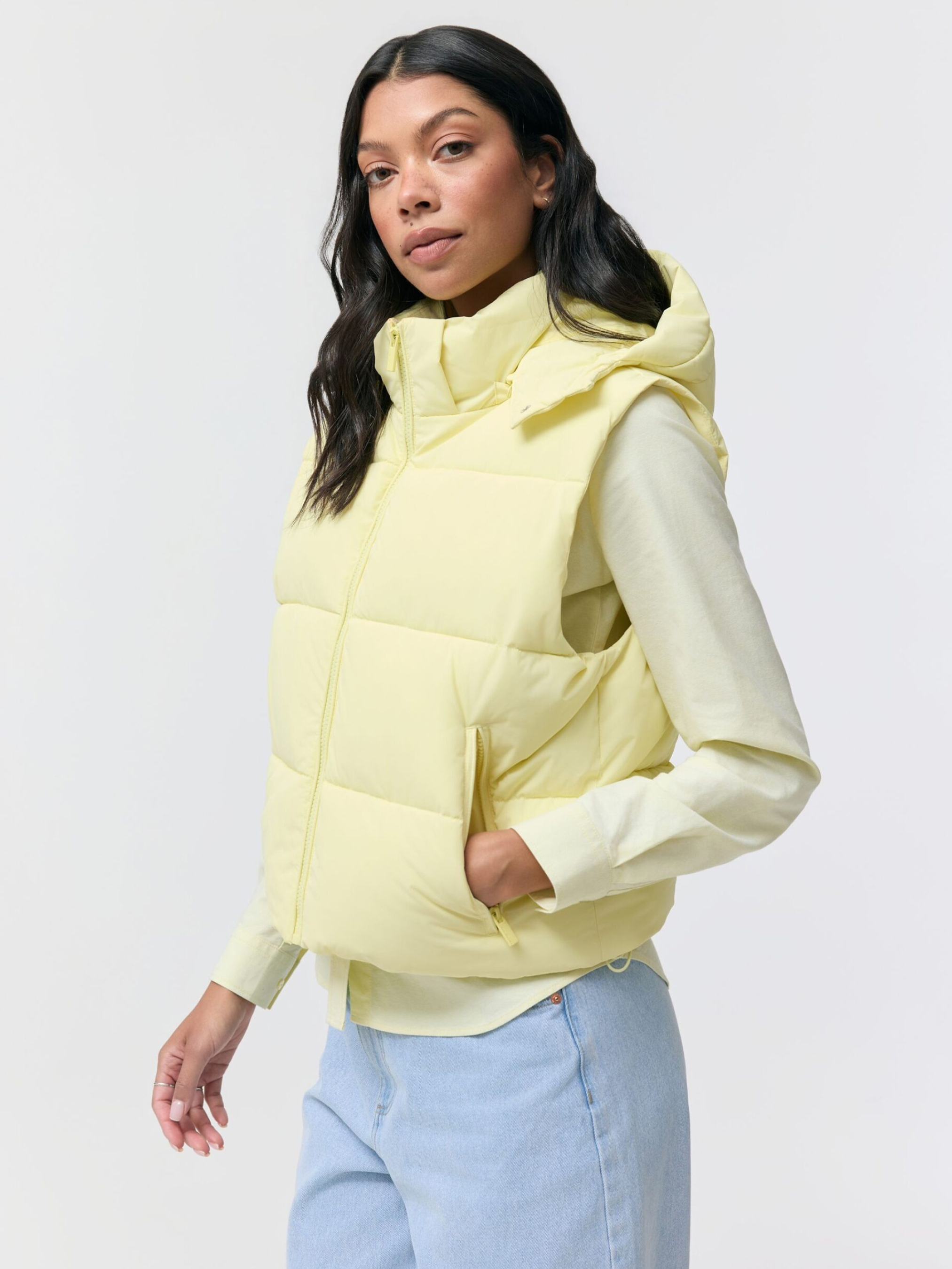 Жіноча жилетка UMASKINI 262 / ID: 10048991 Жіноча жилетка: - знімний капюшон, - горизонтальна стьобана прострочка, - дві зовнішні кишені на блискавці, - комір-стійка, - регульований пояс, - застібка на блискавку. Чудовий варіант для прохолодних днів – ідеально підходить для міського стилю та щоденного носіння. Внутрішній склад: 100% поліестер Зовнішній склад: 100% поліестер Наповнювач: 100% поліестер Догляд: - прання при максимум 30 °С - не відбілювати - не сушити в сушильній машині - не прасувати - не піддавати хімчистці Розмір: XS, S, М*, L, XL, Довжина по центру спинки: 54, 54, 56, 58, 60, Ширина знизу: 51, 56, 58,5, 61, 63,5, Ширина під пахвами: 52, 57, 59,5, 62, 64,5,