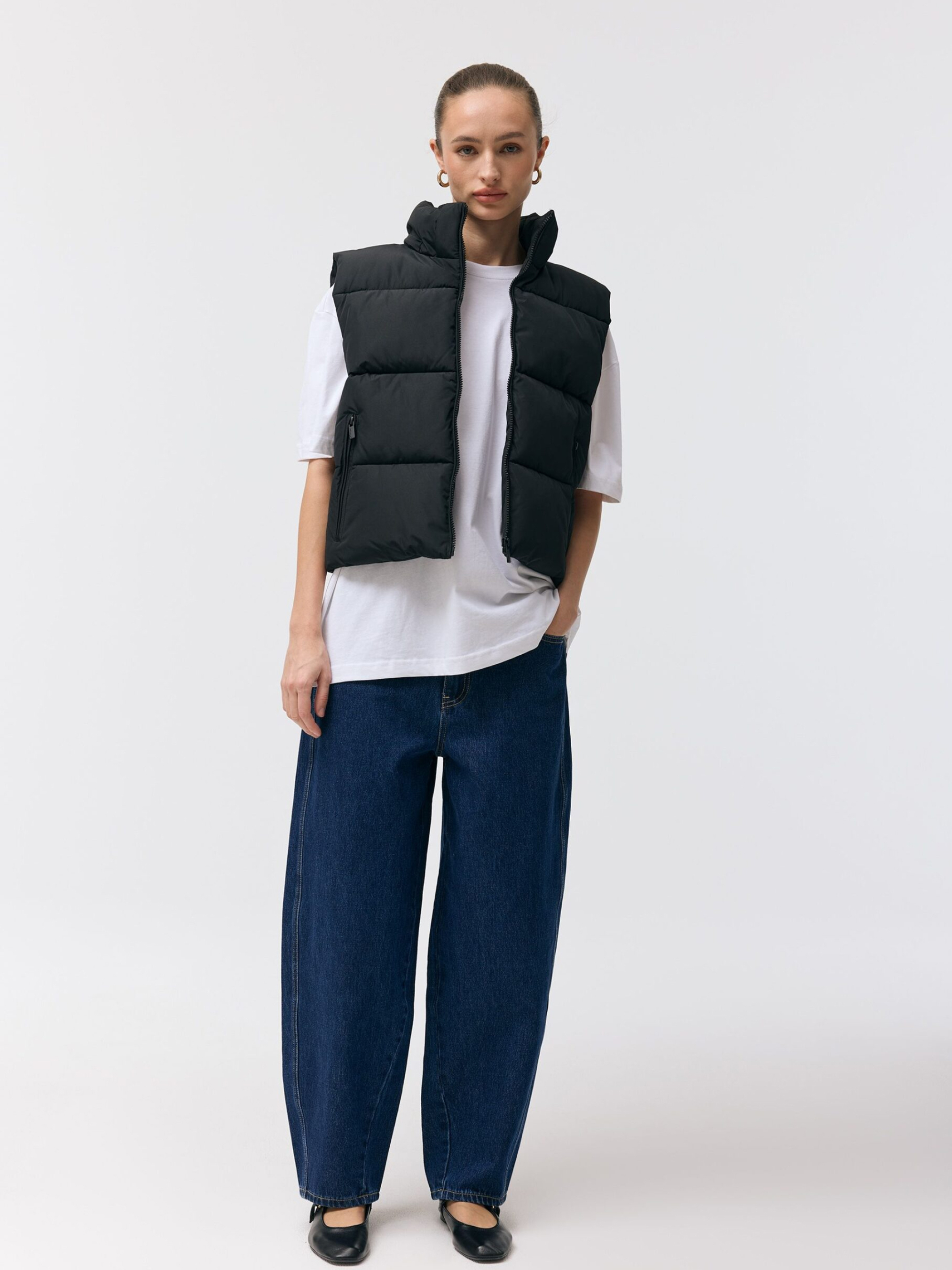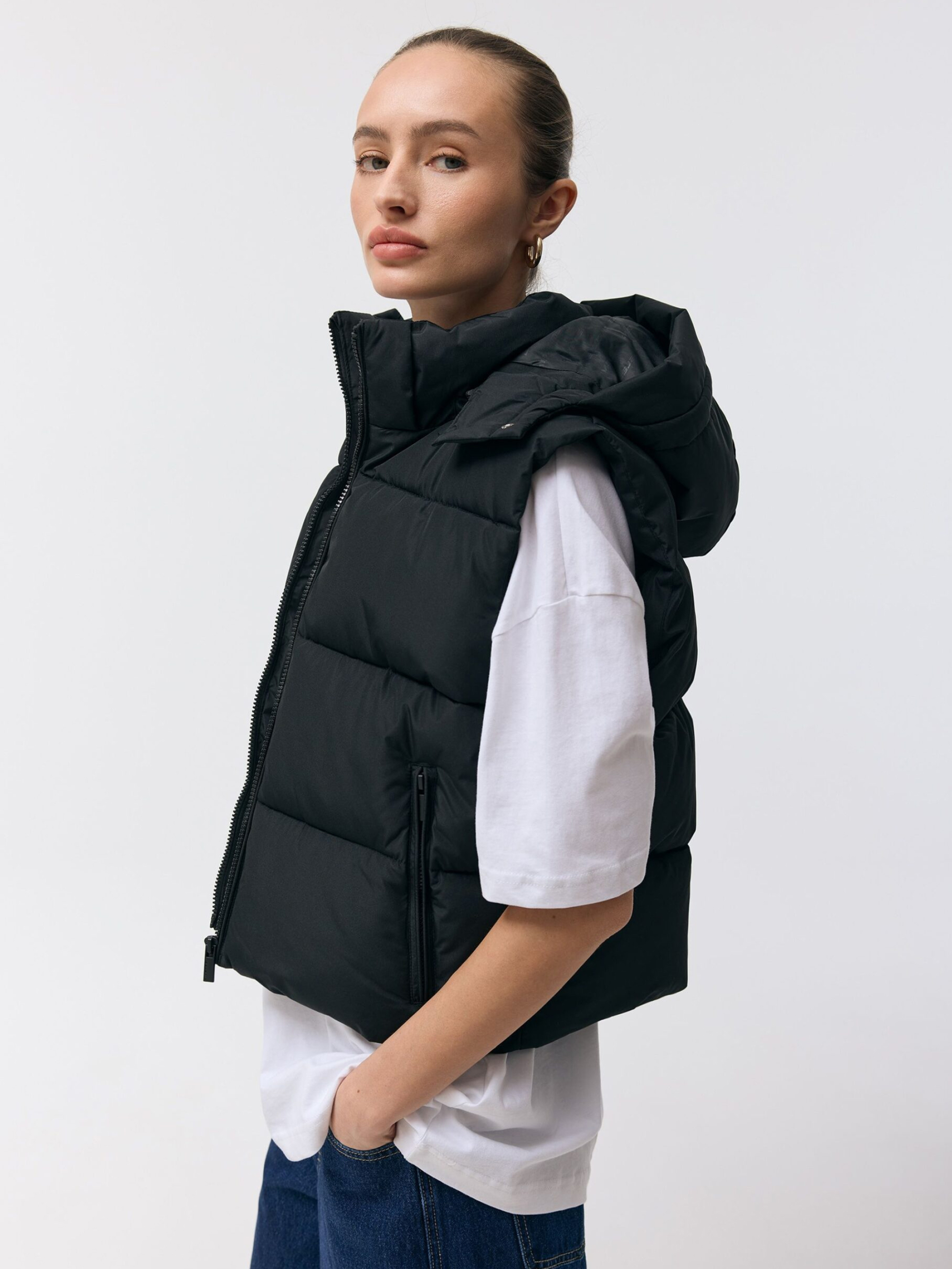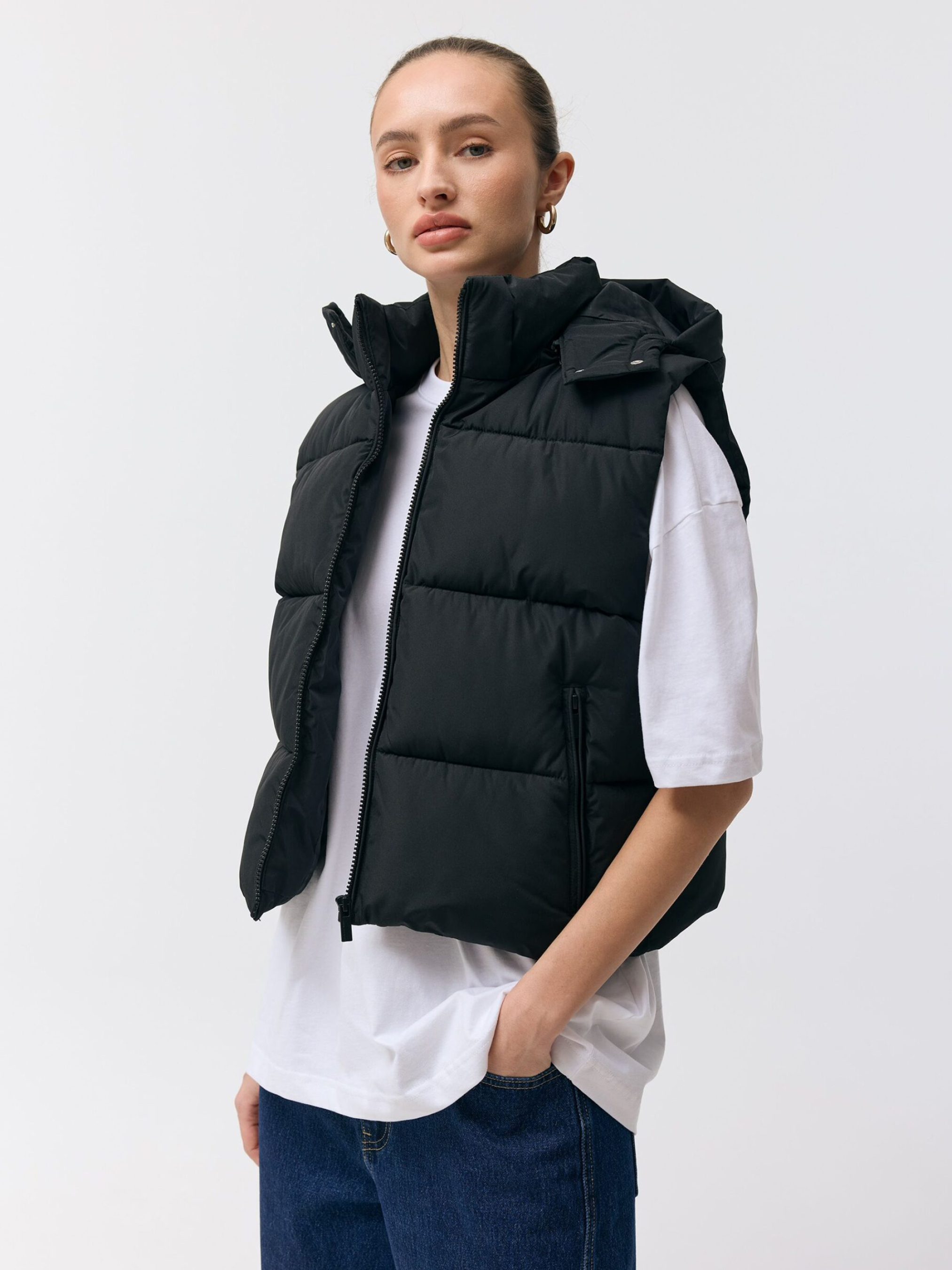Жіноча жилетка UMASKINI 262 / ID: 10048991 Зріст моделі: 176 см Розмір товару: S Жіноча жилетка: - знімний капюшон, - горизонтальна стьобана прострочка, - дві зовнішні кишені на блискавці, - комір-стійка, - регульований пояс, - застібка на блискавку. Чудовий варіант для прохолодних днів – ідеально підходить для міського стилю та щоденного носіння. Внутрішній склад: 100% поліестер Зовнішній склад: 100% поліестер Наповнювач: 100% поліестер Догляд: - прання при максимум 30 °С - не відбілювати - не сушити в сушильній машині - не прасувати - не піддавати хімчистці Розмір: XS, S, М*, L, XL, Довжина по центру спинки: 54, 54, 56, 58, 60, Ширина знизу: 51, 56, 58,5, 61, 63,5, Ширина під пахвами: 52, 57, 59,5, 62, 64,5,