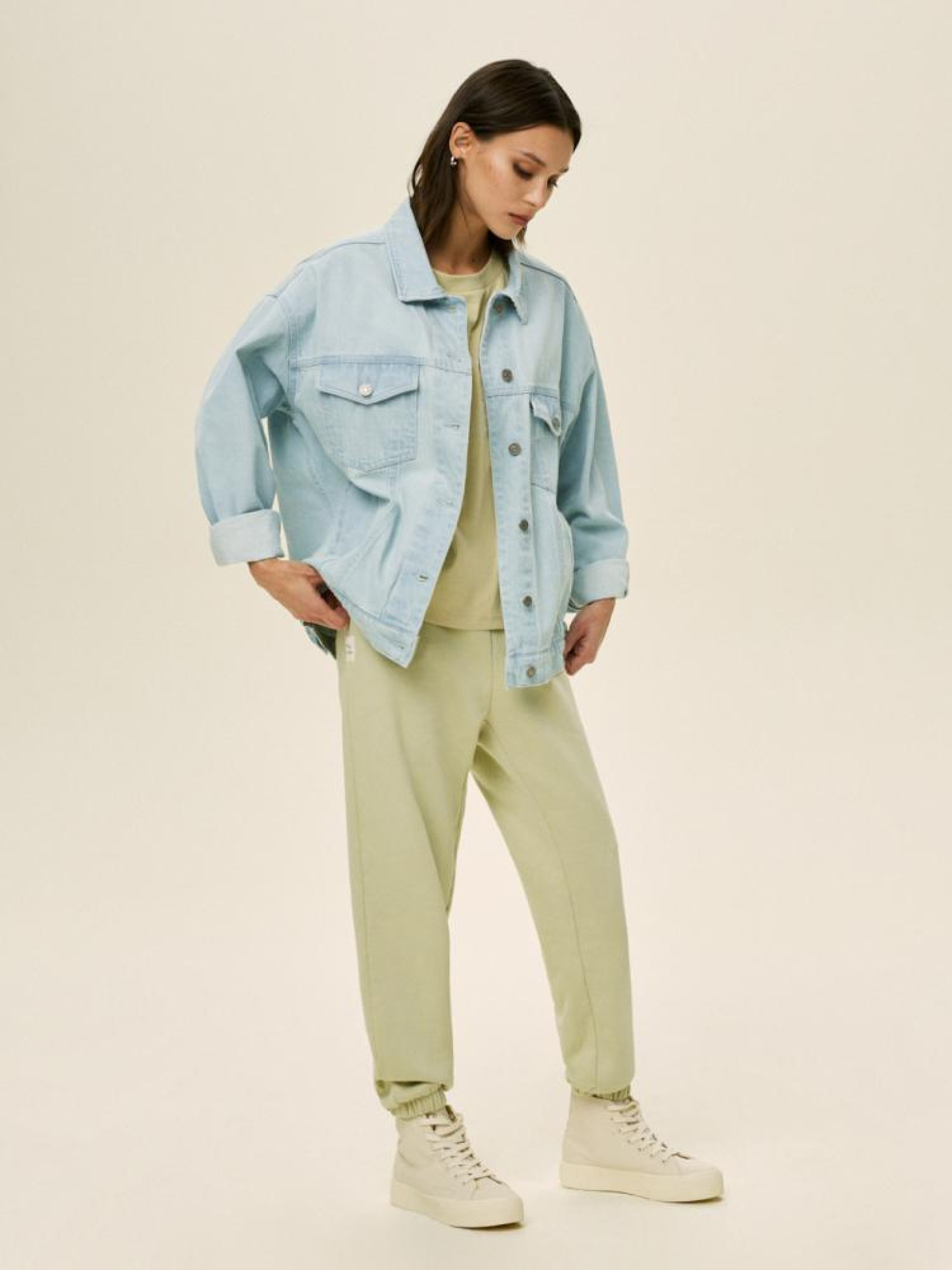 Куртка SUNNEVA 10044084 Джинсова куртка у вінтажному стилі злегка оверсайз-крою з колекції Diverse Athletics. - класичний, трохи оверсайз денім крій катана, - застібається на декоративно застарілі металеві гудзики сріблястого кольору, - комір, - манжети застібаються на гудзик. Склад: 100% бавовна. Сезон: Весна/Літо 2024. Догляд: - прання при максимум 40 °С - не відбілювати - сушіть за низької температури - прасувати максимум при темп. 150°С - не хімчистка Розмір на моделі - S Зріст моделі - 167 см РОЗМІР: XS, S, М, L. XL, Довжина по середині спинки: 64,00 см, 66,00 см, 68,00 см, 70,00 см, 72,00 см, ШИРИНА НИЗУ: 50,50 см, 53,50 см, 55,50 см, 58,00 см, 60,50 см, Ширина під пахвами: 58,50 см, 61,50 см, 63,50 см, 66,00 см, 68,50 см, Довжина рукава: 52,00 см, 51,00 см, 53,00 см, 54,00 см, 55,00 см,