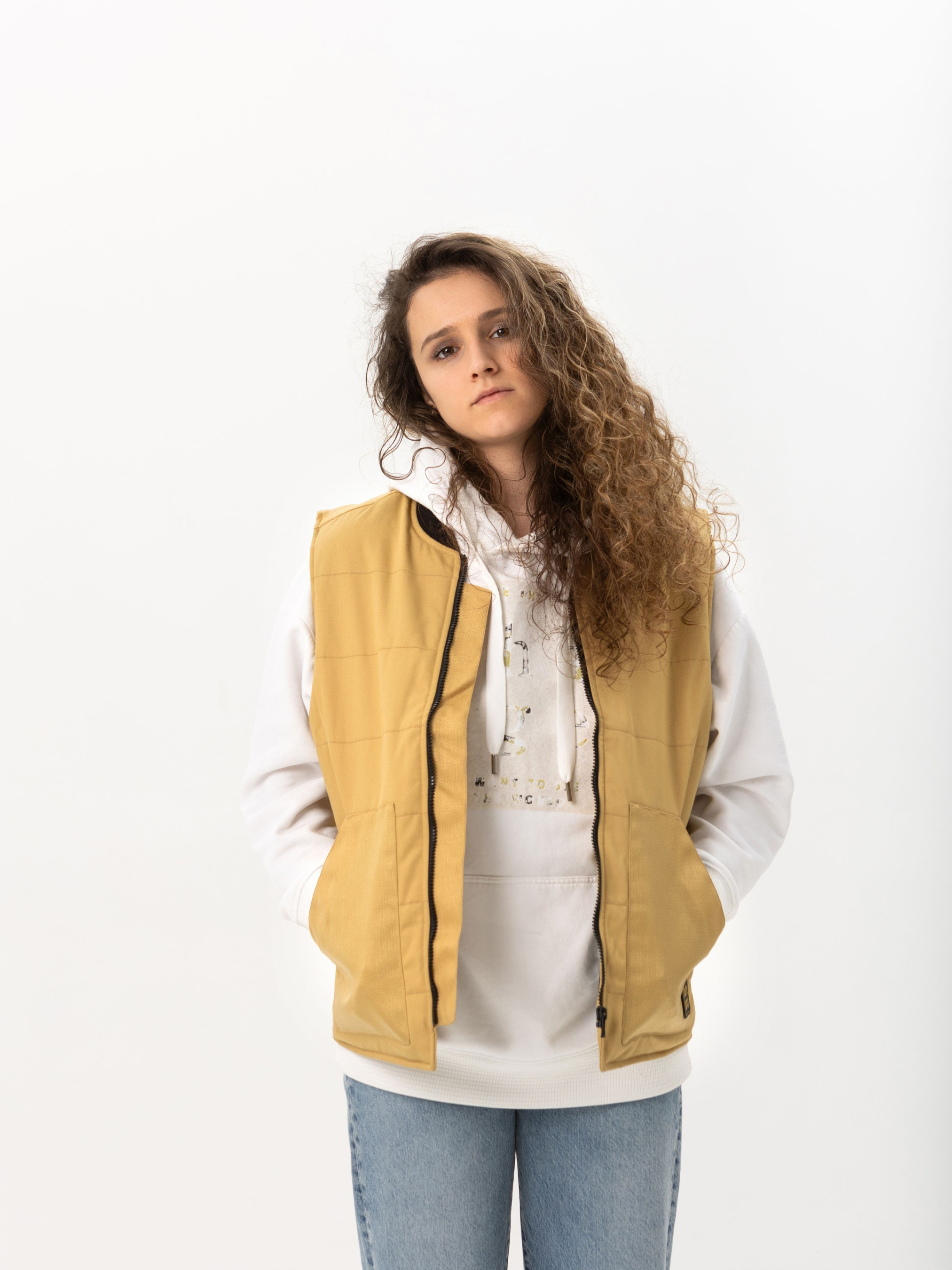Жилетка від HAUBERT у пісочному кольорі — стильний і універсальний елемент для прохолодної пори року. Вставки з міцної кордури в тон основному кольору на кишенях і плечах додають елегантного вигляду та підвищують зносостійкість. Модель має центральну блискавку, дві зовнішні накладні кишені та внутрішні кишені на липучках, що забезпечує максимальний комфорт та практичність протягом дня. Вона стане чудовим доповненням як до спортивного, так і до міського кежуал-стилю.