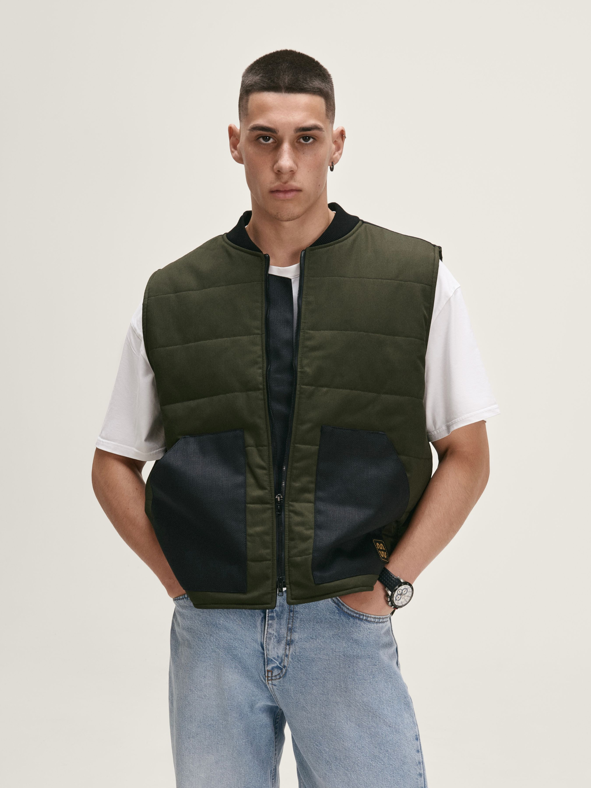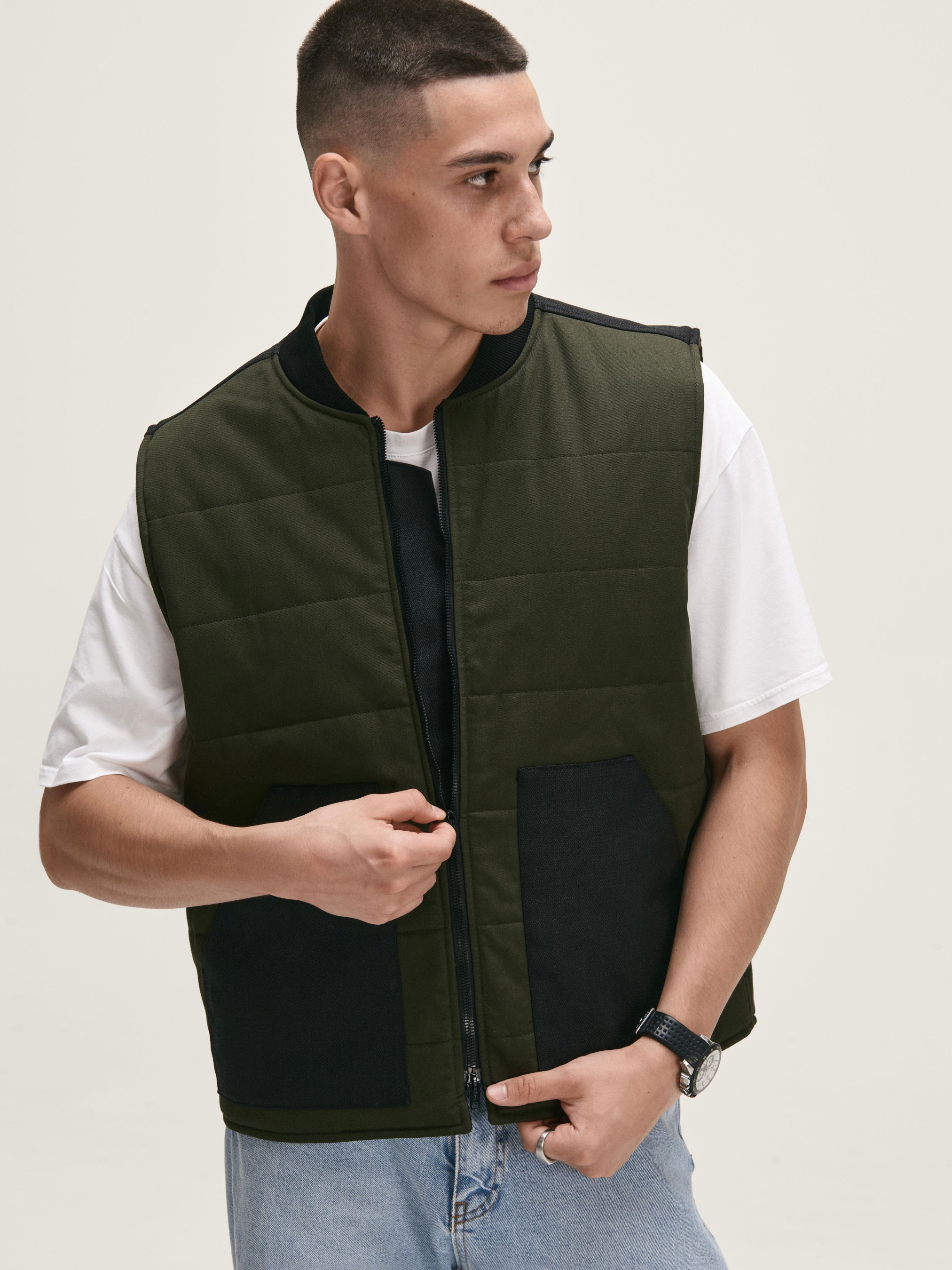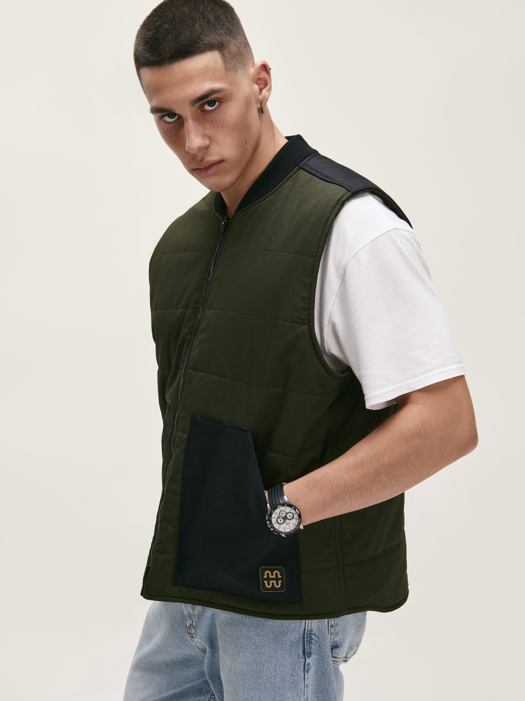 Функціональна та стильна жилетка від бренду HAUBERT — ідеальний вибір для міського стилю та активного способу життя. Виготовлена з міцної зносостійкої тканини, що забезпечує комфорт у прохолодну погоду. Модель виконана в модному оливковому кольорі з контрастними чорними вставками з кордури на кишенях і спинці. Модель також має дві місткі внутрішні кишені на липучках та оснащена подвійною блискавкою для більшої зручності та функціональності.