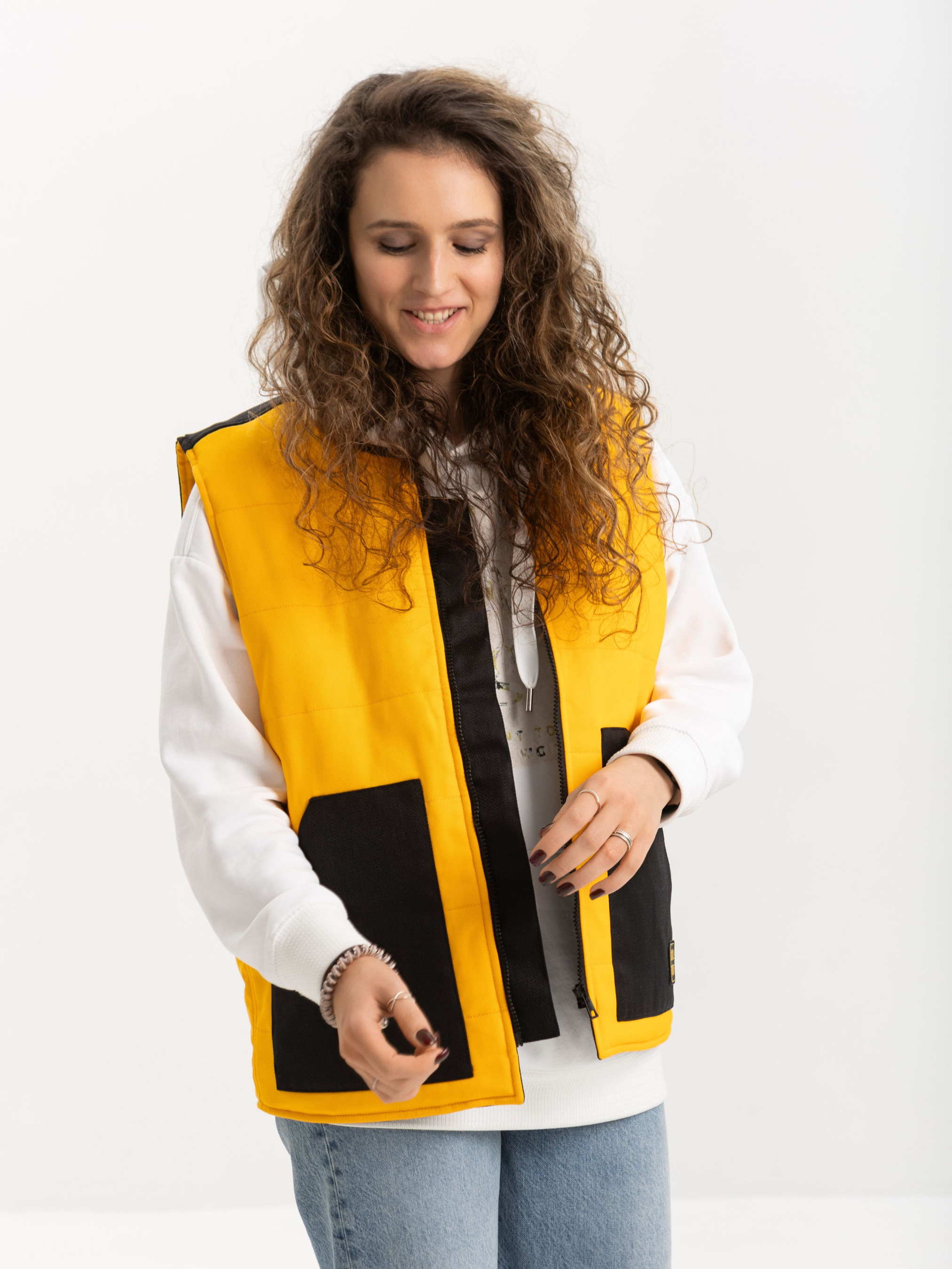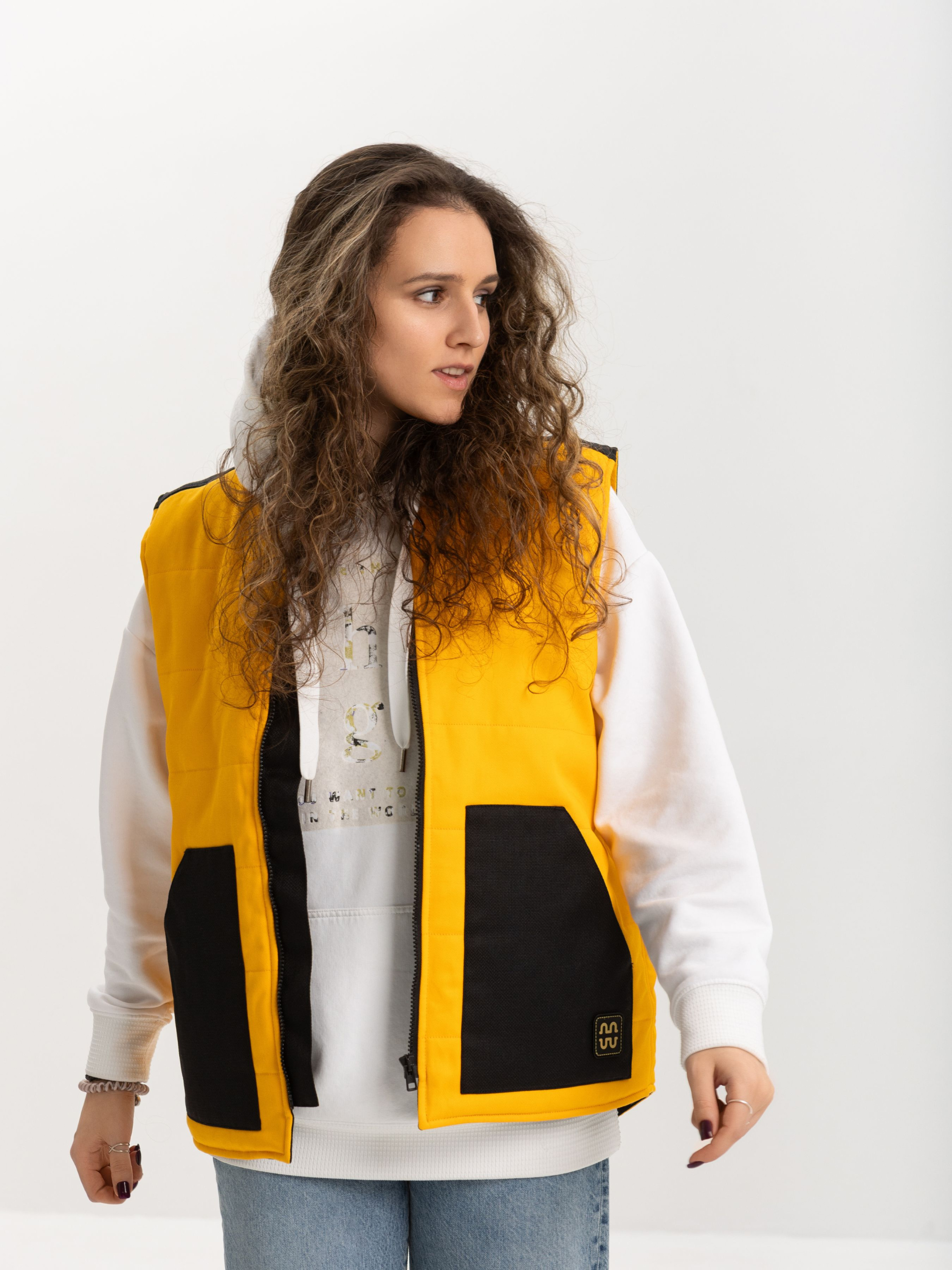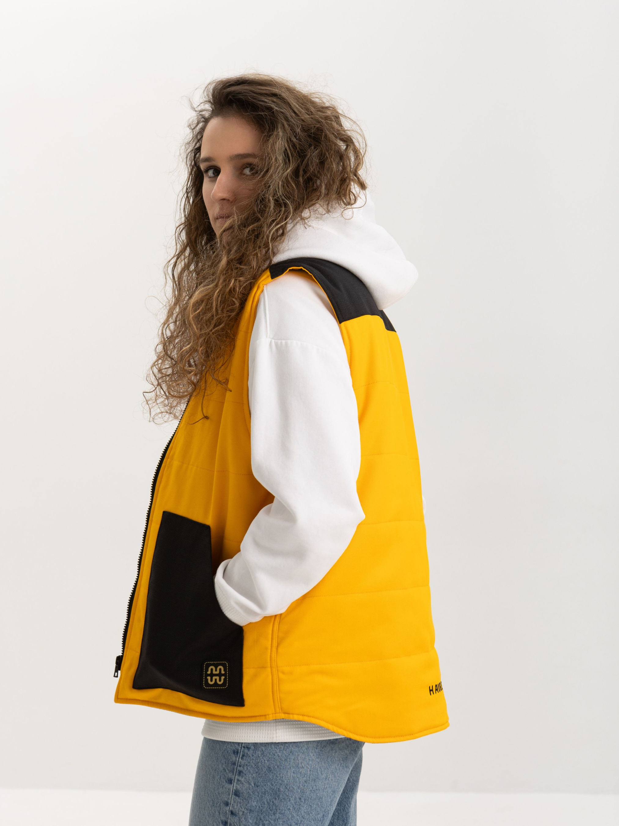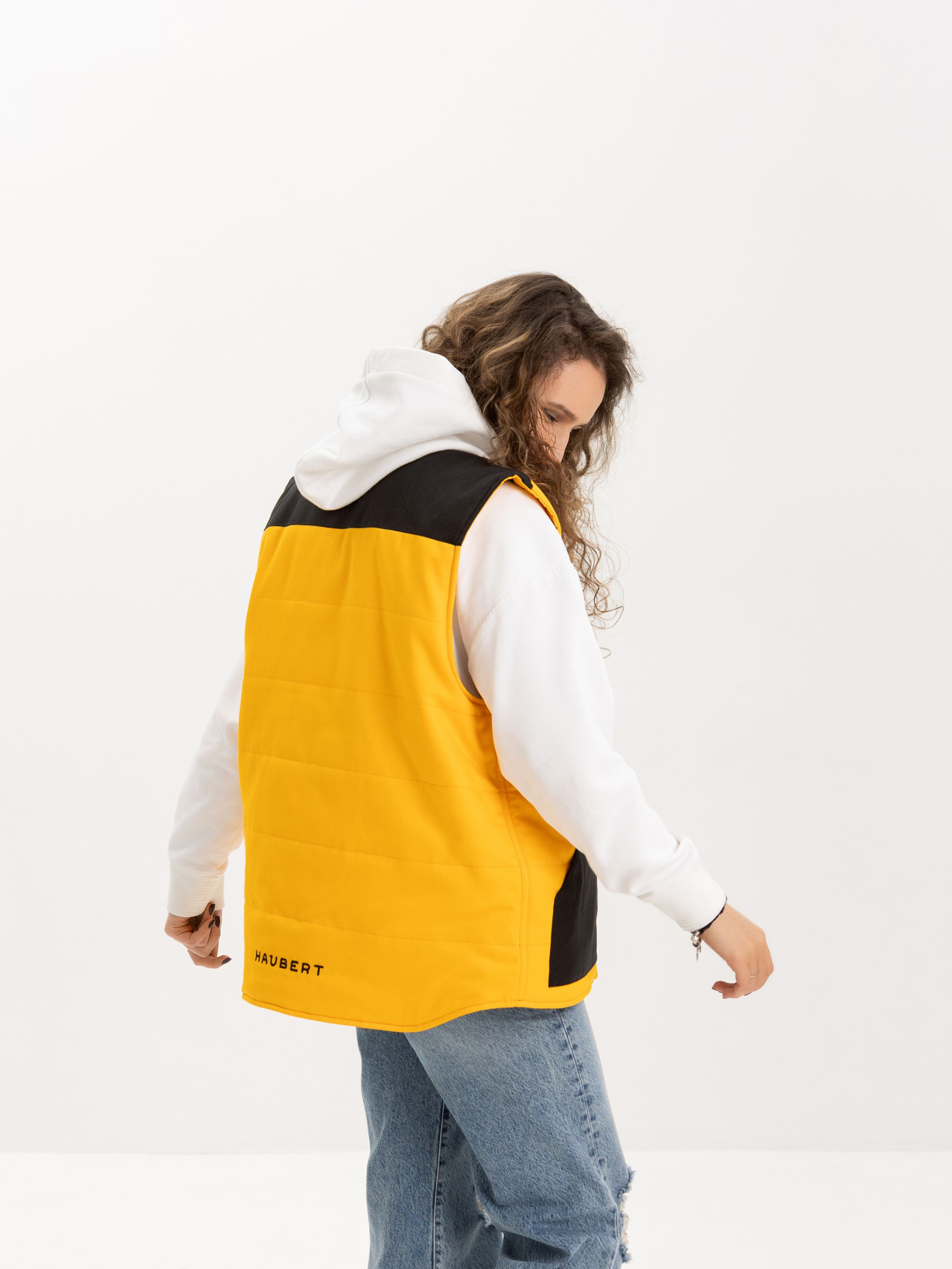 Яскрава жилетка від HAUBERT у насиченому жовтому кольорі — чудовий акцент для стильного образу у прохолодну пору. Контрастні вставки з міцної кордури на кишенях і плечах додають динамічності та зносостійкості. Модель має центральну блискавку, дві зовнішні накладні кишені та внутрішні кишені на липучках — усе для зручності та впевненого комфорту протягом дня. Чудово пасує як до спортивного, так і до міського кежуал-луку.