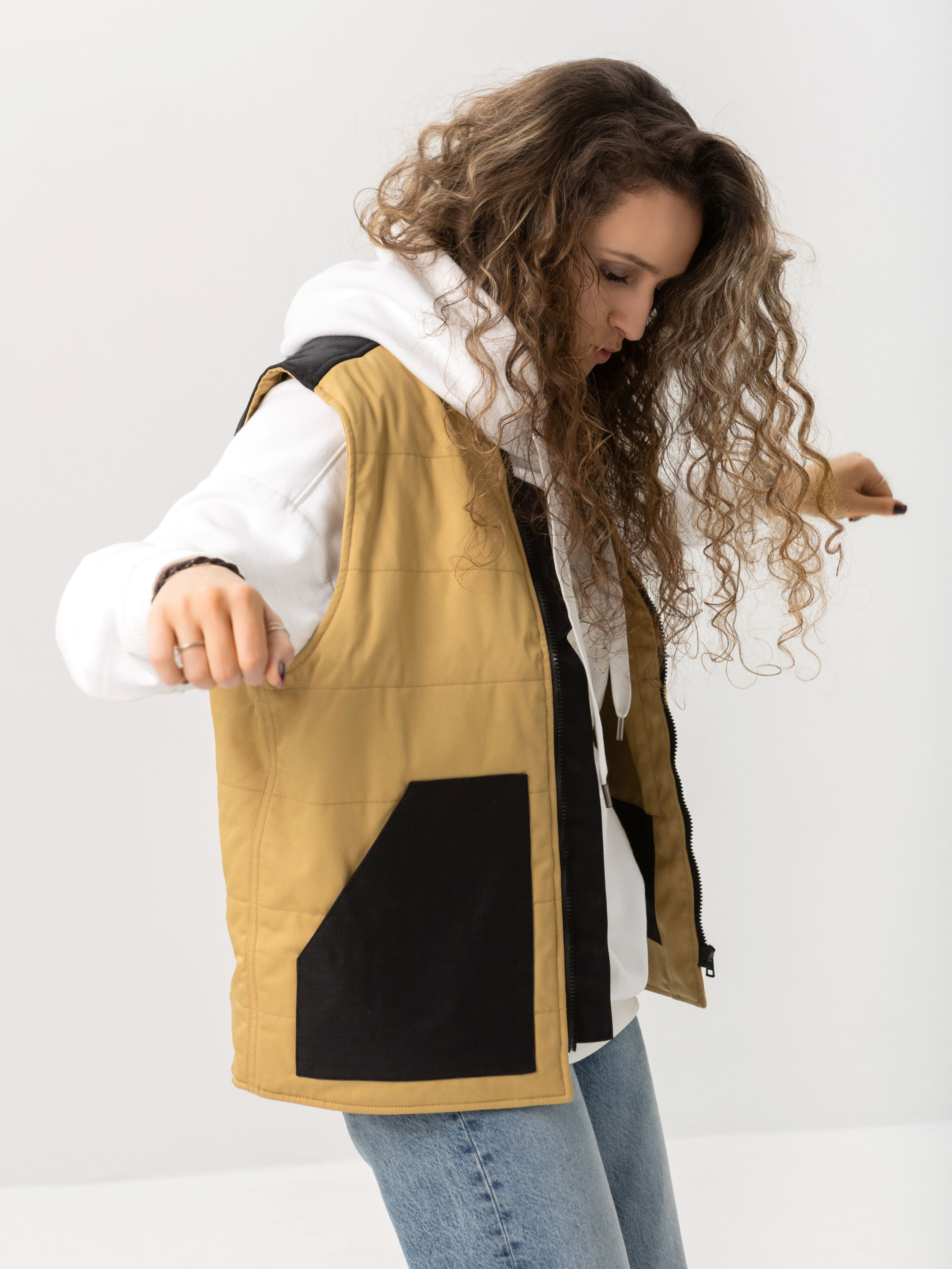 Жилетка від HAUBERT у ніжному пісочному кольорі — вдале поєднання стриманої естетики та продуманої функціональності. Контрастні вставки з міцної кордури на кишенях і плечах додають характеру та довговічності. Застібається на зручну центральну блискавку, має дві місткі зовнішні кишені та внутрішні кишені на липучках — ідеально для активного темпу життя. Ця модель легко комбінується як із базовими речами, так і з трендовими елементами гардеробу, додаючи стилю навіть у прохолодну погоду.