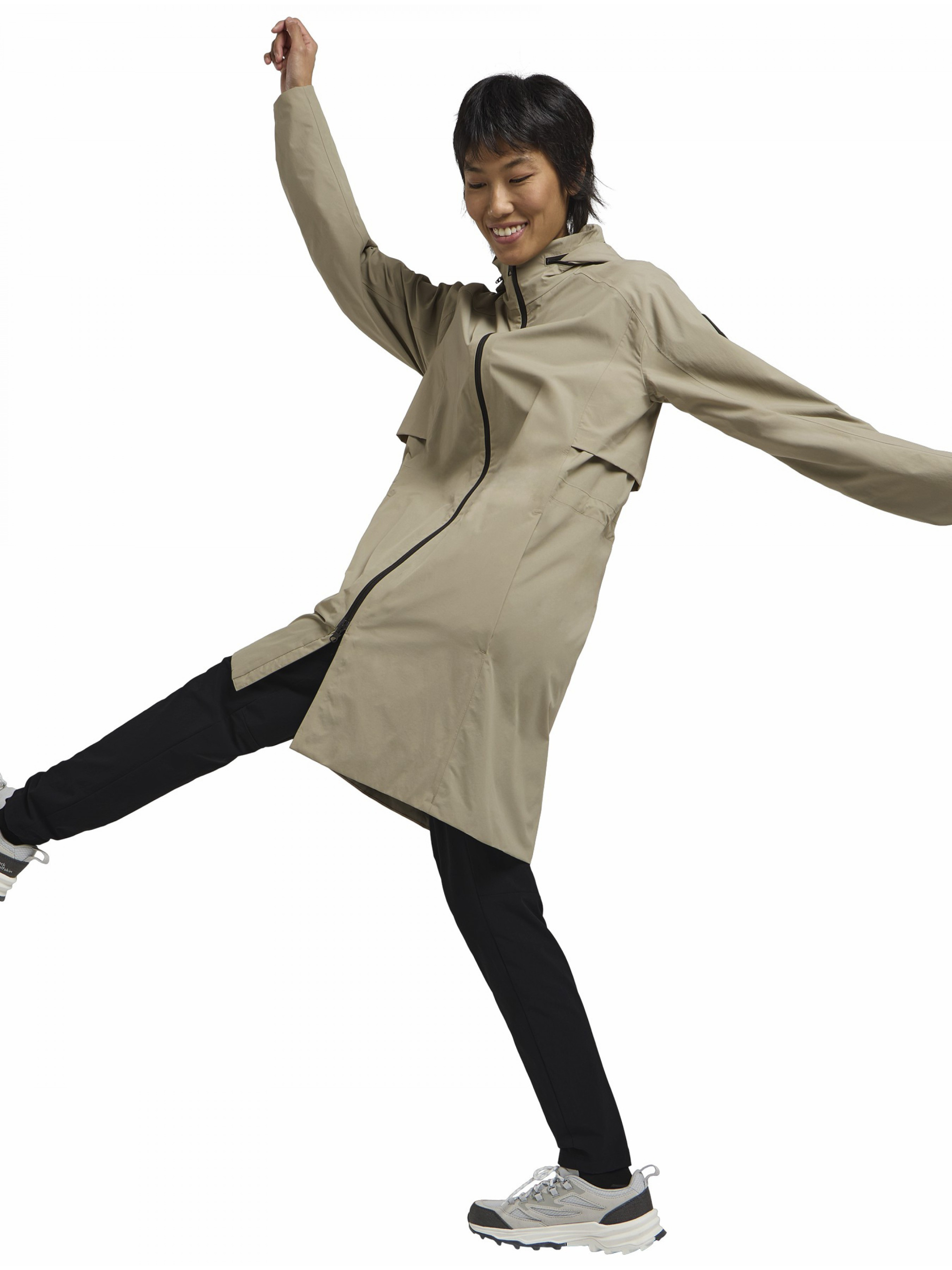 Плащ WELLSEE COAT W — це сучасна версія класичного тренчкоту, що поєднує елегантний стиль з високим рівнем функціональності. Його чисті лінії та витончена силуетна форма роблять його універсальним варіантом, який ідеально підходить для урбаністичних умов та будь-якої ситуації. Виготовлений з використанням мембрани TEXAPORE CORE, яка забезпечує водонепроникність на рівні 10 000 мм та високу повітропроникність (6 000 г/м2/24 год), цей плащ зберігає комфорт навіть в умовах дощу або сильного вітру. Він також має капюшон, який можна заховати в комір, а його об'єм можна регулювати для додаткового комфорту. Спеціально розроблені кишені — дві зовнішні на стегнах і одна внутрішня — дозволяють зручно зберігати особисті речі. Регульована талія забезпечує ідеальну посадку на кожному типі фігури. Модель отримала сертифікацію bluesign, що підтверджує використання екологічно чистих матеріалів у виробництві. Модний, функціональний та еко-дружній, він стане незамінним елементом вашого гардеробу в сезон дощів та прохолодних днів.