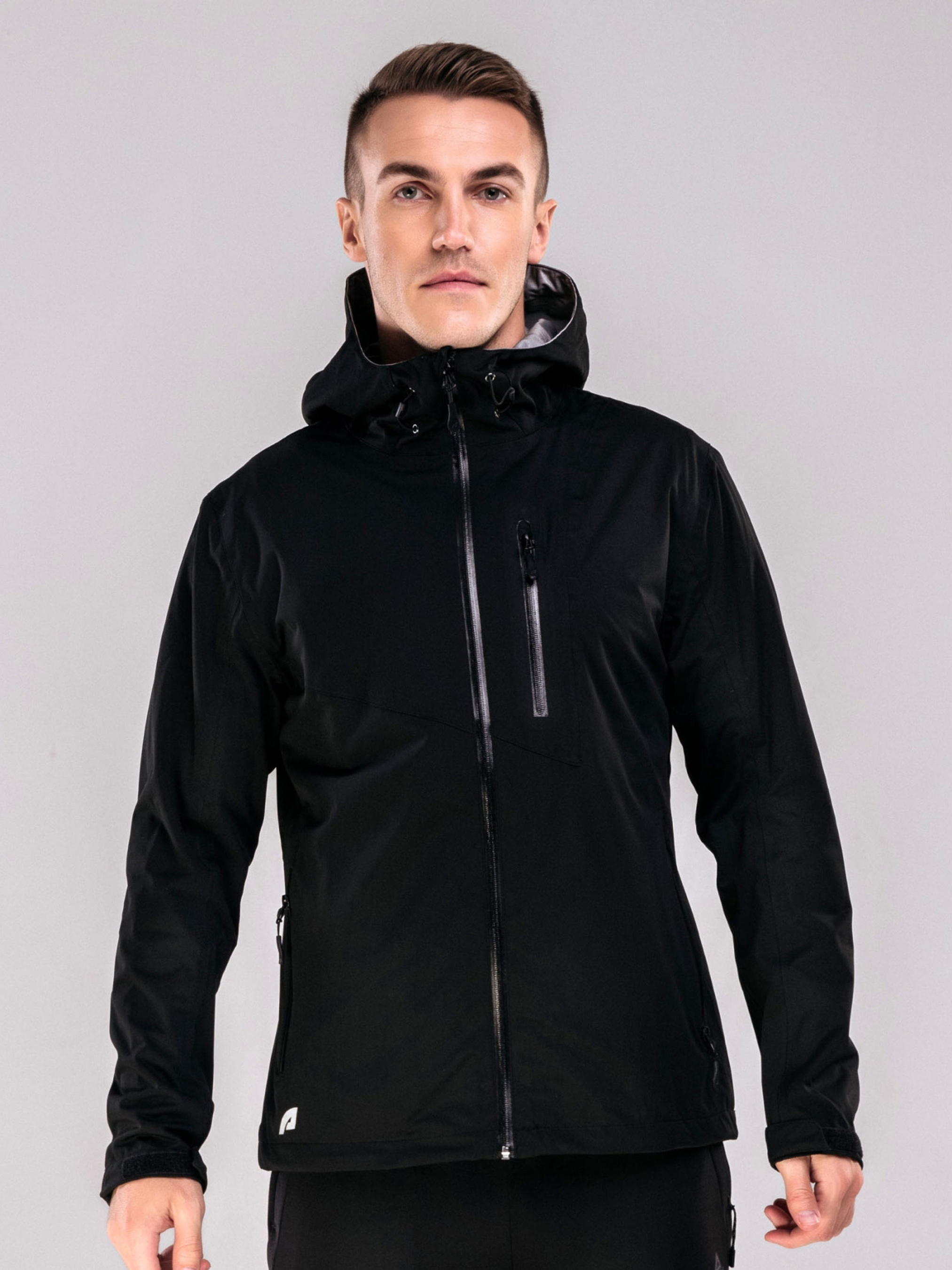 Куртка вітрозахисна чоловіча, чорного кольору. - Рукава з липкою стрічкою для регулювання по об’єму руки. - Капюшон не знімний. - Виріб має блискавку по всій довжині - Ззовні присутні дві бічні кишені на талії та одна кишеня зліва в частині грудей, всі кишені мають вітронепродувні блискавки. - Всередині зліва виріб має одну кишеню на блискавці. - Виготовлена з водонепроникного, дихаючого та вітронепроникного матеріалу. - Тришарова тканина з мембраною запобігає проникненню дощу, вологи та снігу. - Зберігає тепло, сухість і комфорт. - Тканина міцна, легка, не вимоглива в догляді. Матеріал: 100% поліестер