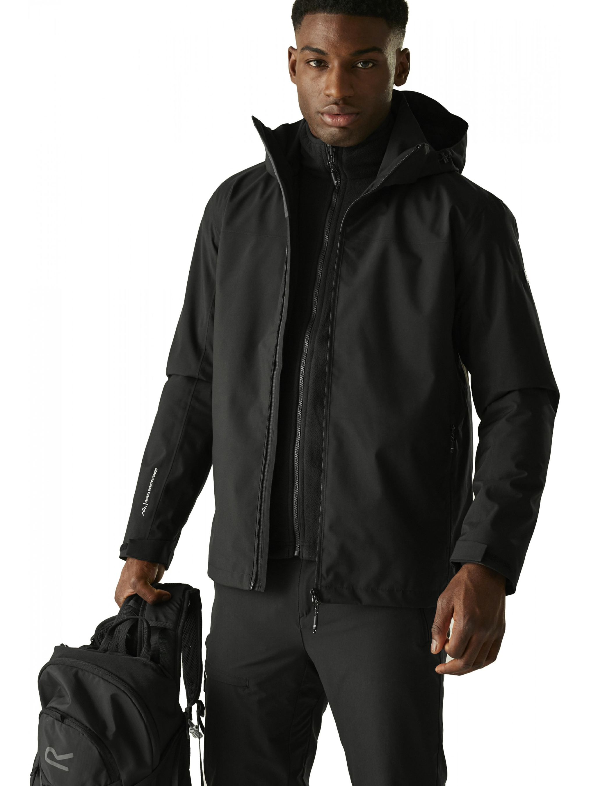 Куртка 3 в 1 Coriver — це універсальне рішення для чоловіків, які цінують надійність, тепло та гнучкість у будь-яких погодних умовах. Вона поєднує в собі функціональність трьох курток одночасно: зовнішній водонепроникний шар для захисту від дощу й вітру, внутрішній утеплений флісовий шар для тепла та можливість носити їх окремо або разом залежно від ситуації. Така конструкція робить модель ідеальним вибором для походів, трекінгу, подорожей і повсякденного міського використання. Зовнішній шар виготовлений із водонепроникної та повітропроникної тканини ISOTEX 15,000 (100% перероблений поліестер, щільність 165 г/м2), що забезпечує надійний захист від опадів і вітру навіть у складних умовах. Завдяки показнику повітропроникності 20,000 г/м2/24 год, волога легко виводиться зсередини, підтримуючи комфорт протягом усього дня. Тканина має еластичну структуру, що не обмежує рухів, а повністю проклеєні шви гарантують абсолютну водонепроникність. Довговічне водовідштовхувальне покриття DWR допомагає краплям дощу просто скочуватися з поверхні, зберігаючи сухість навіть під час тривалих опадів. Всередині використано утеплювач Thermoguard, який відомий своєю легкістю та здатністю зберігати тепло без зайвого об’єму. Анатомічно сформовані рукави забезпечують природну свободу рухів, що особливо важливо під час активної діяльності. Регульований капюшон, який можна відстібнути, захищає від вітру та дощу, а центральна блискавка запобігає потраплянню вологи всередину. Для практичності передбачено дві нижні кишені на блискавках та внутрішню кишеню для цінних речей. Внутрішня частина системи — це флісова куртка з мікроволокна (100% поліестер, щільність 170 г/м2), яка відрізняється м’якістю, повітропроникністю та чудовими теплоізоляційними властивостями. Вона має еластичну обробку манжетів і коміра, що зберігає тепло, а також дві нижні кишені для зручності. Технологія Isotex Stretch поєднує водонепроникність, повітропроникність і вітрозахист, забезпечуючи комфорт у будь-яких погодних умовах. Куртка Coriver 3 в 1 виготовлена з перероблених матеріалів, що підтверджує її екологічну свідомість. Це надійний, стильний і функціональний одяг для тих, хто шукає гнучкість і комфорт на кожен день — від дощу й прохолоди до активних пригод на природі.