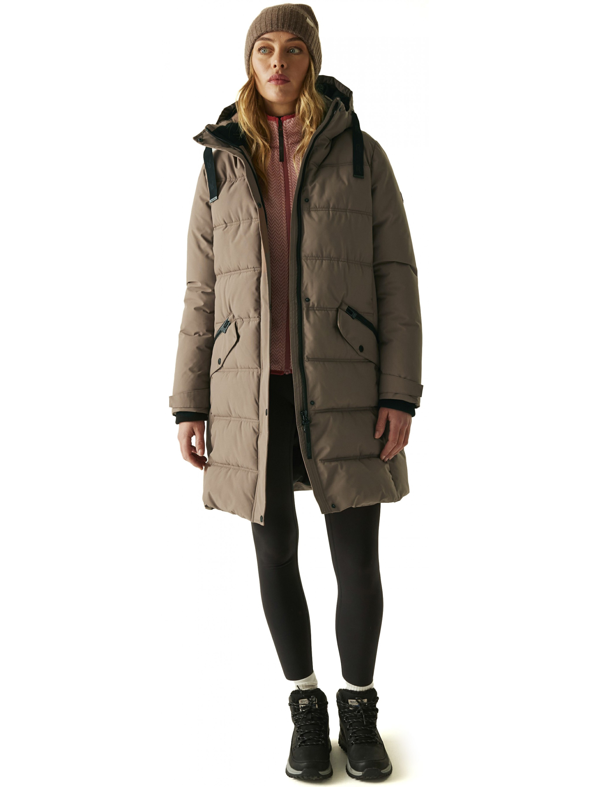 Напівпальто Eryn — це елегантність, тепло і практичність, поєднані в одному витонченому силуеті. Створене для тих, хто цінує комфорт і стиль навіть у холодну погоду, це пальто забезпечує надійний захист від негоди, не жертвуючи жіночністю. Легка тканина та сучасний синтетичний утеплювач створюють м’яке відчуття тепла, а продуманий дизайн додає образу витонченості. Верх виконаний із легкої тканини з 100% поліестеру щільністю 112 г/м2, що поєднує міцність і комфорт. Спеціальне водовідштовхувальне покриття DWR змушує краплі дощу скочуватись із поверхні, залишаючи пальто сухим навіть під час несподіваних опадів. Всередині — преміальний утеплювач Feather Free, виготовлений із переробленого синтетичного пуху щільністю 230 г/м2, який забезпечує тепло без надмірної ваги. М’яка підкладка з поліаміду 20D приємна на дотик і гарантує комфорт упродовж усього дня. Дизайн доповнений знімним капюшоном з м’якою флісовою підкладкою, який захищає від холоду та додає затишку. Контрастна підкладка рукавів і кишень підкреслює вишуканість моделі, а декоративний шнурок і ребристі манжети з коміром додають сучасного характеру. Практичність підкреслюють дві нижні накладні кишені з подвійним входом — на блискавці для рук і з клапаном для дрібниць, а також дві внутрішні кишені для безпечного зберігання важливих речей. Завдяки двосторонній блискавці можна легко регулювати зручність під час руху, а перероблені матеріали роблять Eryn не лише стильним, а й екологічно відповідальним вибором. Це пальто — справжня гармонія моди, тепла й турботи про довкілля, ідеальне для сучасної жінки, що цінує деталі та впевнено крокує в холодні дні.