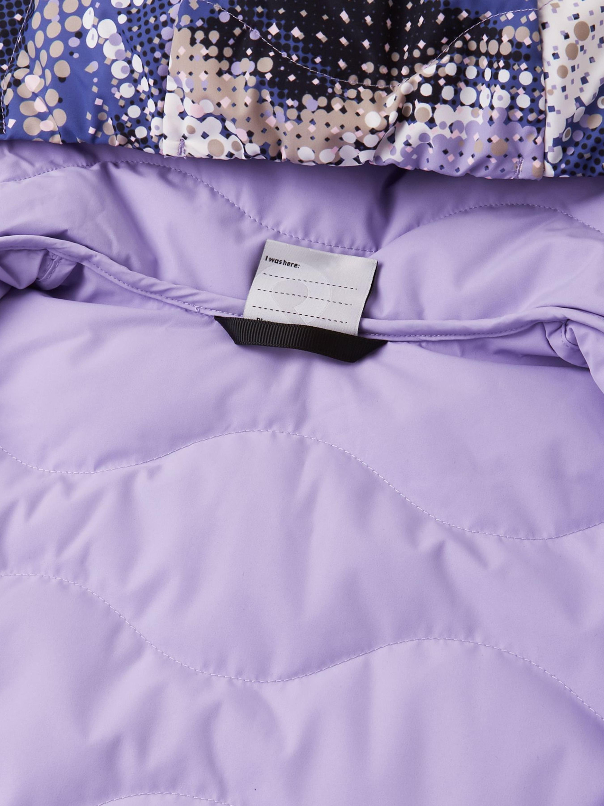Склад: Reimatec ultra light BS GRS: 100% перероблений поліестер, поліуретанове ламінування Температурний режим: +5°C ... -10°C Водонепроникність основного матеріалу: >10 000 Повітрепровідність основного матеріалу: >7 000 Матеріал: ReimaTec ultra light BS GRS Вітронепроникний матеріал Водовідштовхувальний і брудовідштовхувальний матеріал Утеплювач пух/пір'я Дозволено сушіння у пральній машині/сушильній шафі Не містить фторвуглецю Перероблений матеріал Вітронепроникний і дихаючий, водо- та брудовідштовхуючий матеріал|Утеплювач пух/перо (80%/20%), Fill Power 650|Безпечний знімний капюшон|Еластичні манжети|Дві кишені на блискавці|Основний матеріал та підкладка схвалені bluesign®|Водо- та брудовідштовхуюче покриття без вмісту фторвуглецю BIONIC-FINISH®ECO|Сертифіковано Control Union CU872203 відповідно до стандарту Responsible Down Standard|Містить сертифіковані перероблені волокна|Принт нанесено методом цифрового друку Догляд: Прати окремо, вивернувши навиворіт. Застебнути блискавки та липучки. Прати миючим засобом, що не містить відбілюючих речовин. Полоскати без спеціального засобу. Щоб уникнути зміни кольору, виріб необхідно вийняти з пральної машинки відразу після закінчення програми прання. Барабанне сушіння за низької температури з 3 тенісними м'ячиками. Виверніть виріб навиворіт в середині сушіння. Цей легкий пуховик, виготовлений з екологічного матеріалу, схваленого за стандартом bluesign®, є універсальним додатком для гардеробу вашої дитини. Його можна поєднувати з іншими моделями для тепла у морозні дні або носити окремо у м'яку погоду. Завдяки особливому екологічному просоченню BIONIC-FINISH®ECO цей пуховик має чудові водонепроникні та брудовідштовхуючі властивості. Утеплювач із пір'я та пуху, сертифікованих за стандартом відповідального виробництва, забезпечує не тільки захист, а й комфорт. Капюшон можна легко відстібнути в сонячні дні, а еластичні манжети надійно захищають від холоду та вологи. Завдяки двом зручним кишеням на блискавці дитина більше не втратить рукавички, гаманець чи головний убір.