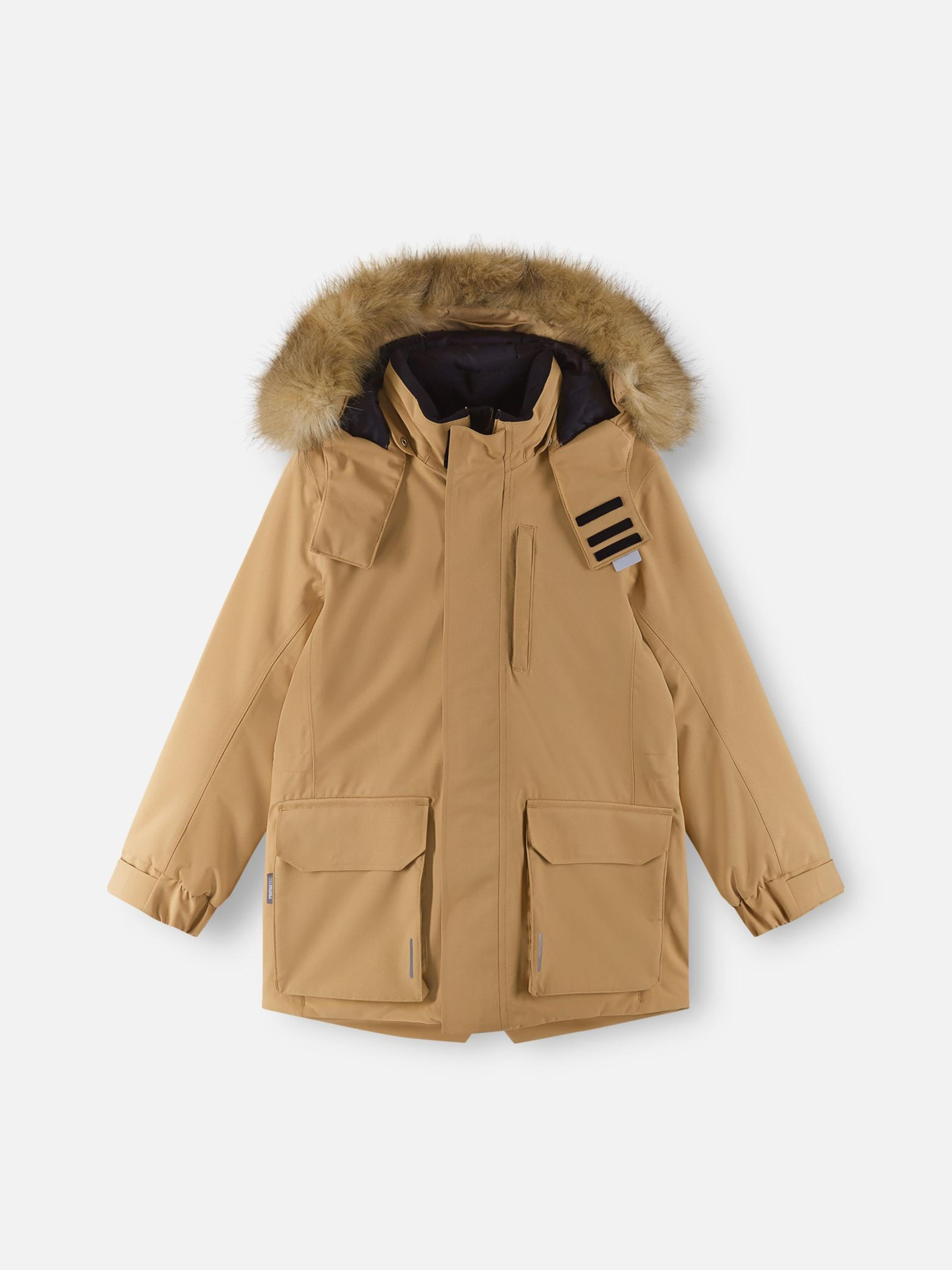 Склад: Reimatec flex BS GRS: 100% перероблений поліестер, ламінування переробленим TPU Температурний режим: 0°C ... -20°C Водонепроникність основного матеріалу: >10 000 Повітрепровідність основного матеріалу: >7 000 Зносостійкість основного матеріалу (по тесту Мартіндейла): 30000 Матеріал: ReimaTec flex BS GRS Показник проклейки швів: 3 Вітронепроникний матеріал Водовідштовхувальний і брудовідштовхувальний матеріал Дозволено сушіння у пральній машині/сушильній шафі Не містить фторвуглецю Світловідбивні деталі Перероблений матеріал Усі шви проклеєні та водонепроникні|Гладка підкладка з поліестеру|100% перероблений утеплювач Fellex®|Безпечний, знімний та регульований капюшон зі знімним штучним хутром|Манжети, що регулюються|Дві кишені з клапаном|Нагрудна кишеня на блискавці|Регульована талія|Продукт повністю сертифікований bluesign®|Основний матеріал, підкладка та утеплювач схвалені bluesign®|Водо- и грязеотталкивающее покрытие без фторуглеродов BIONIC-FINISH®ECO|Містить сертифіковані перероблені волокна|Утеплювая зі 100% переробленого матеріалу Догляд: Прати окремо, вивернувши навиворіт. Перед пранням відстебніть штучне хутро. Застебнути блискавки та липучки. Прати миючим засобом, що не містить відбілюючих речовин. Полоскати без спеціального засобу. Щоб уникнути зміни кольору, виріб необхідно вийняти з пральної машинки відразу після закінчення програми прання. Можна сушити в сушильній шафі або центрифузі (макс. 40°C). Знайомтеся з дитячою водонепроникною зимовою паркою Ajaton, створеною спеціально для вашого маленького шукача пригод. Ця куртка виготовлена з водонепроникного матеріалу з проклеєними швами та захищає від холоду, гарантуючи, що ваша дитина залишиться у сухості та комфорті. Міцний матеріал добре дихає та стійкий до води та бруду, що робить прання легким. 100% перероблений утеплювач забезпечує приємне тепло. Для додаткового комфорту парка має регульовану талію, манжети та безпечний знімний капюшон з обробкою зі штучного хутра. Крім того, ця модель має дві зручні кишені з клапанами та нагрудну кишеню на блискавці для маленьких скарбів. Деталі, що відбивають світло, допоможуть зробити дітей більш помітними в темряві, а також гарною ідеєю буде повісити додатковий світловідбивач на петлю, яка захована під правим клапаном передньої кишені!